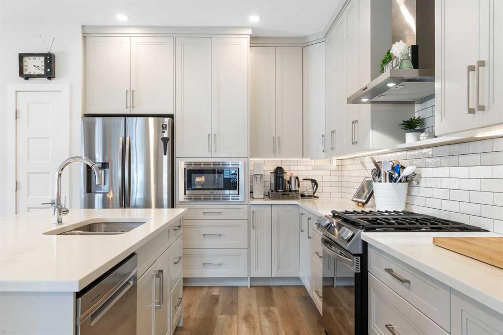 ** Open House: Saturday, Feb. 28th | 3:45 to 5:30 pm ** Welcome to 6 Emberside Hollow, a bright corner-lot bungalow located in the heart of Cochrane’s sought after Fireside community. Offering just over 2,030 square feet of well-designed living space, this home delivers modern finishes paired with everyday functionality. The main floor is airy and welcoming with 9ft ceilings, wide plank luxury vinyl flooring, and oversized windows that flood the space with natural light.