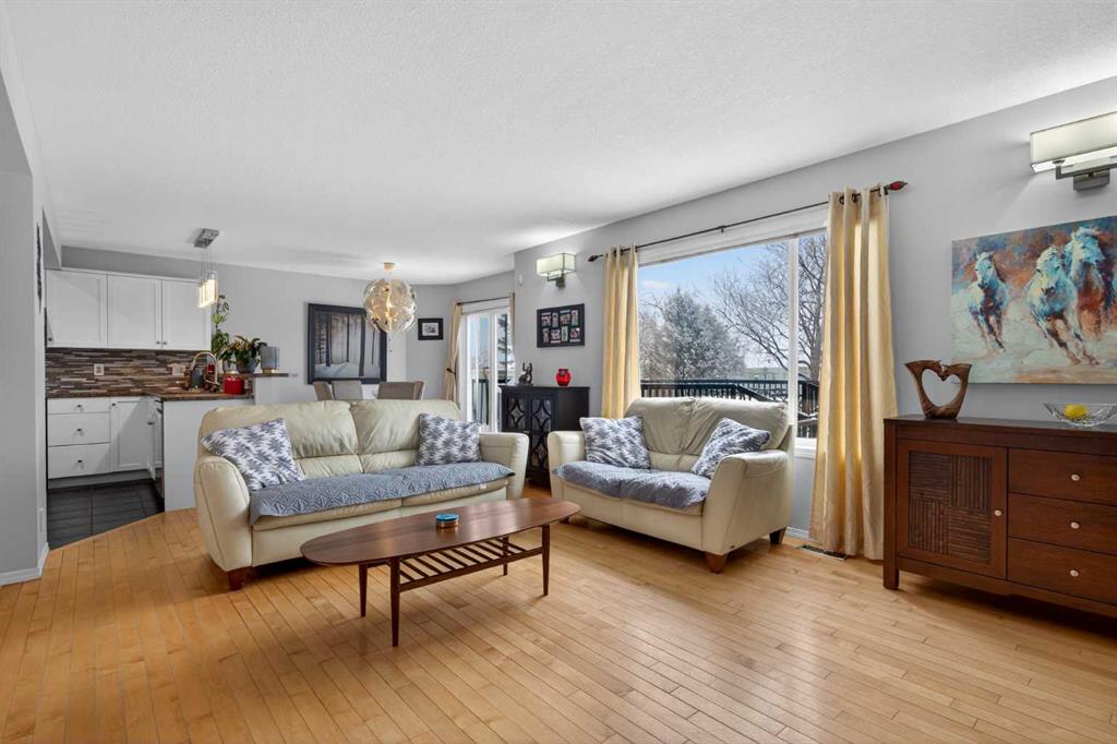 The main floor features warm hardwood flooring, a bright open-concept living and dining area and a functional kitchen with ample cabinetry and prep space. A mudroom, main floor laundry, powder room, and oversized double attached garage.