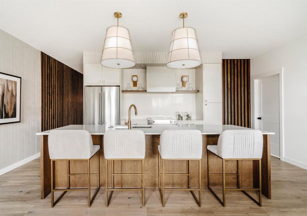 Set within the emerging heart of Three Sisters Mountain Village, this four-bedroom townhome at Altitude at Three Sisters by award winning Logel Homes offers a refined take on contemporary mountain living—where thoughtful design meets everyday functionality. Spanning three levels, the home is designed to accommodate both full-time living and lock-and-leave flexibility. The entry level features a private bedroom with in-floor heating—ideal for guests or a quiet workspace—while the main level opens into an inviting living and entertaining space. A gas fireplace anchors the room, complemented by a wet bar, beverage fridge, and seamless flow into a beautifully appointed kitchen. Here, upgraded quartz surfaces, a full-height backsplash, 41” cabinetry with risers, and a suite of premium appliances—including a Fisher & Paykel paneled fridge and gas range—create a space that is both elevated and practical. Upstairs, the vaulted primary retreat is a standout—framed by oversized windows and finished with a fully tiled walk-in shower, upgraded cabinetry, and California Closets. Additional bedrooms offer flexibility for family, guests, or work-from-home needs, all enhanced by upgraded flooring, lighting, and carefully considered storage throughout. Every detail has been curated—from under-cabinet lighting and pendant fixtures to air conditioning and upgraded tilework—delivering a home that feels complete from day one. With anticipated completion in summer 2026, this is an opportunity to secure a brand-new residence in one of Canmore’s most forward-looking communities. Monthly condominium fees of $335 include exterior maintenance, snow removal, landscaping, building insurance, reserve fund contributions, and professional management, along with access to a community spa and hot tub—ensuring a seamless, low-maintenance lifestyle. Positioned steps from the future Gateway commercial hub—with planned shops, dining, and grocery—this location continues to evolve as one of the Bow Valley’s most compelling places to live and invest. Built by Logel Homes, whose decades-long track record speaks to quality and reliability, this home reflects a commitment to enduring value and modern mountain design—an approach consistent with thoughtfully crafted new construction offerings in the region.