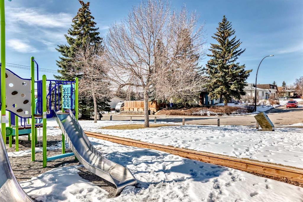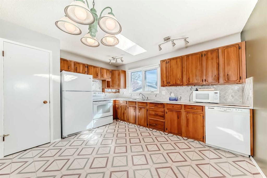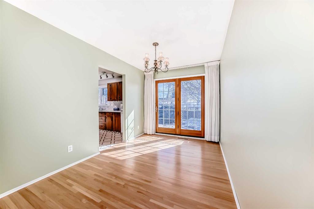 Offered for the first time by the original owners, this charming 1,134 sq. ft. bi-level home features 5 bedrooms and 2 bathrooms, ideally situated on a quiet street just steps from a playground in one of Calgary’s most established communities. The main level showcases beautiful oak hardwood floors and a bright, inviting layout. The dining room is highlighted by French patio doors that open onto a large deck, overlooking a private, beautifully treed backyard—perfect for relaxing or entertaining. The kitchen features maple cabinetry and a skylight, filling the space with natural light.