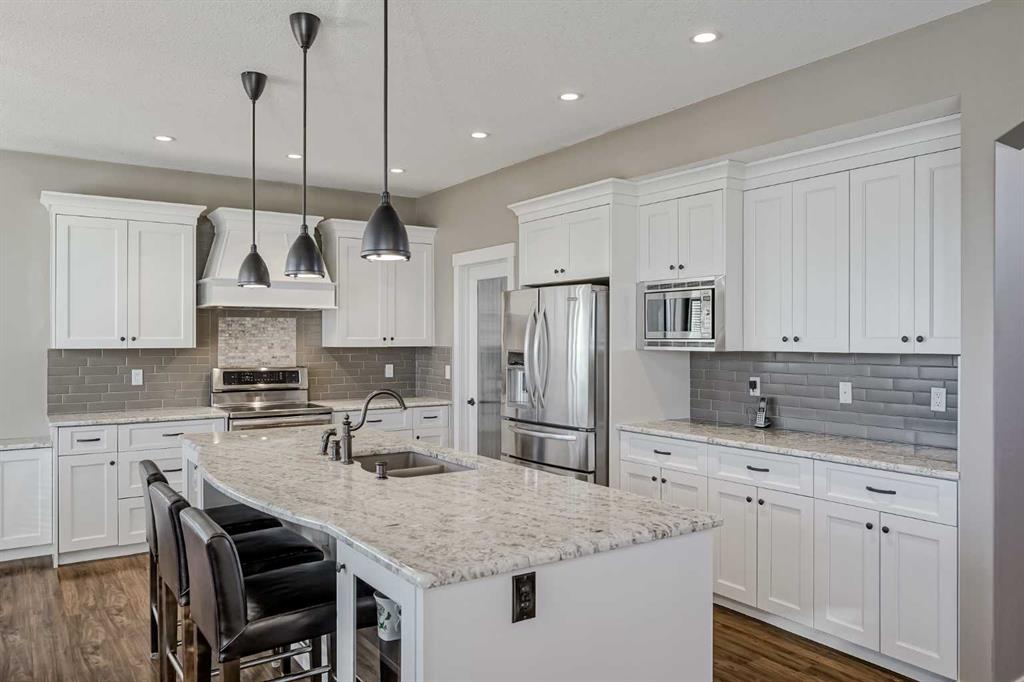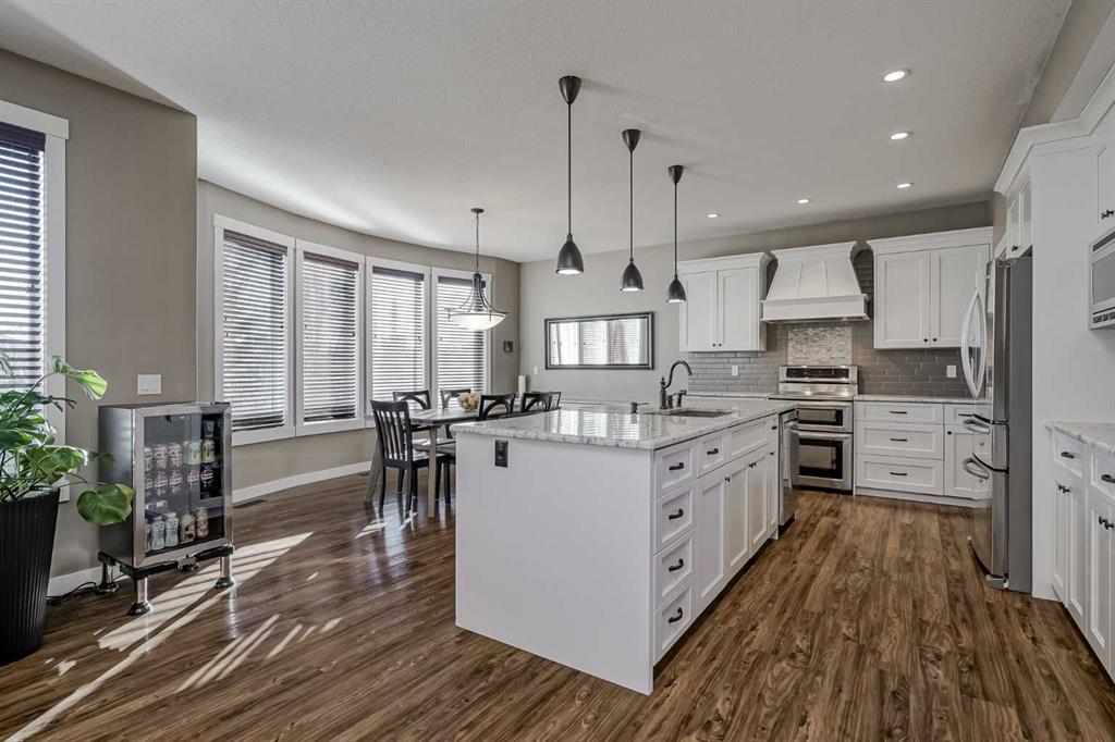 OPEN HOUSE SAT Nov. 29th noon-2pm. Welcome to where quality craftsmanship and thoughtful design converge. Luxury living awaits in this immaculate DreamWest Custom Built residence, which exudes pride of ownership and feels like new, offering an elegant and comfortable lifestyle in a highly desirable Okotoks neighborhood. The fully finished, heated triple-car garage (21’5″ x 29′) is a true enthusiast’s dream, featuring new garage doors, premium floor covering, ample storage racks, and wall organizers—the perfect space for hobbies and vehicles. New roof in 2023 and new eavestroughs 2025. Just inside the home a large laundry and mudroom with custom lockers, offering both style and function. The home is equipped with a state-of-the-art three-zone furnace and central air conditioning system, allowing for precise climate control on each floor. The main level offers a perfect blend of style and functionality, ideal for comfortable living and entertaining. The open-concept floor plan features a cozy gas fireplace in the living room, perfect for gathering with family and friends. A versatile office/flex room is conveniently located near the entry, and the front entrance boasts an open-to-above design, creating a grand and inviting first impression. The kitchen is a chef’s dream, featuring elegantly refaced cabinetry and an abundance of additional storage in the dining area. Enjoy all stainless-steel appliances featuring French door refrigerator with water and ice dispenser, double convection oven and a dedicated hood vent with custom millwork. Adjacent discover a convenient walkthrough pantry provides extra space for all your culinary needs. Step outside onto the back deck to enjoy amazing views backing onto serene pathways, complete with a natural gas line ready for your BBQ. Upstairs, Your private primary retreat with a stunning five-piece ensuite, including a standalone soaker tub, double vanity, separate shower, and a massive walk-in closet is a perfect escape from the day. A second full bathroom accommodates two additional oversized bedrooms on the upper level, perfect for a growing family. The sunken bonus room provides an additional spacious gathering area to relax and unwind where you can enjoy captivating mountain views. The lower walkout level has an additional bedroom, full bathroom, and entertaining area perfect for a workout space or theatre room. Step outside and your low-maintenance backyard is a private sanctuary, secluded by mature trees for ultimate summer privacy. The fully landscaped yard has a concrete pad and stone pathway and sitting area surrounding a built-in fire pit, perfect for summer nights or winter fun. A walking path directly behind the property ensures extra space and separation from other homes, while the friendly neighborhood and fantastic neighbors complete this exceptional living experience. Sheep River Heights is an exclusive neighborhood in Okotoks with easy access to schools, parks, and a many shopping and lifestyle amenities.