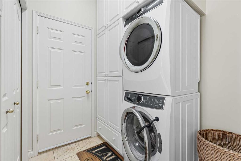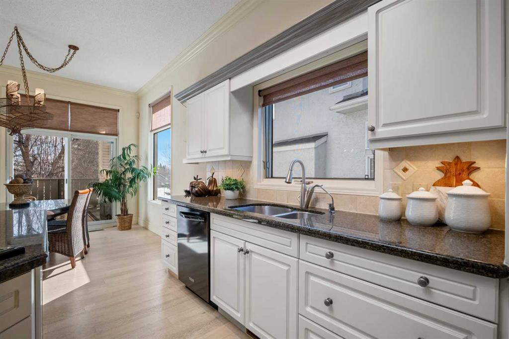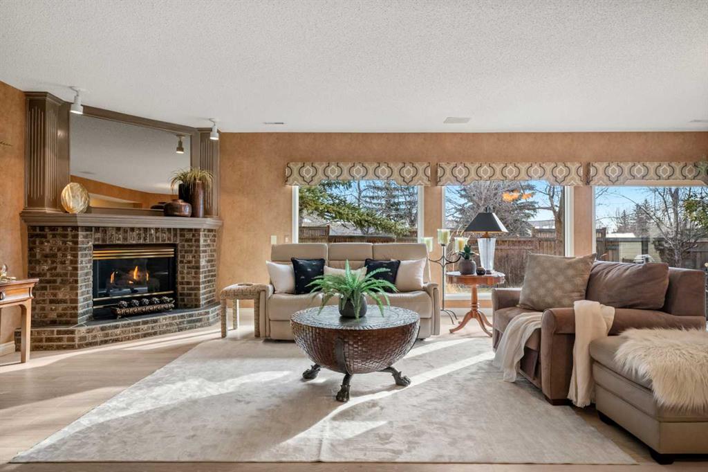 those ready to embrace a more relaxed lifestyle without sacrificing space or style. From the moment you arrive, you’ll be greeted by stunning landscaping with a grand aggregate driveway and lush gardens. Step inside and discover elegant crown moldings, graceful archways, and soaring ceilings that set a tone of timeless luxury. Modern lighting, expansive windows, and brand-new flooring throughout showcase the home’s open and inviting character. The formal dining room provides the perfect setting for special occasions, while the open-concept kitchen features classic white cabinetry, granite countertops, and a generous island designed for both cooking and conversation. The adjoining living room, with its cozy fireplace and freshly painted walls, is a comfortable yet refined space for everyday living and entertaining. The primary bedroom is a true retreat. A see-through fireplace separates a serene reading nook from the spa-inspired ensuite, where a jetted tub offers indulgent relaxation. The massive dressing room is every diva’s dream, complete with custom shelving, a mounted TV, and a valet door with direct access to the laundry room. The fully developed walkout basement is equally impressive. Nearly floor-to-ceiling windows flood the expansive recreation room with natural light, creating a