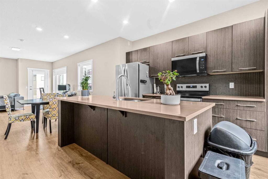 Welcome to this SPACIOUS CORNER UNIT townhome, ONE OF THE LARGER UNITS IN THE COMPLEX, located in the highly desirable community of Sherwood NW Calgary. This 3 bedroom, 2.5 bathroom home features a DOUBLE ATTACHED GARAGE, a den, and a bright OPEN CONCEPT FLOOR PLAN, making it an excellent opportunity for homebuyers or investors. As you step inside, you’re welcomed by a functional mudroom with direct access to the garage and a SUN FILLED DEN surrounded by large windows, ideal for a home office or flex space. The main living level showcases HIGH CEILINGS and OVERSIZED WINDOWS that fill the home with natural light. The OPEN CONCEPT layout is perfect for entertaining, with a formal dining area flowing into the spacious living room and modern kitchen featuring STAINLESS STEEL APPLIANCES, ample cabinetry, and generous counter space. This level is complete with a 2 piece bathroom, stacked laundry, and a LARGE PRIVATE BALCONY perfect for relaxing on warm days. Upstairs, you’ll find THREE SPACIOUS BEDROOMS, including a generously sized primary suite with a WALK IN CLOSET and PRIVATE ENSUITE. Two additional bedrooms with large closets, a 4 piece bathroom, and extra storage complete the upper level. Conveniently located close to SHOPPING CENTRES, T&T SUPERMARKET, PUBLIC TRANSIT, PARKS, and all major amenities, with QUICK ACCESS TO STONEY TRAIL. A rare opportunity to own a premium corner unit townhome in NW Calgary.