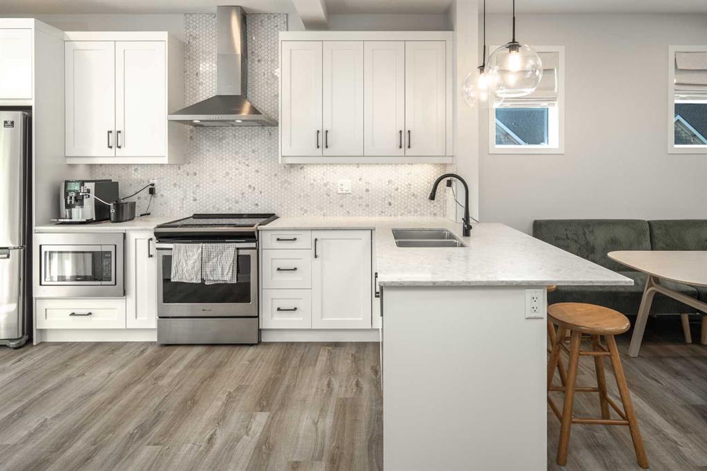 Welcome to this gorgeous END UNIT townhouse in the vibrant community of Nolan Hill! Featuring 3 bedrooms and an attached tandem double garage, this home is nestled in the heart of one of Calgary’s most sought-after neighborhoods. The main level boasts an inviting, open-concept layout filled with abundant natural light. The spacious living area is enhanced by large windows that create a bright and cheerful atmosphere. The modern kitchen is a dream for culinary enthusiasts, complete with quartz countertops, stainless steel appliances, and a convenient breakfast bar. Just off the kitchen, enjoy your private balcony—perfect for morning coffee or peaceful evening conversations. Upstairs, the upper level is dedicated to comfort and relaxation. The spacious primary bedroom features a 3-piece ensuite, while two additional bedrooms offer flexibility for a growing family, a home office, or guest space. Additional highlights include central air conditioning, upper-level in-suite laundry, and a natural gas hookup for your BBQ. Don’t miss this one—book your private showing today!