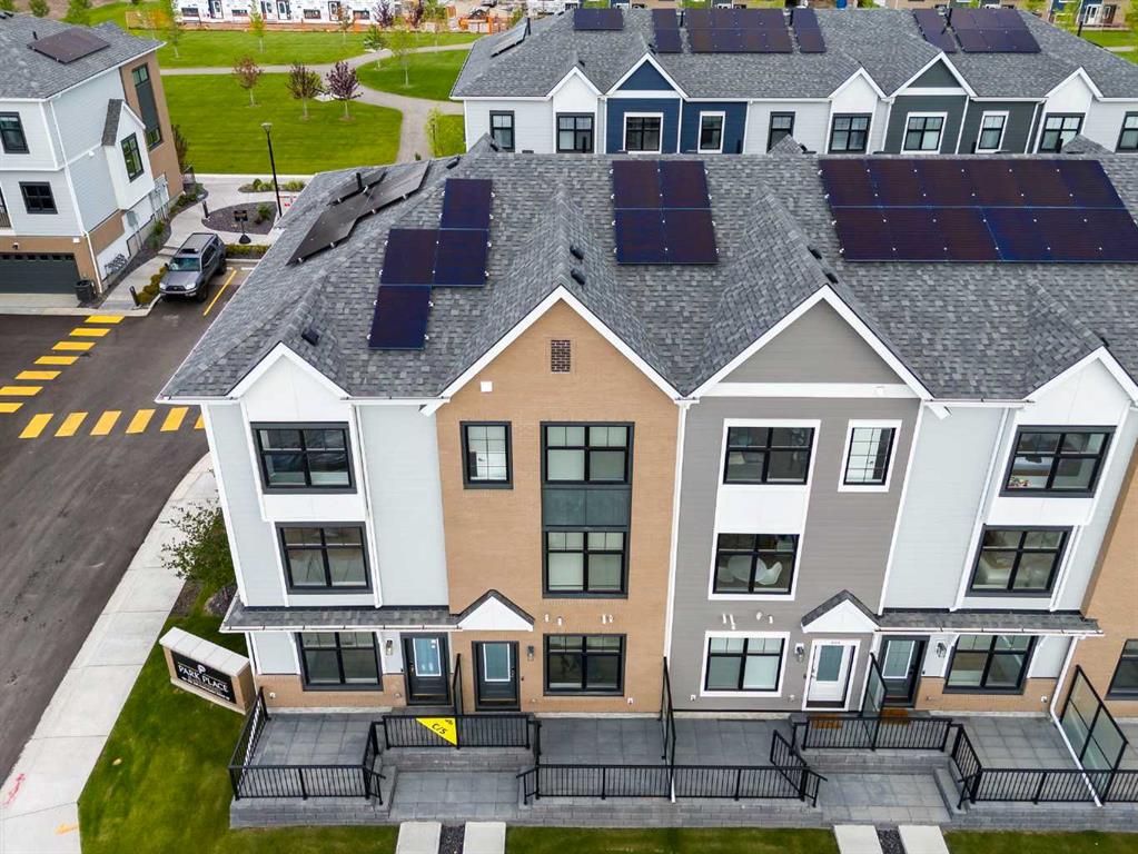 Welcome to this like-new 2-bedroom, 2.5-bath row townhome offering over 1,300 sq. ft. of thoughtfully designed living space in one of Calgary’s most sought-after lake communities. Built in 2023, this bright north/south-facing home blends modern style with impressive energy efficiency—complete with solar panels, triple-pane windows, and a tankless hot water heater. As an added bonus, the seller is offering 6 months of free condo fees—a valuable incentive for buyers.