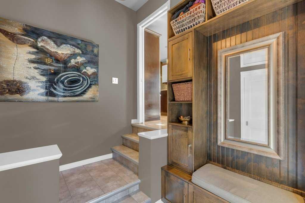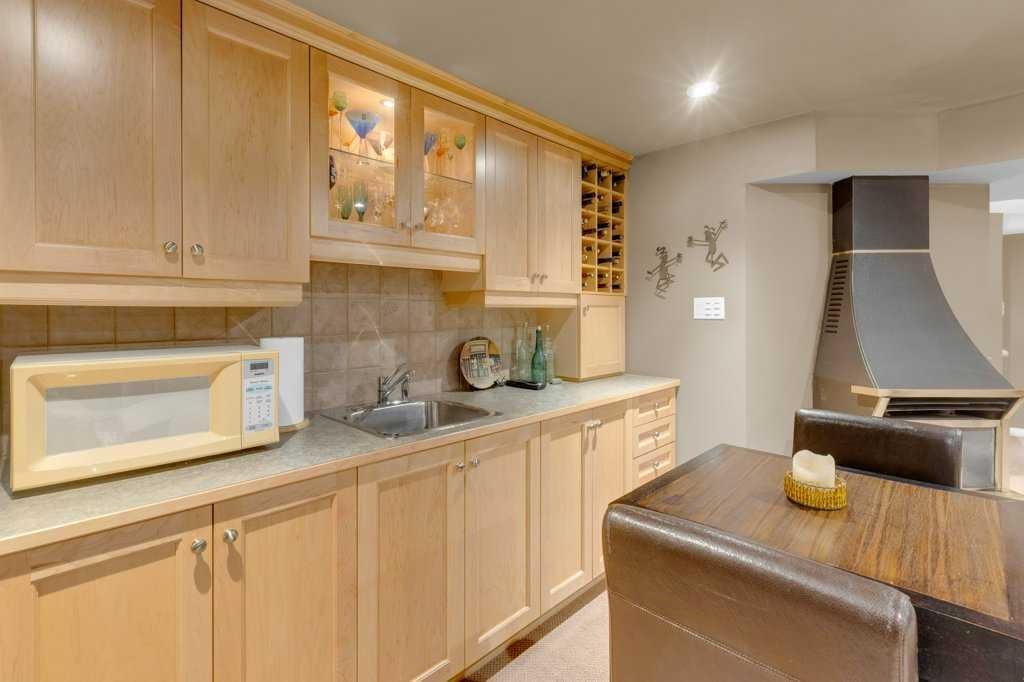 Outside, the professionally landscaped west facing backyard is surrounded by mature trees and supported by an irrigation system, creating a private and welcoming outdoor retreat. Enjoy summer evenings on the two-tier composite deck or gather with friends on the stamped concrete patio complete with a Calcana outdoor patio heater, gas BBQ hookup, and outdoor lighting—a space designed for entertaining and relaxing throughout the seasons.