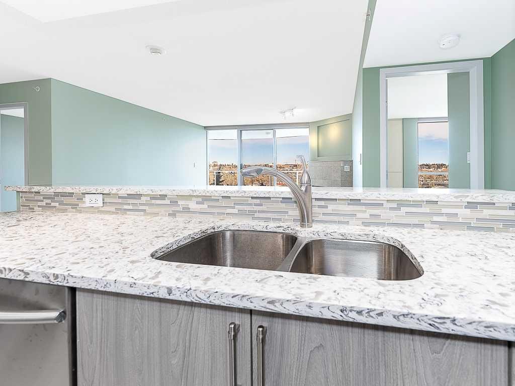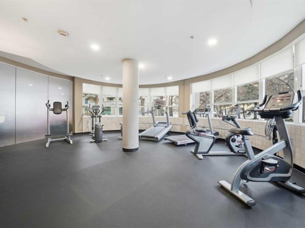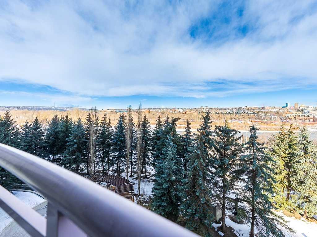 Welcome to this exceptional, updated TWO-BEDROOM, TWO-BATH plus DEN residence at The Marquis, where sweeping panoramic Bow River vistas greet you from both the spacious living area and the primary bedroom. The large patio is the perfect place to relax or entertain while taking in the breathtaking scenery. Spanning nearly 1,100 square feet, this suite combines space, style, and convenience with TWO side-by-side parking stalls and a storage locker. The open-concept living space features a corner gas fireplace, a dining area ideal for entertaining, and a modern kitchen with quartz countertops, recessed lighting, a raised breakfast bar, and stainless steel appliances. The bright den, with its glass wall, offers a perfect workspace or reading retreat. The primary bedroom boasts a renovated ensuite with a walk-in shower, double sinks, and a separate makeup area with built-in mirrored lighting. The second bedroom also enjoys river views, complemented by a four-piece main bathroom and in-suite laundry. Remote-controlled window coverings add an extra touch of convenience. Residents enjoy the full Marquis lifestyle, including secured visitor parking, bike storage, updated common areas, exercise facilities, and monitored security. Located just steps from the Bow River, the downtown core, and Kensington’s shops, cafés, and amenities, with the LRT station only a block away, this home offers an unbeatable combination of luxury, convenience, and natural beauty.