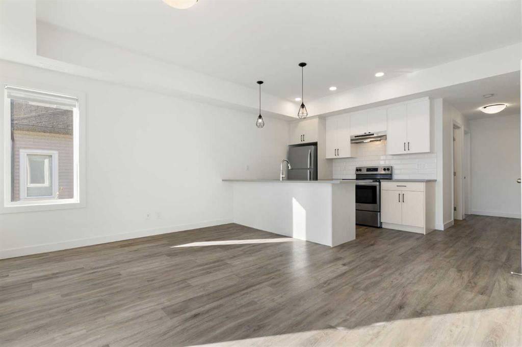 Welcome to The Jasper, a stunning top-floor stacked townhouse that offers the perfect blend of style and function. This unit at 602 24 Rivercrest Drive features over 1250 sq ft of thoughtfully designed living space, with most of the layout conveniently situated on a single level. Step inside and up to the main floor and you will discover an open-concept living area with a full kitchen that’s a home chef’s dream. The kitchen boasts elegant quartz countertops, soft-close drawers, and stylish two-tone cabinets highlighted by pendant lighting. An adjacent, flexible space is perfect for a spacious dining area or a home office. This home has two large bedrooms and two full bathrooms. The primary bedroom is a true retreat, featuring a massive walk-in closet and a luxurious 4-piece ensuite. A spacious laundry room adds to the convenience.This unique floorplan is designed to feel like a modern apartment but with the added benefits of a main floor storage/flex area and direct access to an oversized, extended single-car garage.This home is perfectly situated to offer the best of both convenience and community. It’s located right next to a future school site, with transit options directly at your doorstep for effortless commuting. Enjoy a short two-minute walk to Bow Valley High School, and a quick five-minute trip to the Spray Lakes Sports Centre for all your recreational needs. For bigger city amenities, you’re only 20 minutes from South Calgary, and the mountains are within easy reach, with Canmore just a 40-minute drive away.
