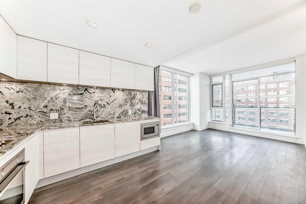 Situated in the heart of the city, in one of the most sought-after buildings, “Park Point”. The ultra-sophisticated lobby and greetings from concierge lets you know this is a very special building. Located on the 6th floor is this sleek unit with 9′ ceilings, newly painted walls and wide plank floors throughout. The kitchen is accented with high end cabinetry, granite backsplash and counters, built-in high end AEG / Panasonicappliances with undermounted lighting to set the mood. The main living room faces North with floor to ceiling windows to allow ample natural light. Adjacent the living room is access your private balcony for those summer evenings and fresh air. The large bedroom has two generous sized closets. Completing this gorgeous unit is the 4-piece bath with under-mount lighting, quartz countertop, dual flush toilet, glass-enclosed shower and full tile through out. A storage room with in-suite laundry completes this unit beautfully. This one of kind building has amenities like no other including a fully equipped fitness center, Yoga studio, sauna and steam room, resident’s lounge, party room, outdoor courtyard, BBQ station, ample visitor parking, guest suites, car/pet wash bay, secured parking, 24-hour security and secured storage makes it easy to impress when hosting guests in style. Perfectly located in the heart of the Beltline, Park Point provides the highest walking score of all communities. Steps away from top-rated restaurants, cafés, shopping, entertainment, and nightlife of 17th Avenue, 10th, Stephen Ave and Mission; while the Saddledome and Stampede Park offer year-round events and sports. For those who work downtown, the +15 network is one block away, ensuring an elevated and weather protected walk. This meticulously crafted residence delivers the ultimate urban lifestyle with premium finishes and top-tier amenities.