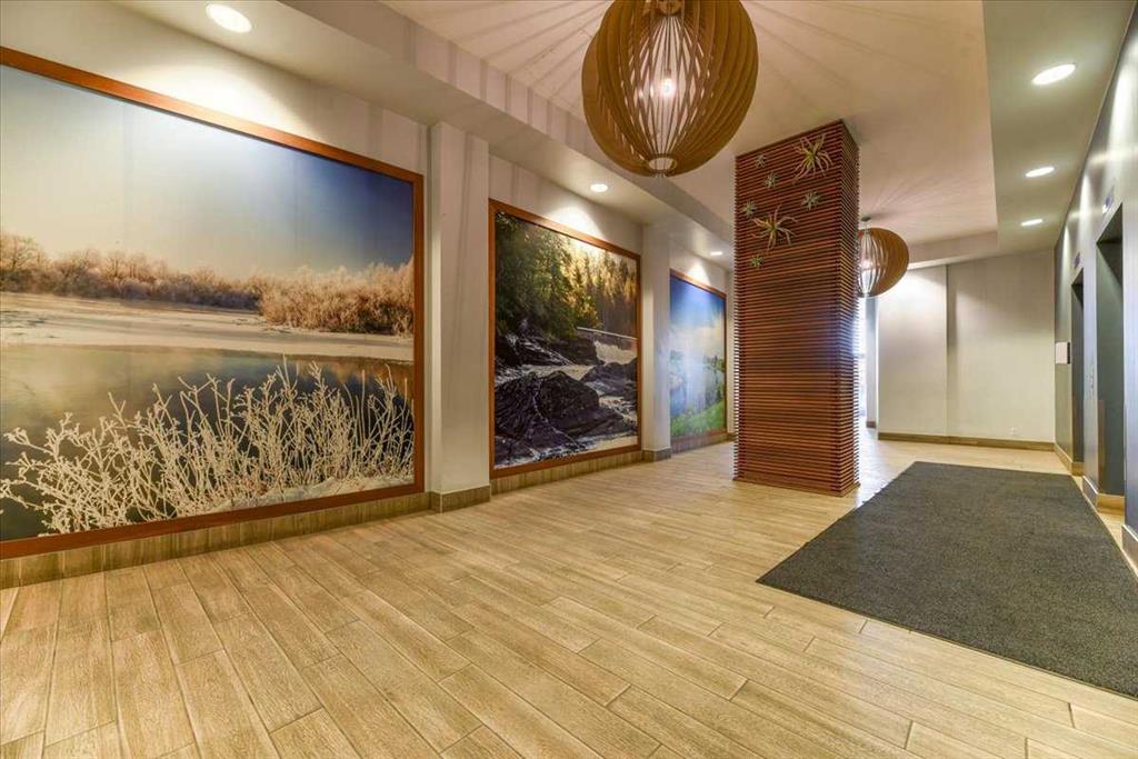 Welcome to Riverfront Pointe, where this splendid 2-Bedroom, 2-Bathroom, 1 heated underground parking stall Condo awaits. Enjoy Panoramic views of the river and lush river valley from every window, including the Balcony. The open-concept kitchen, dining and living area is ideal for entertaining, enhanced by 9-foot ceilings and abundance of natural light. Convenience is key with in-suite laundry, and fully equipped fitness room. Enjoy the modern kitchen, granite countertop and SS appliances. Stroll to trendy restaurants, live music venues, the world-class Library, and scenic Bow River Pathways. Hurry and schedule your showing, and make this your Downtown Oasis.