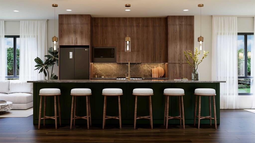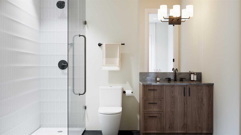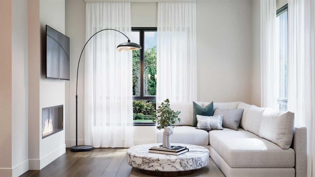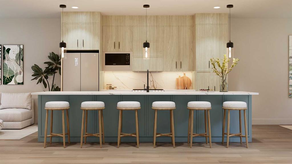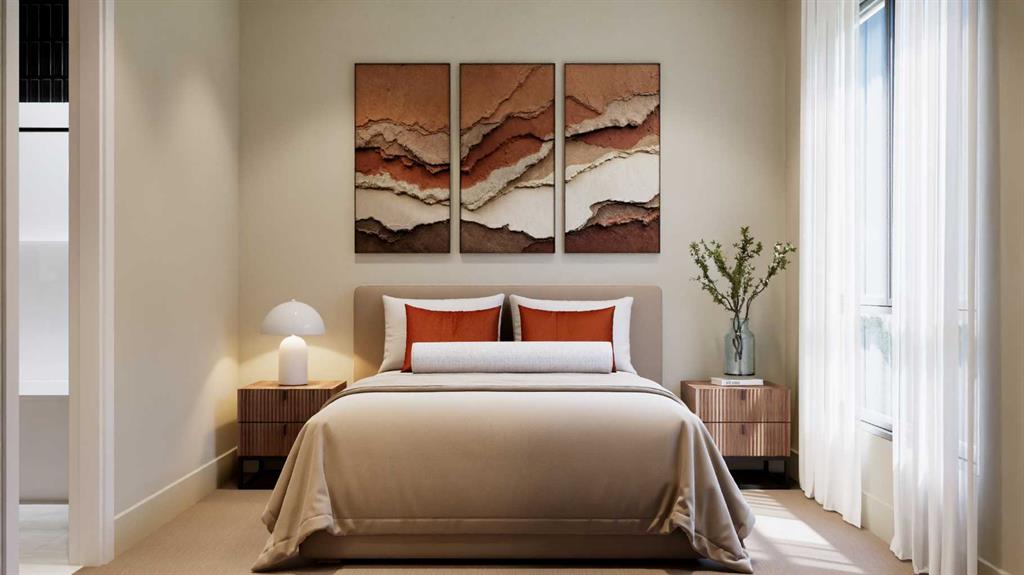 Luxurious Townhome in Currie Barracks – A Legacy of Distinction ONE OF 30 LUXURY TOWN HOMES IN CURRIE BARRACKS. Welcome to an exquisite townhome nestled within the prestigious Nichola community in Currie Barracks. This master-planned intercity neighborhood is just 7 minutes from downtown, providing effortless access to an array of exceptional dining, shopping, and cultural attractions. Spanning 1195.26 sq. ft., this thoughtfully designed residence features two bedrooms, 2.5 baths, and a nice open concept floor plan, ensuring ample space for both relaxation and productivity. The home boasts 9-foot ceilings on every level, creating a sense of grandeur and openness that invites natural light to flow seamlessly throughout. The heart of the home is a gourmet kitchen, complete with an OVERSIZED GRAND ISLAND (13’0) complete with STYLISH PREMIUM QUARTZ BACKSPLASH & COUNTER TOPS. Ideal for culinary enthusiasts and entertaining guests. Luxurious finishes abound, including PREMIUM MILLWORK, knockdown ceilings, and a sophisticated STUCCO EXTERIOR accented by elegant brick veneer. The bathrooms elevate the home’s luxury with MIRRORS THAT STRETCH TO THE CEILING, enhancing the sense of space and sophistication. Thoughtfully equipped with rough-ins for AIR CONDITIONING & SOLAR PANEL, and an ATTACHED TWO CAR GARAGE, the home also includes upgrade options for convenient EV CHARGING rough-ins for modern convenience. Step outside to enjoy serene outdoor living on the DURADEK-FINSHED BALCONIES or gather around the IMPRESSIVE 42” LANDSCAPE FIREPLACE for cozy evenings under the stars. The residence is outfitted with luxurious finishes such as 8-FOOT DOORS, 4-INCH. BASEBOARD, 3” CASINGS, ensuring a refined aesthetic throughout. Buyers can also choose from TWO ELEGANT PALLETTES; THE CALIGA OR LAMBENT allowing for personalization to match your style. Living in Currie Barracks means embracing a community that honors the legacy of Canadian heros such as Captain Nicola Kathleen Sarah Goddard, after whom the NICHOLA TOWNHOMES project is named. This historic neighborhood beautifully blends tradition with modernity, offering immediate access to a nearby dog park, top-tier charter and private schools, and Mount Royal University—making it ideal for families and professionals alike. Indulge in a rich tapestry of cultural experiences, from art galleries to fine dining, all just moments away. This luxurious townhome is more than just a residence; it embodies a lifestyle of elegance, community, and honor. Don’t miss the opportunity to make this remarkable home yours. Schedule a private viewing today and immerse yourself in the luxury and legacy that awaits at Nichola