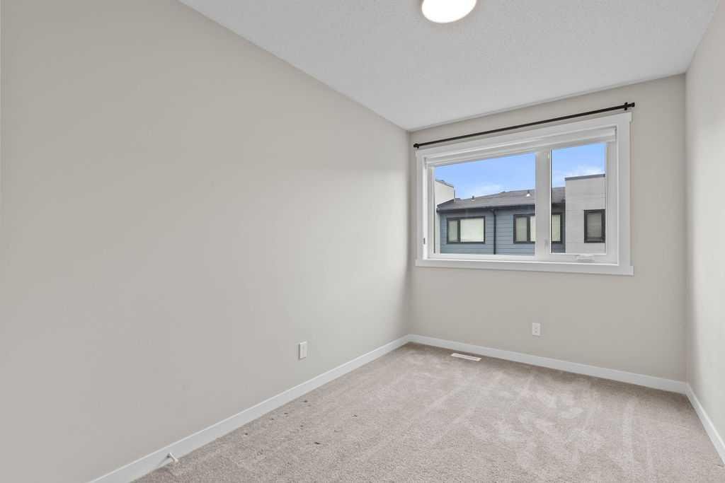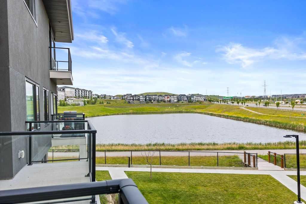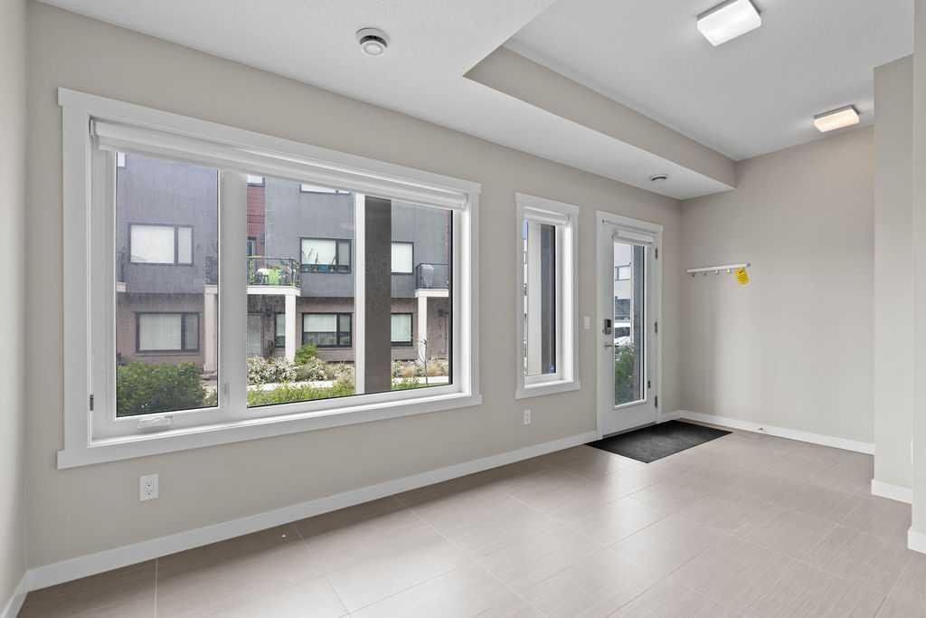 Welcome to this exceptional, fully upgraded townhome located in the highly desirable Diseno Development of Sherwood in NW Calgary. Offering 1,565 sq. ft. of thoughtfully planned living space, this sun-filled home is perfectly positioned just steps from the community park and pond, providing tranquil views and a peaceful setting, while still being within walking distance to the everyday conveniences of Sage Hill Crossing. From the moment you enter, you’ll appreciate the modern design and attention to detail throughout. The entry level features a versatile flex or bonus room, ideal for a home office, fitness area, media room, or hobby space—perfect for today’s flexible lifestyle. Access to the side-by-side double attached garage adds both functionality and everyday convenience. The main living level is bright, open, and designed for both entertaining and comfortable daily living. Large windows allow natural light to pour in while showcasing picturesque park views. The contemporary rear kitchen is a standout, complete with quartz countertops, upgraded stainless steel appliances, ample cabinetry, and a functional layout that opens seamlessly to the dining area. The spacious living room sits at the heart of the home, creating an inviting space to gather with family or unwind at the end of the day. Step out onto either the front or rear private balcony to enjoy morning coffee, evening sunsets, or outdoor entertaining. Upstairs, the well-appointed upper level offers three generously sized bedrooms and two full bathrooms. The bright and airy primary suite serves as a private retreat, featuring a walk-in closet and a luxurious ensuite with a walk-in shower and modern finishes. The additional bedrooms are spacious and versatile, ideal for family members, guests, or additional workspace. This home was built with a full builder upgrade package and includes laminate flooring on the main level, window coverings throughout, and enhanced exterior finishes with Hardie Board siding, stucco accents, and brick detailing, giving the property timeless curb appeal. Pride of ownership is evident throughout this beautifully maintained residence. Ideally located close to public transportation, major roadways, schools, parks, and shopping at Beacon Hill and Sage Hill Plaza, this townhome offers the perfect balance of comfort, style, and convenience. An excellent opportunity to own a modern, move-in-ready home in one of NW Calgary’s most sought-after communities.
