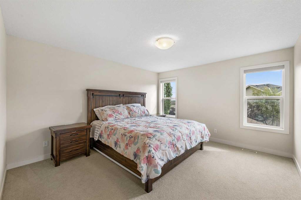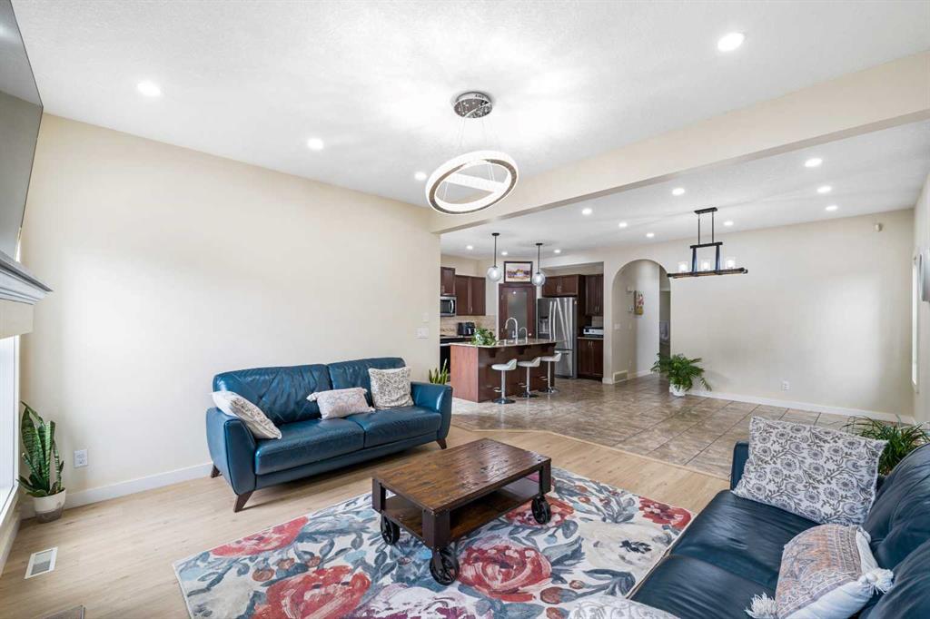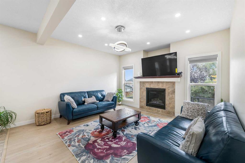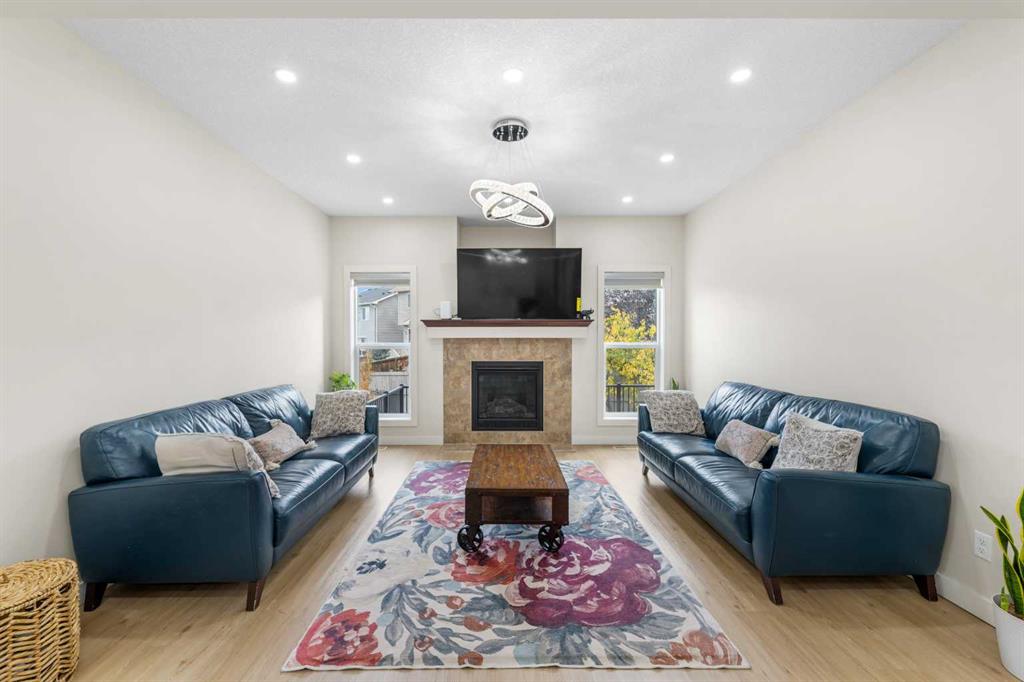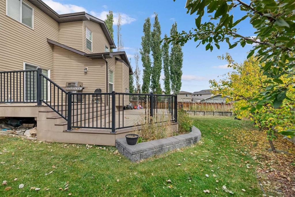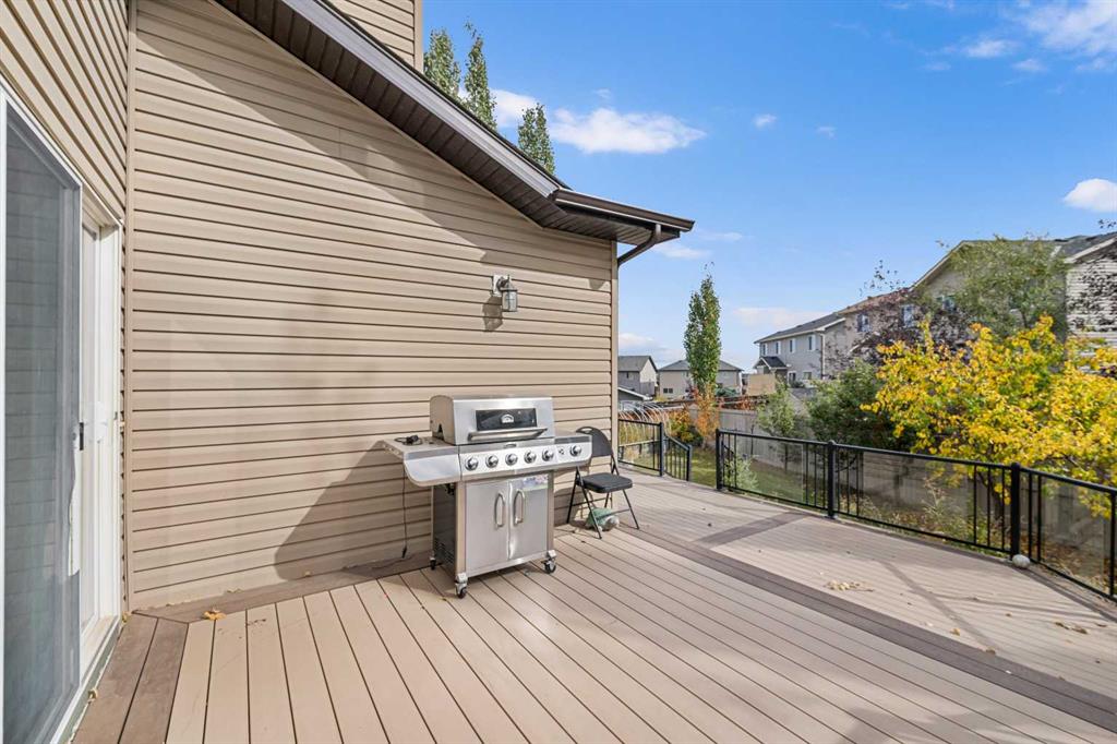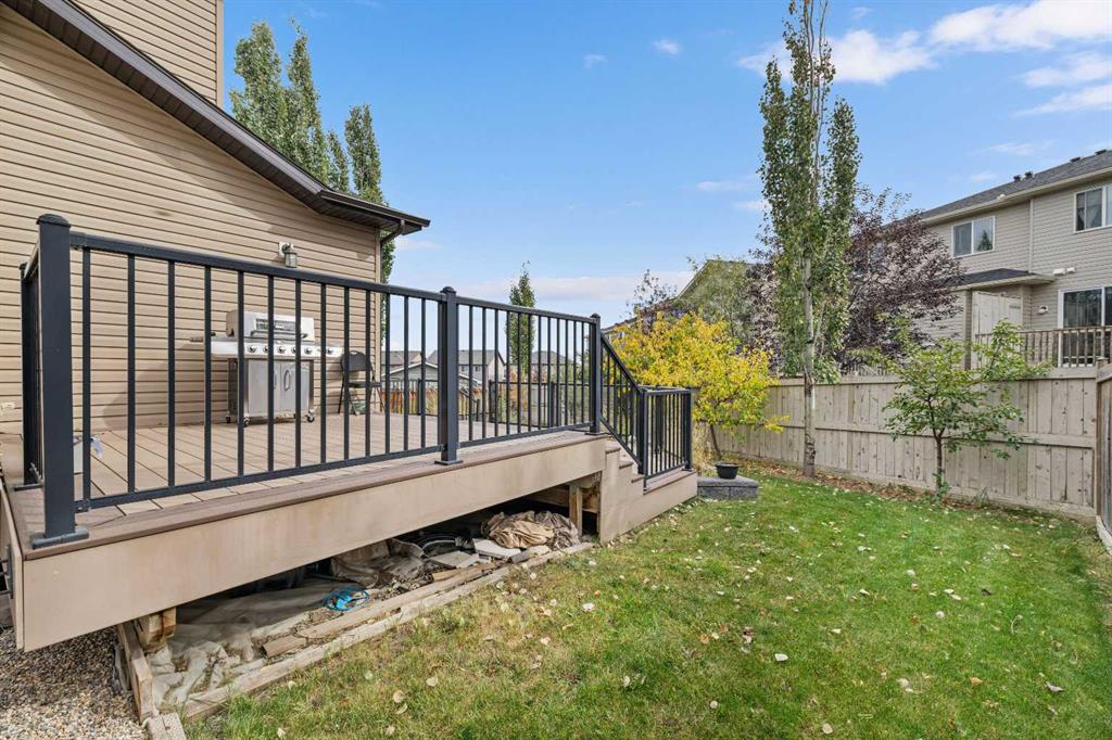 Stunning Family Home | 2,069 SqFt | Central AC | 4 Bedrooms | 3.5 Bathrooms | Open Floor Plan | High Ceilings | Recessed Lighting | Modern LED Light Fixtures | Granite Countertops | Stainless Steel Appliances | Large Kitchen Island with Barstool Seating | Walkthrough Pantry from Kitchen to Mudroom | Gas Fireplace | Large Windows | Ample Natural Light | Upper Level Family Room & Den | Spacious Bedrooms | Primary Retreat with Spa-Inspired Ensuite Bath | Walk-in Closets in All Bedrooms | Finished Basement | Rec/Entertainment Room | Great Storage | Incredible Backyard | Massive Two-Tiered Composite Deck | Fully Fenced Backyard | Expansive Lawn | Double Front Attached Garage | Driveway | Minutes to CBE Buffalo Rubbing Stone School | Close to All Amenities | Quick Access to Stoney Trail NW. Welcome to your beautiful 2-storey family home boasting 2,910 SqFt of developed living space throughout the main, upper & basement levels. This home has a gorgeous open floor plan, high ceilings, LED lighting, large windows & central AC to keep your home cool in the warm summer months! The front door opens to a foyer with closet storage to keep the space tidy & organized. Move inside to the open floor plan kitchen, dining & living rooms where an abundance of natural light fills the space. The kitchen is outfitted with granite countertops, stainless steel appliances, great cabinet space & centre island with barstool seating. The walkthrough pantry connects the kitchen to the mud room & interior garage door making unloading groceries easy! The door off the kitchen leads to your massive two-tired deck where you’ll enjoy meals outside. The dining room has copious amounts of space for a large table to hold your whole family. The living room is centred with a gas fireplace with windows on either side that look out to the backyard. The main level is complete with a 2pc bath. Upstairs holds 3 bedrooms all with walk-in closets, a family room, a den & laundry. The primary bedroom is a personal retreat partnered with a 5pc ensuite bath. The ensuite has double vanities, a deep soaking tub, walk-in shower & private washing closet. Bedrooms 2 & 3 each with their own walk-in closet share the main 4pc bath that has a pocket door that separates the sink making it functional for more than one person at a time. The family room is a great addition to your living space! The den upstairs has an arched open doorway adding charm & character to the space. The laundry being upstairs is an added bonus as its near majority of the bedrooms. Downstairs, the finished basement has a rec/entertainment space that can be used as your family sees fit! The bedroom on this level has a walk-in closet & a cheater door to the 4pc bath with a tub/shower combo. The basement has great storage for your seasonal items. Outside is the fully fenced backyard accompanied by the massive deck & lawn. Upgrades include a new hot water tank, furnace, and newly replaced roof and siding. Hurry & book a showing at this incredible home today!