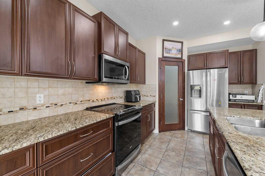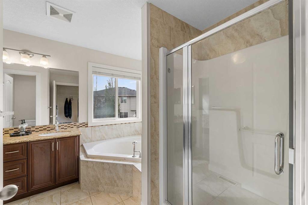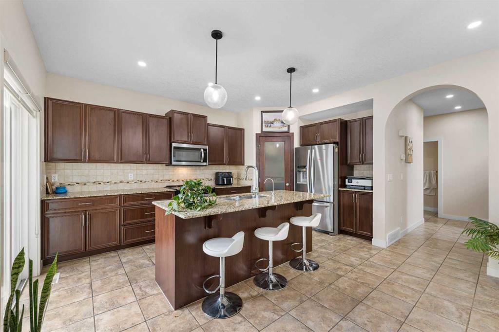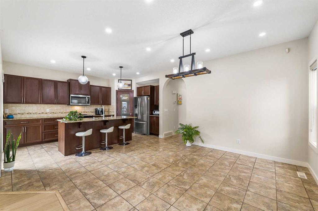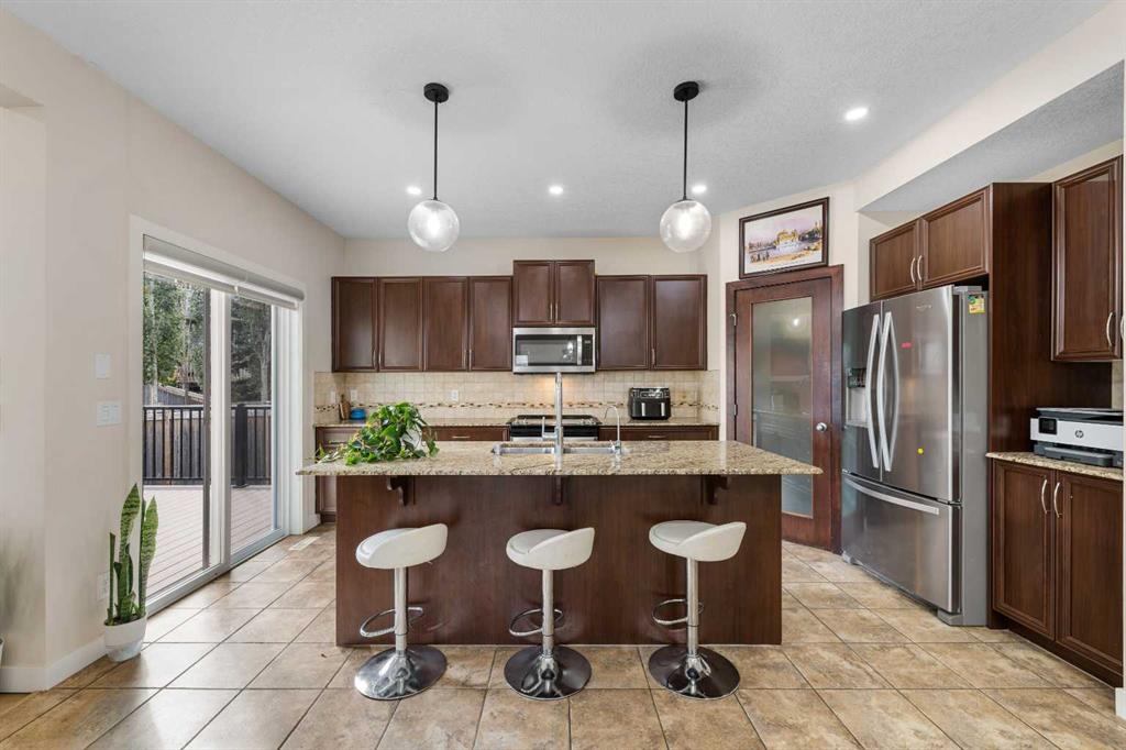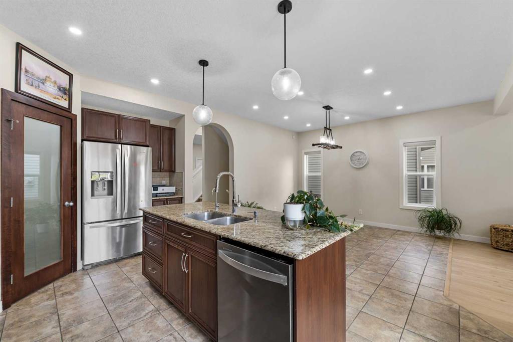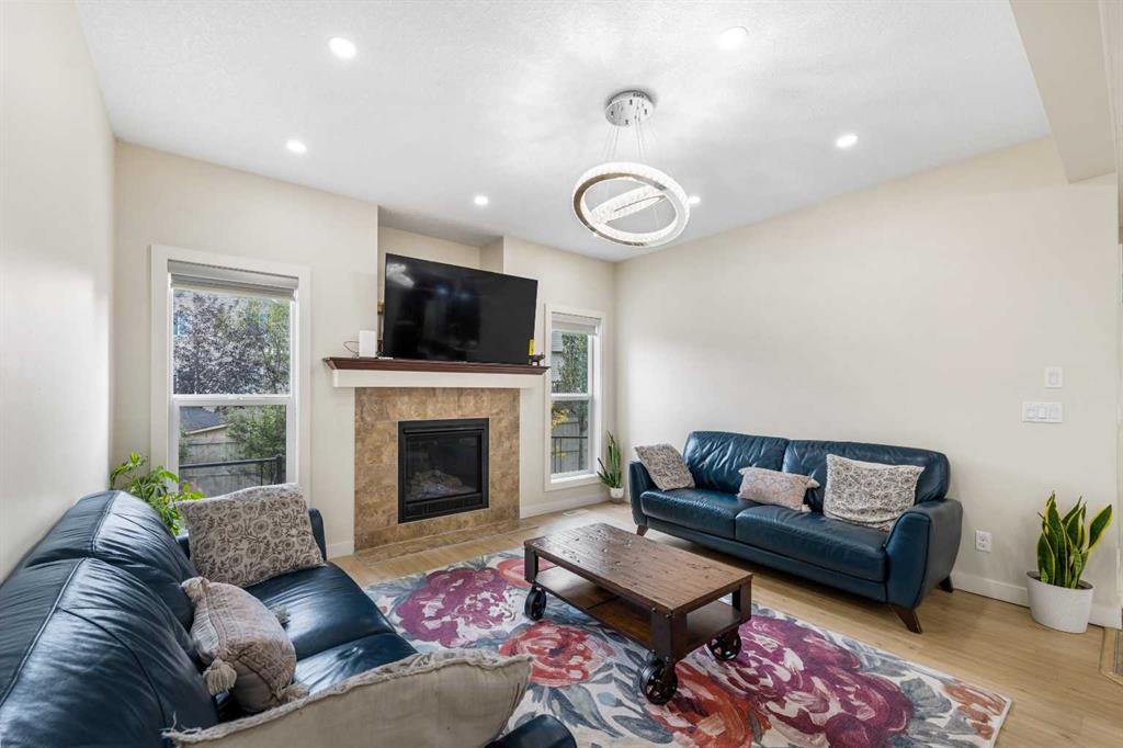 Stunning Family Home | 2,069 SqFt | Central AC | 4 Bedrooms | 3.5 Bathrooms | Open Floor Plan | High Ceilings | Recessed Lighting | Modern LED Light Fixtures | Granite Countertops | Stainless Steel Appliances | Large Kitchen Island with Barstool Seating | Walkthrough Pantry from Kitchen to Mudroom | Gas Fireplace | Large Windows | Ample Natural Light | Upper Level Family Room & Den | Spacious Bedrooms | Primary Retreat with Spa-Inspired Ensuite Bath | Walk-in Closets in All Bedrooms | Finished Basement | Rec/Entertainment Room | Great Storage | Incredible Backyard | Massive Two-Tiered Composite Deck | Fully Fenced Backyard | Expansive Lawn | Double Front Attached Garage | Driveway | Minutes to CBE Buffalo Rubbing Stone School | Close to All Amenities | Quick Access to Stoney Trail NW. Welcome to your beautiful 2-storey family home boasting 2,910 SqFt of developed living space throughout the main, upper & basement levels. This home has a gorgeous open floor plan, high ceilings, LED lighting, large windows & central AC to keep your home cool in the warm summer months! The front door opens to a foyer with closet storage to keep the space tidy & organized. Move inside to the open floor plan kitchen, dining & living rooms where an abundance of natural light fills the space. The kitchen is outfitted with granite countertops, stainless steel appliances, great cabinet space & centre island with barstool seating. The walkthrough pantry connects the kitchen to the mud room & interior garage door making unloading groceries easy! The door off the kitchen leads to your massive two-tired deck where you’ll enjoy meals outside. The dining room has copious amounts of space for a large table to hold your whole family. The living room is centred with a gas fireplace with windows on either side that look out to the backyard. The main level is complete with a 2pc bath. Upstairs holds 3 bedrooms all with walk-in closets, a family room, a den & laundry. The primary bedroom is a personal retreat partnered with a 5pc ensuite bath. The ensuite has double vanities, a deep soaking tub, walk-in shower & private washing closet. Bedrooms 2 & 3 each with their own walk-in closet share the main 4pc bath that has a pocket door that separates the sink making it functional for more than one person at a time. The family room is a great addition to your living space! The den upstairs has an arched open doorway adding charm & character to the space. The laundry being upstairs is an added bonus as its near majority of the bedrooms. Downstairs, the finished basement has a rec/entertainment space that can be used as your family sees fit! The bedroom on this level has a walk-in closet & a cheater door to the 4pc bath with a tub/shower combo. The basement has great storage for your seasonal items. Outside is the fully fenced backyard accompanied by the massive deck & lawn. Upgrades include a new hot water tank, furnace, and newly replaced roof and siding. Hurry & book a showing at this incredible home today!