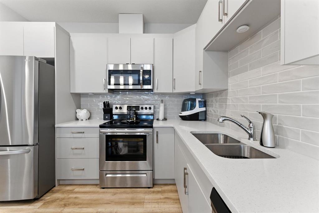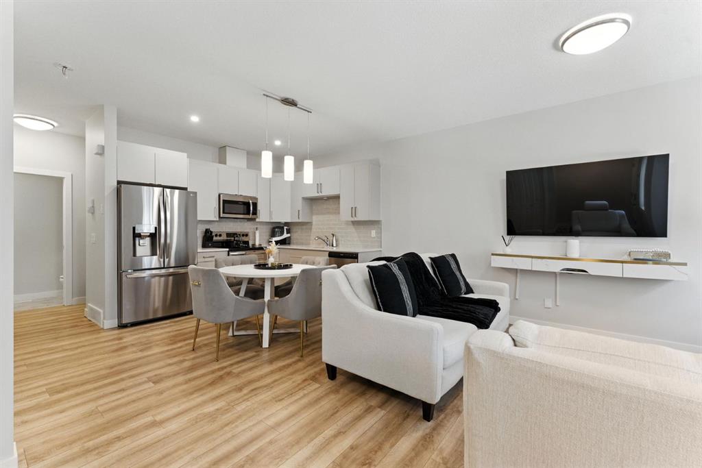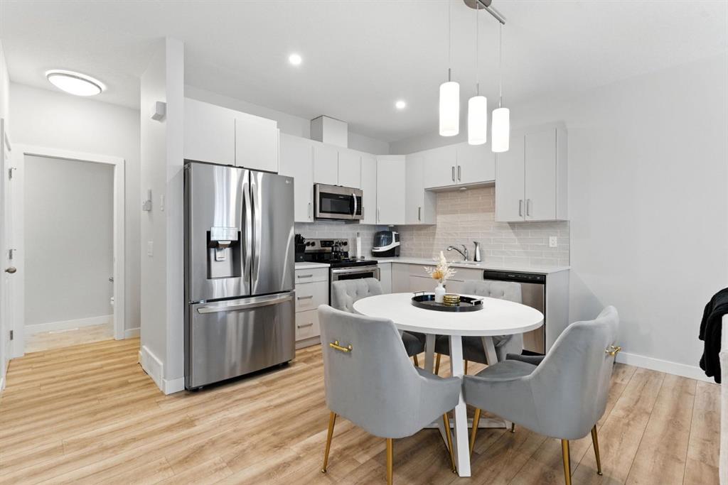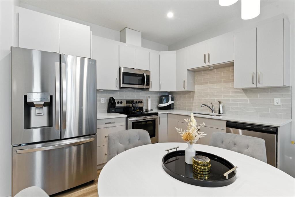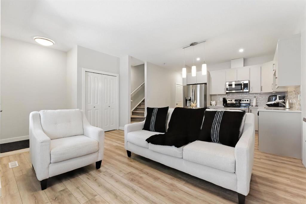 Discover modern living in this beautifully maintained 2 bedroom, 2.5 bathroom stacked townhouse in Airdrie’s sought-after Canals community. With 1,082 sq. ft. of thoughtfully designed space, this home offers an open-concept main floor with durable vinyl plank flooring, a bright living area, and a sleek, contemporary kitchen perfect for everyday living and entertaining. A convenient mudroom off the entrance leads to the attached garage, while a main floor powder room adds guest-friendly functionality. Upstairs, enjoy cozy carpeting, upper-level laundry, and two spacious bedrooms, including a private primary suite with a walk-in closet and 4-piece ensuite. A second full bathroom provides added convenience, and the undeveloped basement offers endless potential for a home office, gym, or extra storage. Perfectly located along 8th Street SW, you’re just minutes from shopping, dining, schools, parks, and scenic walking paths along the canals. Whether you’re a first-time buyer, downsizer, or simply looking for low-maintenance living in a vibrant neighbourhood, this move-in-ready home is full of comfort, style, and everyday convenience.