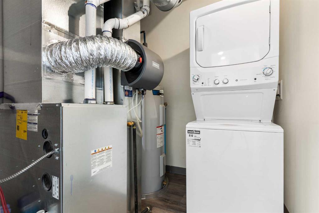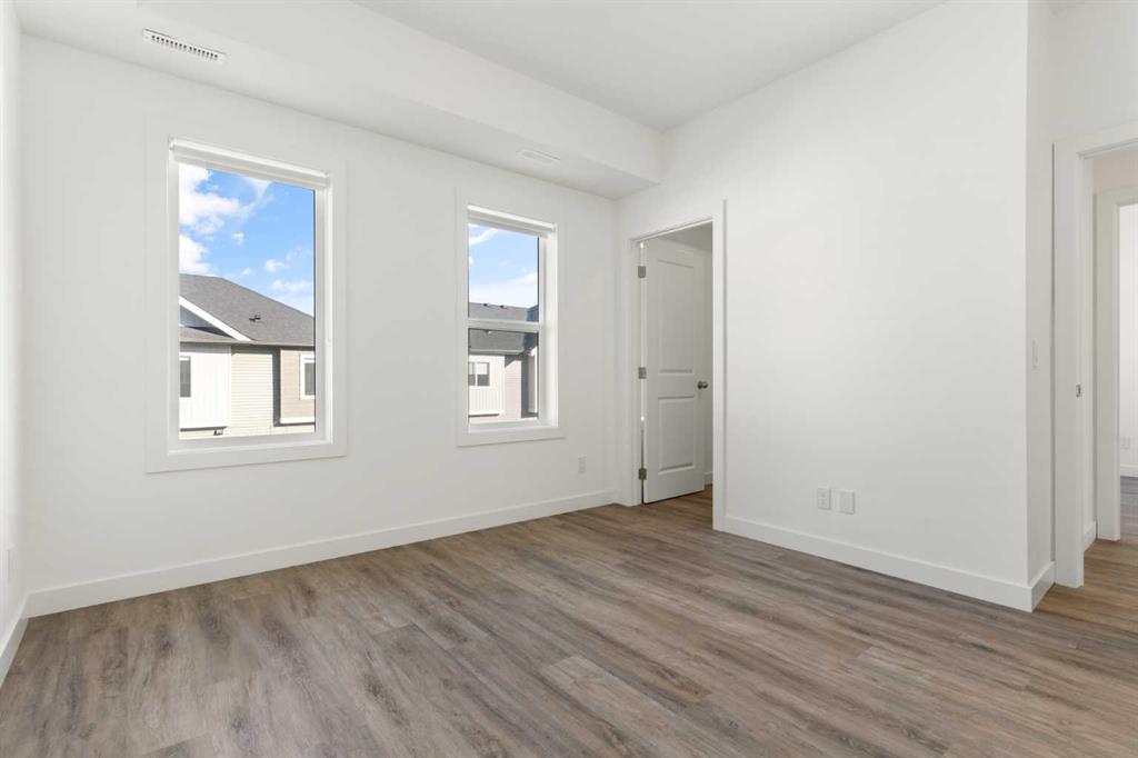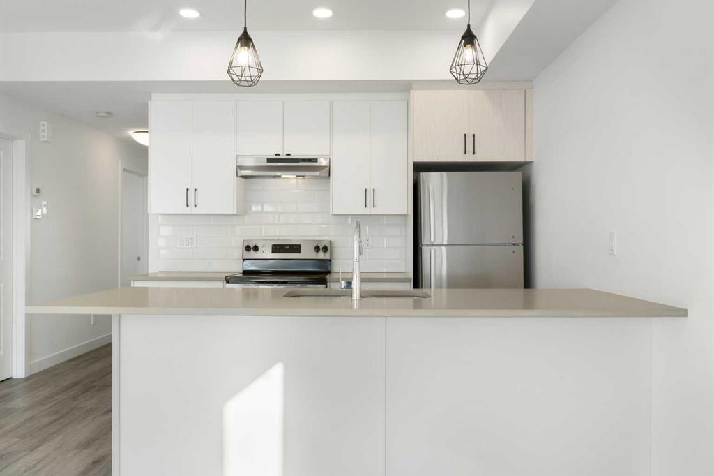 Welcome to The Jasper, a stunning top-floor stacked townhouse that offers the perfect blend of style and function. This unit at 602 24 Rivercrest Drive features over 1250 sq ft of thoughtfully designed living space, with most of the layout conveniently situated on a single level. Step inside and up to the main floor and you will discover an open-concept living area with a full kitchen that’s a home chef’s dream. The kitchen boasts elegant quartz countertops, soft-close drawers, and stylish two-tone cabinets highlighted by pendant lighting. An adjacent, flexible space is perfect for a spacious dining area or a home office. This home has two large bedrooms and two full bathrooms. The primary bedroom is a true retreat, featuring a massive walk-in closet and a luxurious 4-piece ensuite. A spacious laundry room adds to the convenience.This unique floorplan is designed to feel like a modern apartment but with the added benefits of a main floor storage/flex area and direct access to an oversized, extended single-car garage.This home is perfectly situated to offer the best of both convenience and community. It’s located right next to a future school site, with transit options directly at your doorstep for effortless commuting. Enjoy a short two-minute walk to Bow Valley High School, and a quick five-minute trip to the Spray Lakes Sports Centre for all your recreational needs. For bigger city amenities, you’re only 20 minutes from South Calgary, and the mountains are within easy reach, with Canmore just a 40-minute drive away.