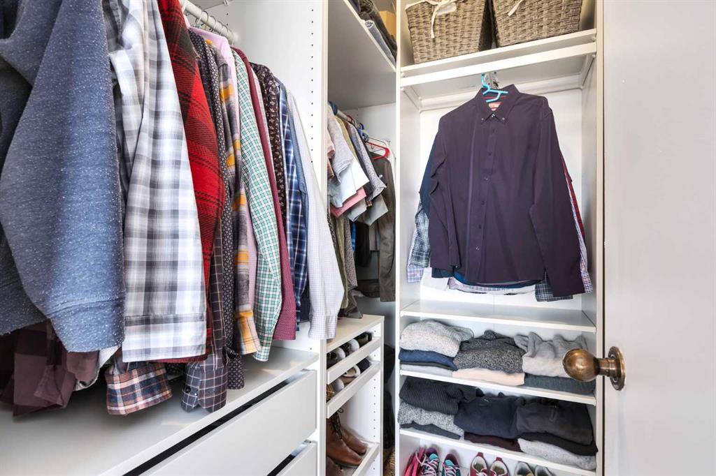 Both bedrooms are impressively sized. The primary suite features its own 2-piece ensuite and a beautiful walk-in closet with custom built-ins, a true retreat. The second bedroom is equally generous with ample closet storage and its own views.