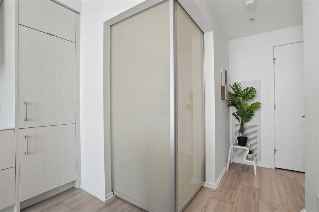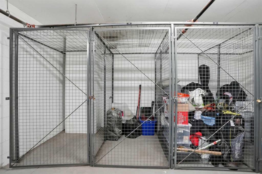 Storage is a rare highlight here, with four deep closets throughout the unit, offering more capacity than most similar condos and even competing with many two bedroom layouts. The attention to detail continues with a dedicated storage locker located in a clean, enclosed room on P3, providing a more secure and private alternative to typical parkade storage.