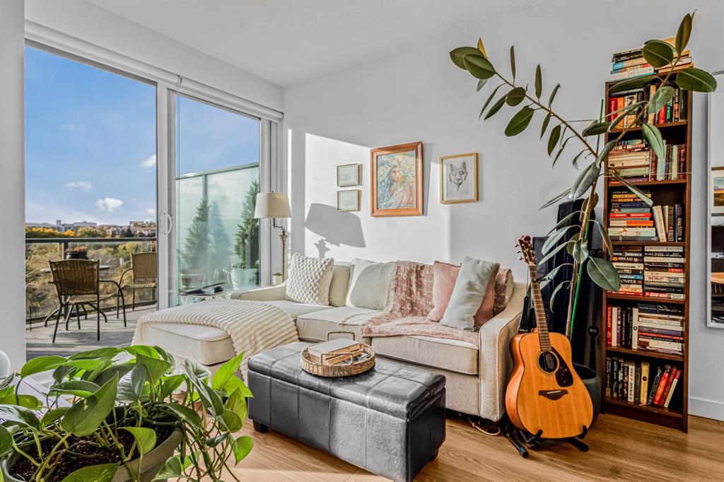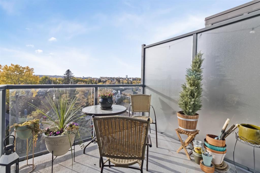 Welcome to this stunning one-bedroom penthouse suite located in the highly sought after community of Hillhurst. Perfectly positioned for an inner-city lifestyle, you’ll be just steps away from downtown, the Sunnyside C-Train station, Riley Park, trendy coffee shops, boutique shopping, and some of Calgary’s best restaurants. This top floor unit is designed to impress with a bright, open layout and floor-to-ceiling windows that fill the space with natural light. The kitchen, complete with quartz countertops, stainless steel appliances, and a gas cooktop with an eat-up breakfast bar, flows seamlessly into the dining and living areas, the perfect open-concept space for entertaining or relaxing at home. The private balcony offers breathtaking mountain views, an ideal backdrop for your morning coffee or evening wind-down. The primary bedroom features a walk-through closet leading to a spa-inspired ensuite, creating a relaxing retreat right at home. Additional features include in-suite laundry, a titled heated underground parking stall, an assigned storage locker, bike room and access to a residents’ car wash. If you’ve been looking for the perfect blend of convenience, style, and comfort in the heart of Calgary, this Hillhurst penthouse is it! Pets are welcome with board approval. Seller is offering 3 months paid condo fees to the buyer!