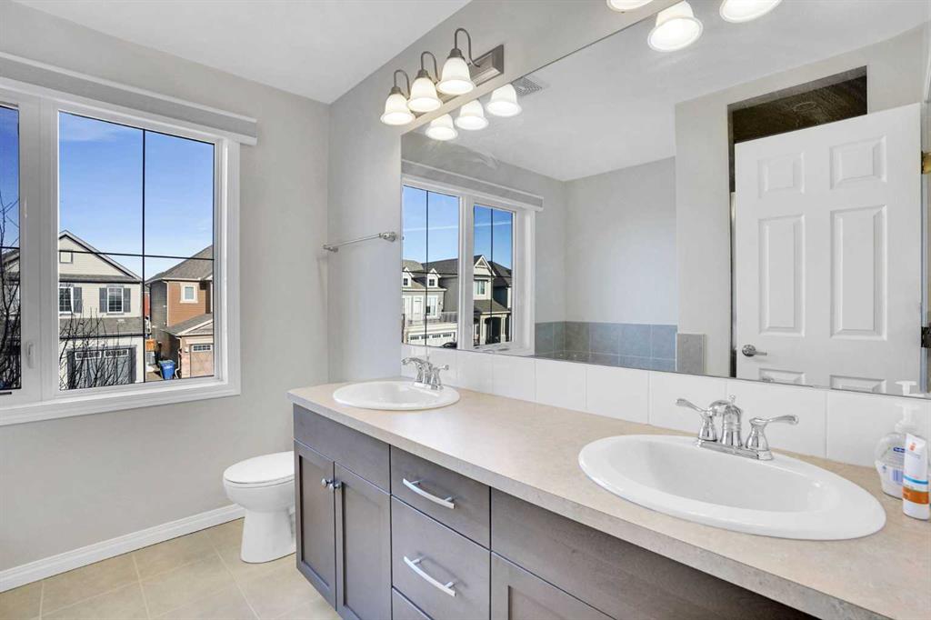 Welcome to this beautifully maintained single-family home with a front-attached garage, perfectly positioned to capture sunny southern exposure and non-obstructive pond views. The south-facing backyard is filled with natural light all day long—an ideal setting for relaxing evenings, outdoor dining, and enjoying stunning sunsets and it creates a peaceful extension of your living space—rarely found and highly sought after. Pride of ownership is evident throughout, with the home kept in like-new, move-in-ready condition. The thoughtfully designed main floor offers excellent flexibility, featuring a private office that can easily serve as a fourth bedroom, along with a convenient half bathroom—perfect for guests, remote work, or multi-generational living. Upstairs, you’ll find three generously sized bedrooms and two full bathrooms, including a comfortable primary retreat designed for both privacy and everyday comfort. The layout is practical and family-friendly, with plenty of natural light flowing through large windows on both levels. Whether you’re enjoying your morning coffee or unwinding after a long day, the setting offers a quiet escape without sacrificing convenience. Located in a family-oriented community Windsong, this home is just minutes from schools, playgrounds, walking paths, and shopping centres. Enjoy quick access to CrossIron Mills Mall, nearby amenities, and major roadways, with Downtown Calgary only a 25-minute drive away—making daily commuting or weekend outings effortless. This is an outstanding opportunity to own a well-kept home with a premium backyard view, functional layout, and excellent location. Don’t miss your chance—Check out the 3D Virtual Tour link or book your private showing today!