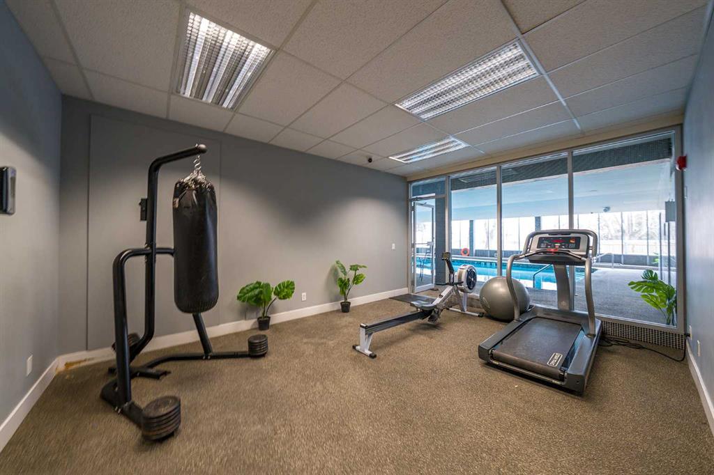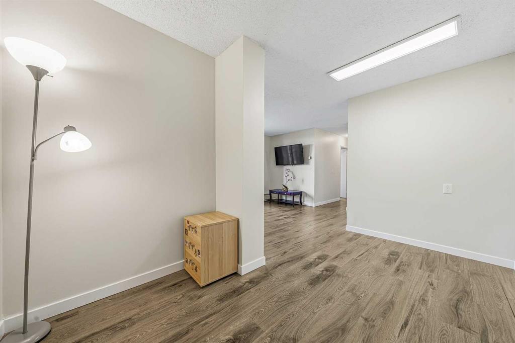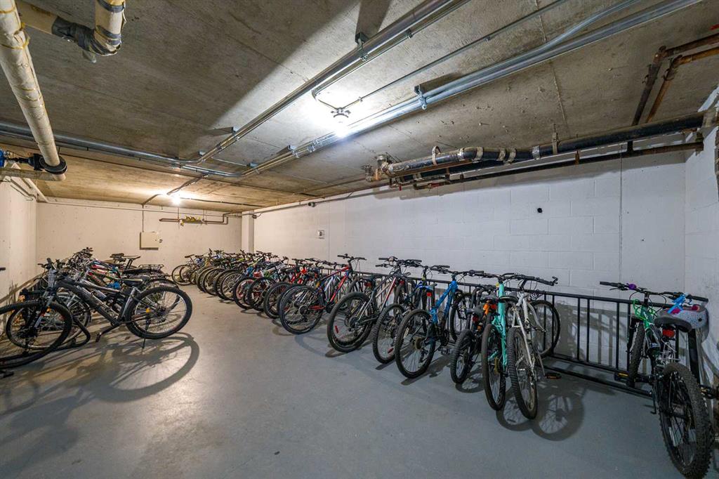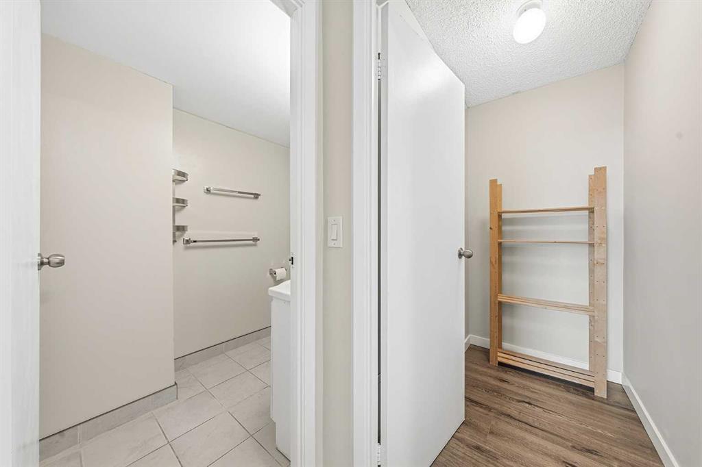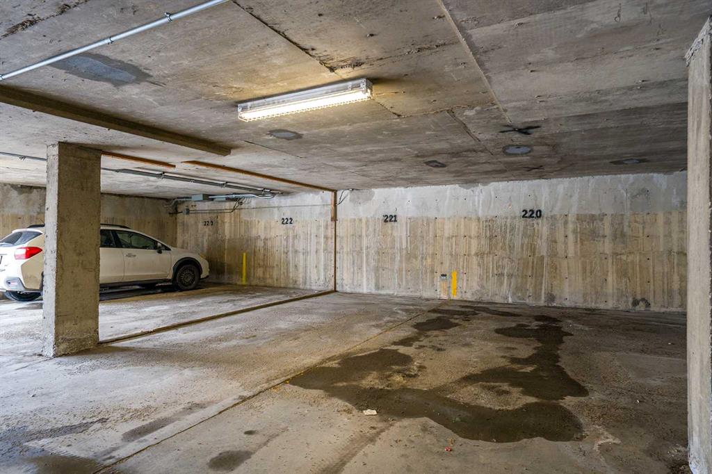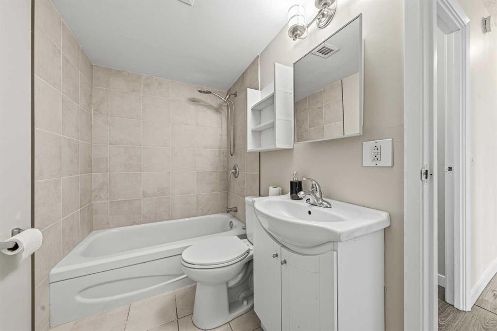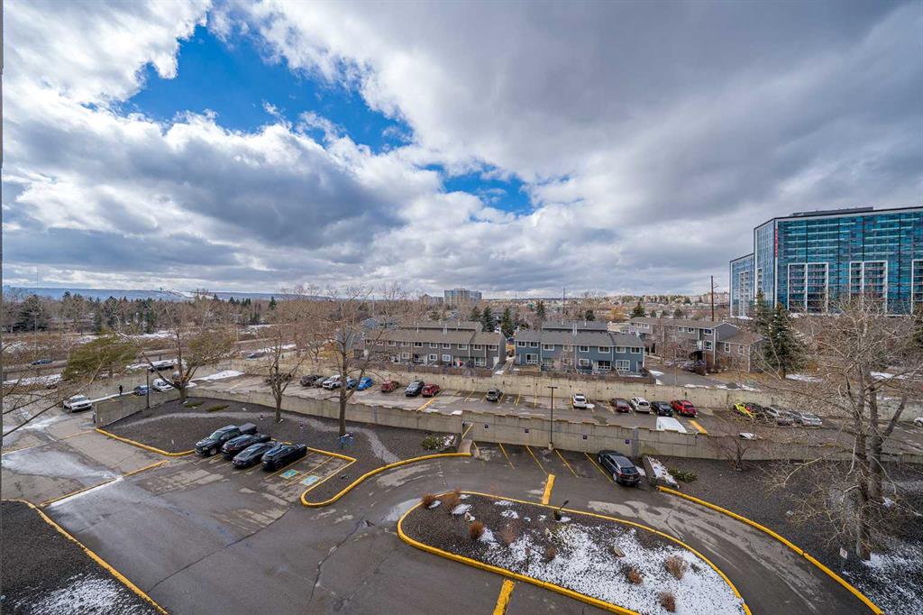 Welcome to this immaculate, west-facing two-bedroom condo offering stunning mountain views and exceptional natural light. The spacious living room opens to a large balcony—perfect for relaxing and enjoying the scenery. From the balcony, enjoy views of COP, the mountains, and a panoramic outlook—enhanced by a stylish light blue accent wall that adds warmth and character. The beautifully updated kitchen features stainless steel appliances, sleek glossy white cabinetry, quartz countertops, and ceramic tile finishes. Durable laminate flooring with 3-inch baseboards runs through the main living areas and bedrooms, while neutral tones create a clean, modern feel throughout. Both bedrooms are bright and inviting, and the updated 4-piece bathroom features a modern vanity. A large in-suite storage room adds everyday convenience. This home is exceptionally clean, shows true pride of ownership, and is truly move-in ready with quick possession available—no extra work needed. It includes two parking stalls, one covered, and access to excellent amenities, including a gym, pool, social room, bike storage, and tennis court. Ideally located within walking distance to Dalhousie LRT, shopping, and highly regarded schools, this is a perfect opportunity for comfortable, convenient living.