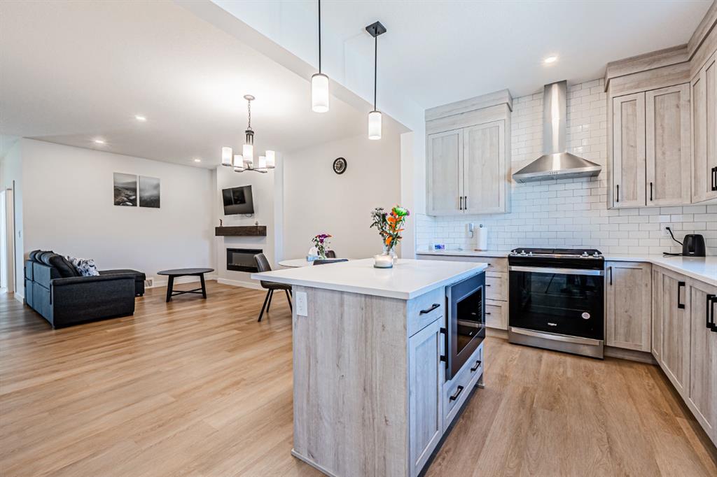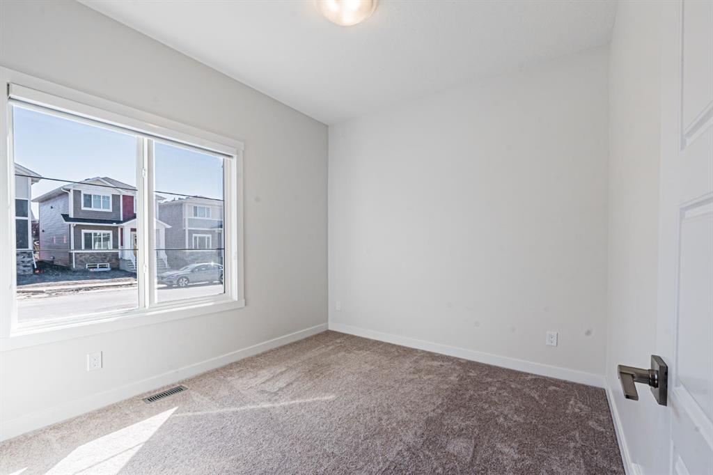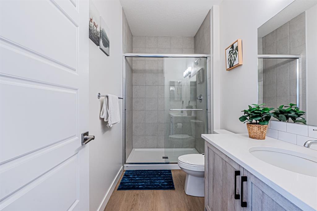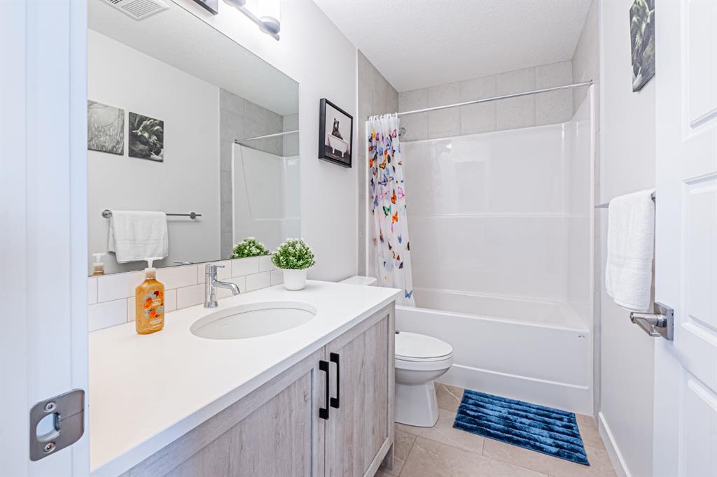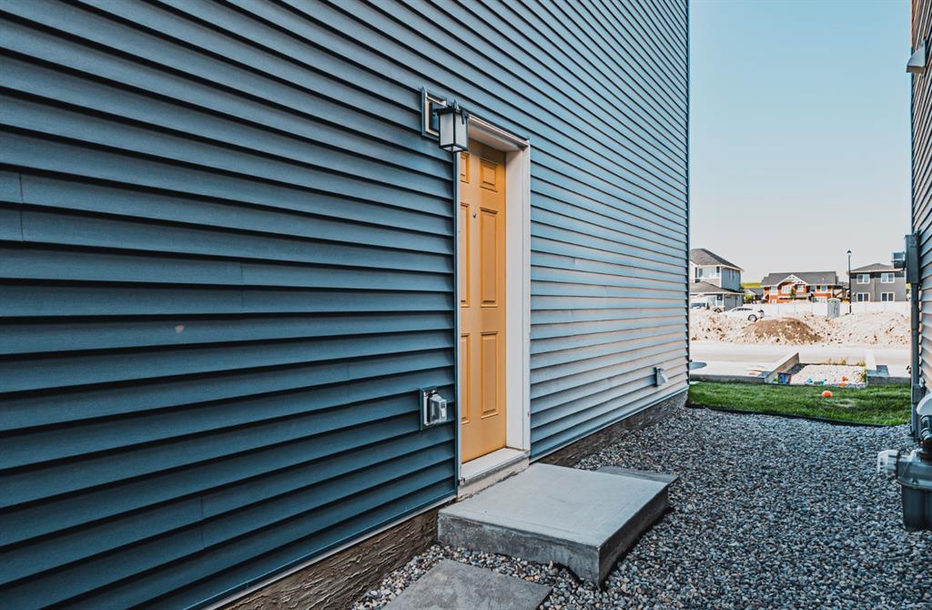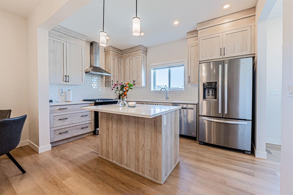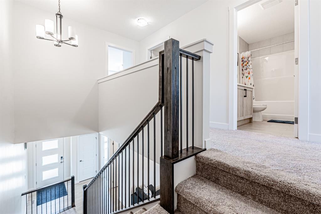 Welcome to this fully upgraded 4 bedroom, 3 full bathroom home located in the desirable Bayside community of Airdrie, close to schools, shopping, walking pathways, parks, and all amenities. The main floor features an open concept layout with a large upgraded kitchen that includes stainless steel appliances, upgraded cabinets, a spacious island, and a big pantry, along with a full bedroom and full bathroom that add flexibility for guests or extended family. Upstairs you will find a spacious primary bedroom with a walk-in closet, two additional bedrooms, another full bathroom, and a convenient laundry area. The basement offers a separate side entry, 9 foot ceilings, and excellent potential to be developed to suit your needs. The exterior is complete with front and back landscaping, a paved back lane, and a concrete garage pad at the back that provides parking and future garage development potential. Don’t miss out on this incredible opportunity—schedule your viewing today.