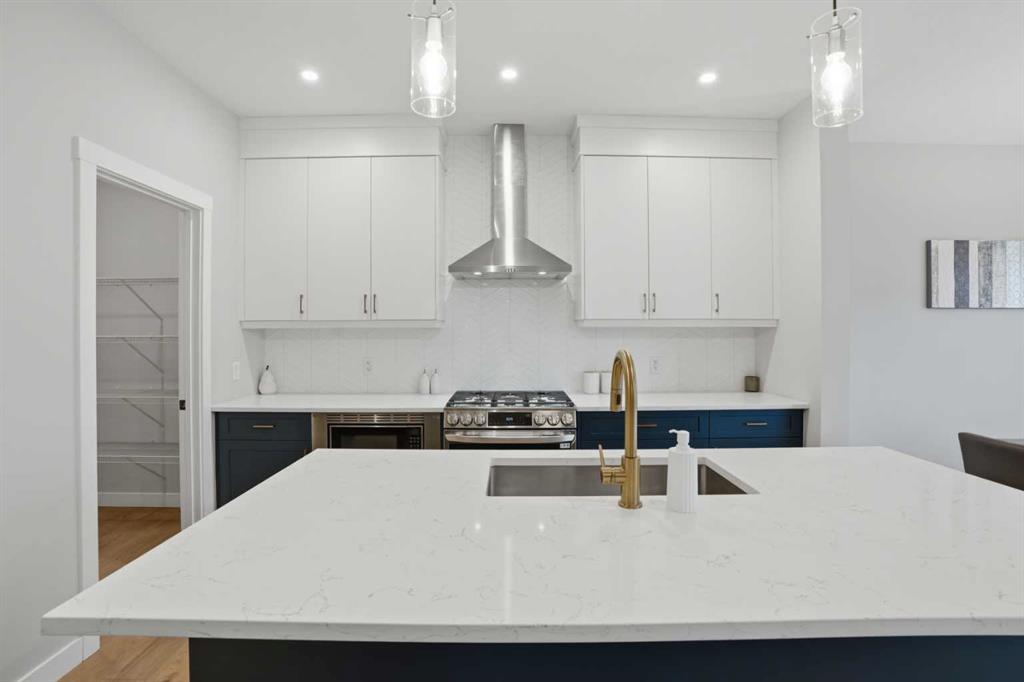 **LEGAL 2 Bedroom Basement Suite** Stunning Family Home | 2,218 SqFt Main & Upper | 814 SqFt Legal Basement Suite | Sleek Modern Design | Two Toned Kitchen | Full Height Cabinets | Herringbone Backsplash | Stainless Steel Appliances | Gas Stove | Quartz Countertops | Kitchen Island with Barstool Seating Space | Walk-through Pantry | Main Level Office | Electric Fireplace | Open Floor Plan | High Ceilings | Large Windows | Great Natural Light Throughout | 3 Upper Level Bedrooms | Upper Level Family Room | Upper Level Laundry Room with Folding Shelf | Primary Ensuite Bath Standalone Soaking Tub | Great Closet Space | Separate Entry to Legal Basement Suite | Basement Laundry | Open Concept Living | Sizeable Bedrooms | Generous Storage | Rear Deck | Large Fully Fenced Backyard | Front Double Attached Garage. Welcome to your beautiful 2-storey family home boasting over 3,000 SqFt of developed living space throughout the main, upper & basement levels. The front door opens to a view of the beautiful the spindle staircase. The wide plank flooring, high ceilings & wide hallways highlight the size of this home. Step into the open floor plan kitchen, dining & living rooms where you’ll immediately want to entertain! The kitchen is two-toned white & blue, a herringbone backsplash, sparkling quartz countertops & stainless steel appliances with a gas stove. The centre island with barstool seating is the perfect space to socialize while you cook or to enjoy small meals. The walk-through pantry that connects the kitchen to the mud room area off the interior garage door makes every grocery drop easy! The dining & living rooms are framed with glass providing incredible natural light. The dining room has sliding glass doors that lead to the back deck making indoor/outdoor living easy in Calgary’s warm summer months. The living room is centred with an electric fireplace with a TV ready wall above. The open-door office across from the kitchen island is a bonus for anyone with a work-from home lifestyle or can be used a kid’s playroom! The main level is complete with a 2pc bath. Upstairs holds 3 bedrooms, 2 bathrooms, a family room & laundry room. The primary bedroom is a personal oasis with plush carpet flooring, a deep walk-in closet & private 5pc ensuite bathroom. The ensuite has a deep standalone soaking tub, walk-in shower, double vanity & private washing closet. Bedrooms 2 & 3 are on the other side of the central family room; these share the 4pc bath with a tub/shower combo. The family room is a great space to come together in the evenings to relax & unwind. The laundry room located upstairs is every home owner’s dream as its near all the bedrooms! Downstairs, the legal 2 bedroom basement suite has a separate side entry & its own laundry making it a completely independent level in the home. The open floor plan kitchen & rec room is spacious! Both bedrooms are sizeable & share the 4pc bath. Outside is an incredible backyard is ready to be enjoyed! Hurry and book your showing today!