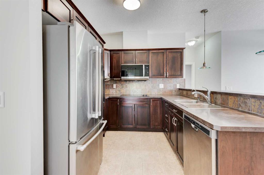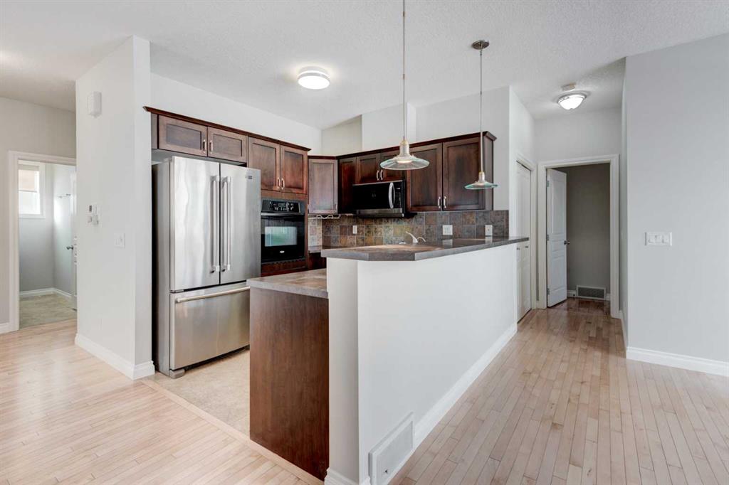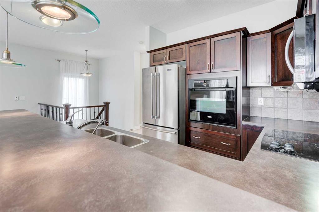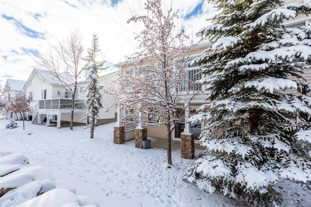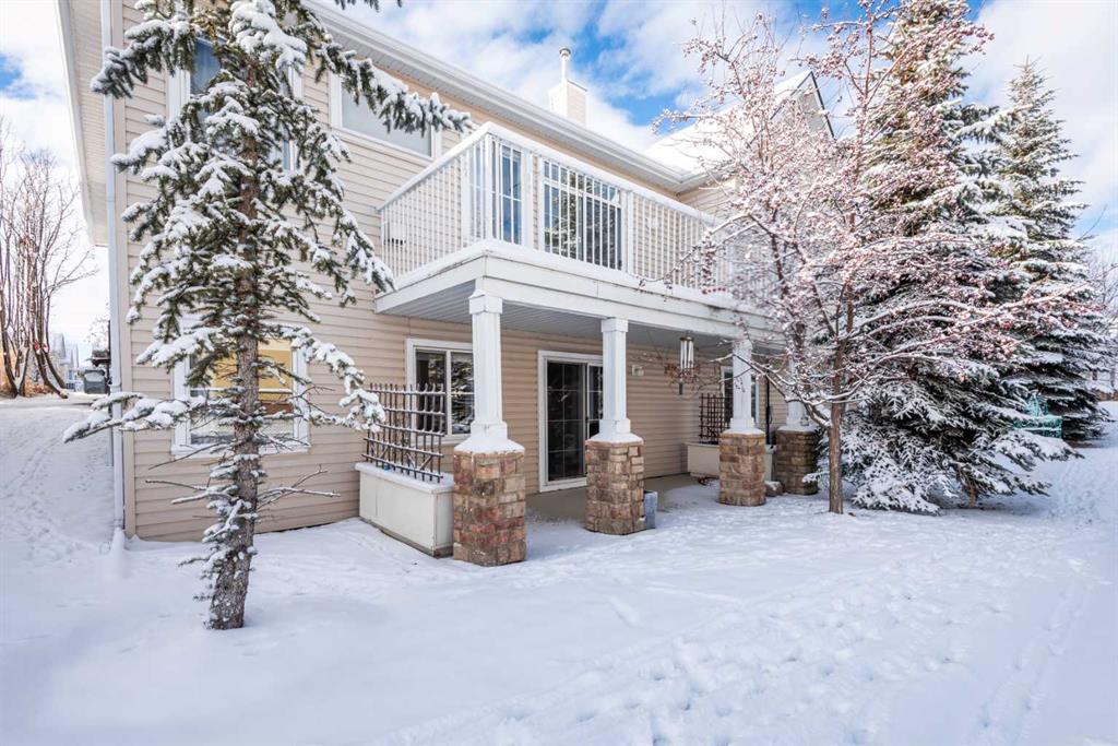 Welcome to this well-maintained semi-detached bungalow villa, offering 2,145 sq. ft. of developed living space across two levels, complete with a walkout basement, in the highly sought-after Tucker Hill community of Westmount, Okotoks. This home features an attached heated double garage, 3 spacious bedrooms, and 3 full bathrooms, perfect for downsizers or anyone seeking comfortable single-level living with added walkout flexibility. rom the moment you enter, the spacious tiled foyer sets the tone, leading to an open-plan living area with a modern custom kitchen. The kitchen is equipped with a built-in wall oven, electric cooktop, microwave hood fan, abundant cabinetry, and a raised breakfast bar, making it both functional and stylish. The living room, featuring a cozy gas fireplace, flows seamlessly into the dining area, creating a warm, inviting space for family and friends. Step out onto the upper deck overlooking the green space and pathway system, complete with a BBQ gas line—perfect for outdoor entertaining.The primary bedroom offers a large walk-in closet and a 4-piece ensuite, while the second bedroom, previously used as a home office, is also generously sized. A 3-piece main bathroom with laundry completes this level.The walkout basement expands your living space, featuring a large family room with custom built-ins and included entertainment system, a third bedroom with walk-in closet, a full bathroom with oversized walk-in shower, and a flex room with hot tub rough-in (previously used as a gym/craft room). A generous utility/storage room completes the basement.? Modern mechanical updates include central A/C (2024), a new hot water tank (2024), and a high-efficiency furnace (2024). Enjoy low-maintenance living with affordable condo fees covering landscaping, snow removal, insurance, water, sewer, trash, and more. Located in a quiet, well-managed complex with walking paths and convenient visitor parking, this home offers exceptional value. You’re just minutes from shopping, dining, recreation, medical services, and schools, with Calgary only a short drive away, providing the perfect blend of small-town charm and big-city convenience.
