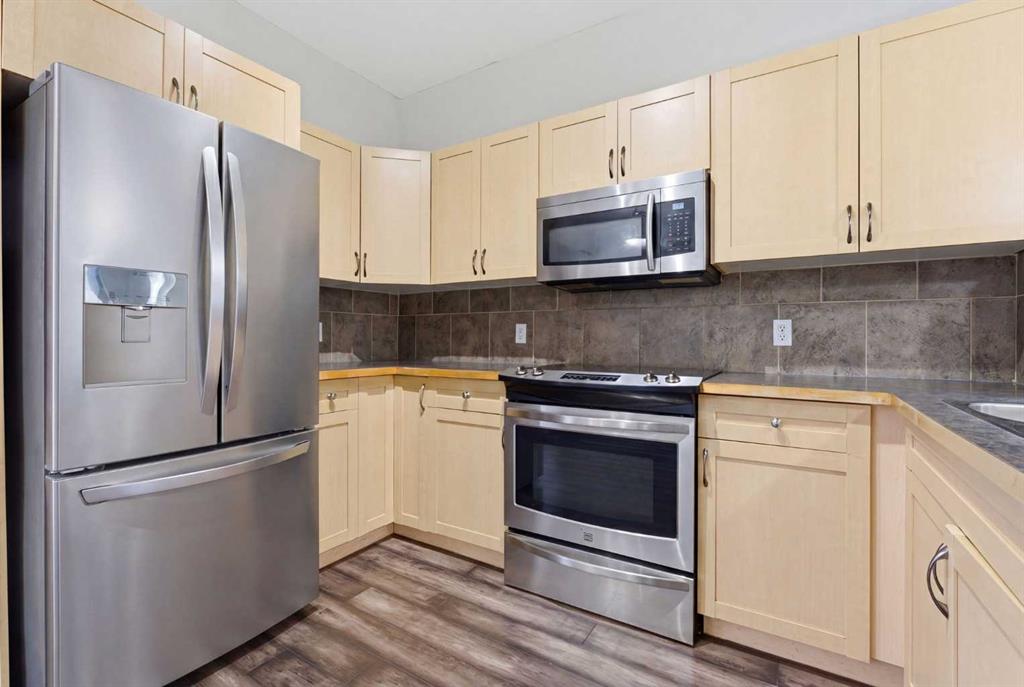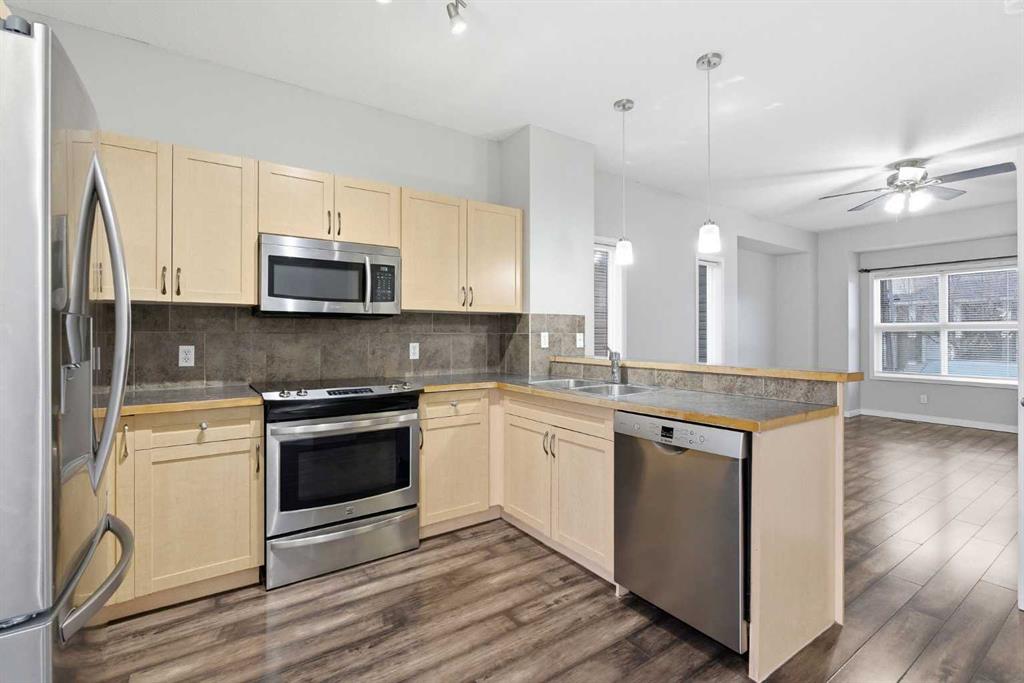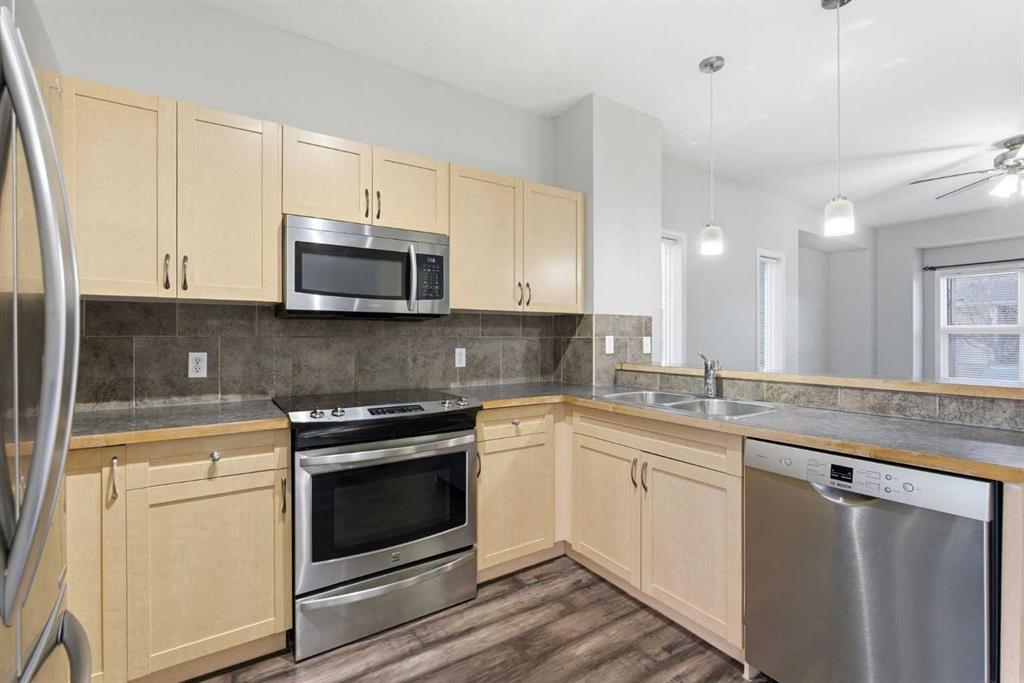 This highly desirable location is sure to please with everything within walking distance. Freshly painted in designer colours and move-in ready this bright end unit is a perfect spot to call home. Large open concept main floor with 9 foot ceilings and extra widows for light and only one neighbour. The main floor offers plenty of space with a kitchen nook(perfect for home office or kids nook), peninsula style island with room for 4 stools, room for a dining table and living space to spare. Plus a convenient 2 pc bathroom. The upper level comprises 2 exceptionally large suites and a 4pc bathroom with cheater ensuite door. No lack of space for furniture or toys. Downstairs in the basement you will find a large recreation area with a full bathroom and laundry area. This complex is just undergoing a major exterior overhaul and will have brand new siding completed soon. Nice low condo fees and priced competitively. Pets are allowed. This is one to put on your list today.