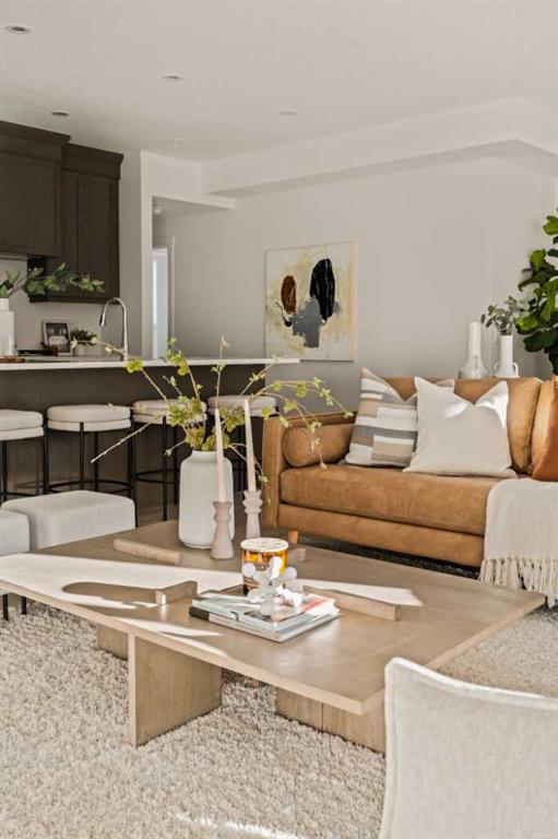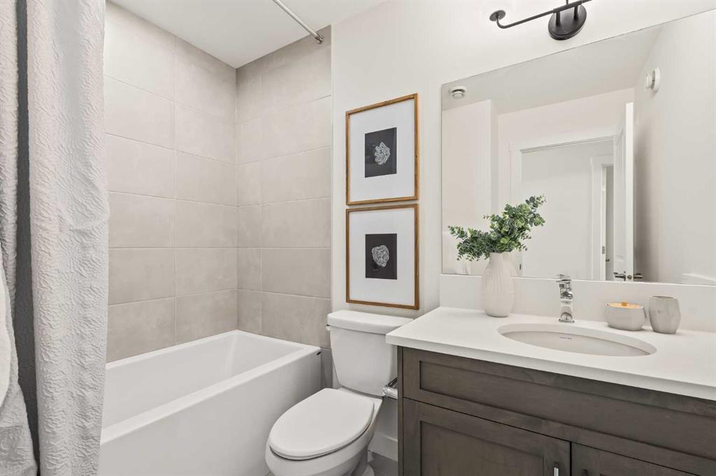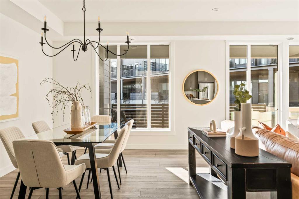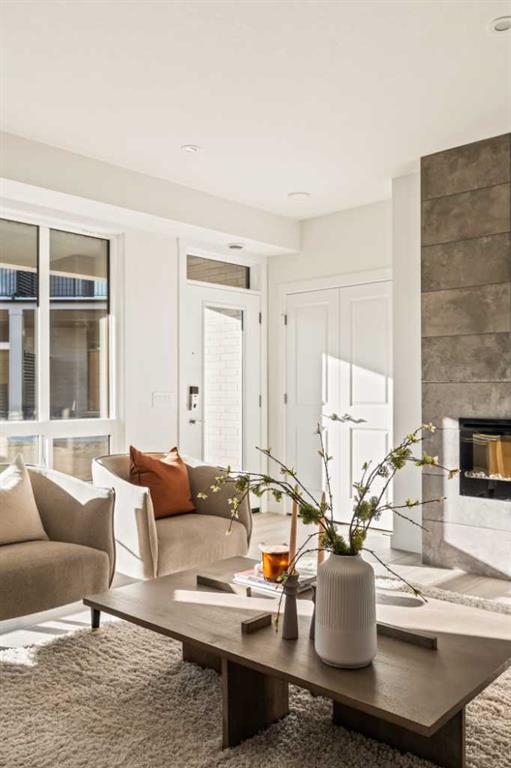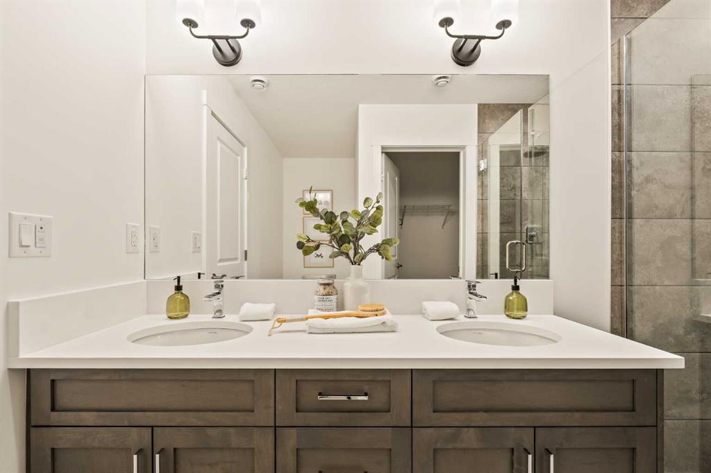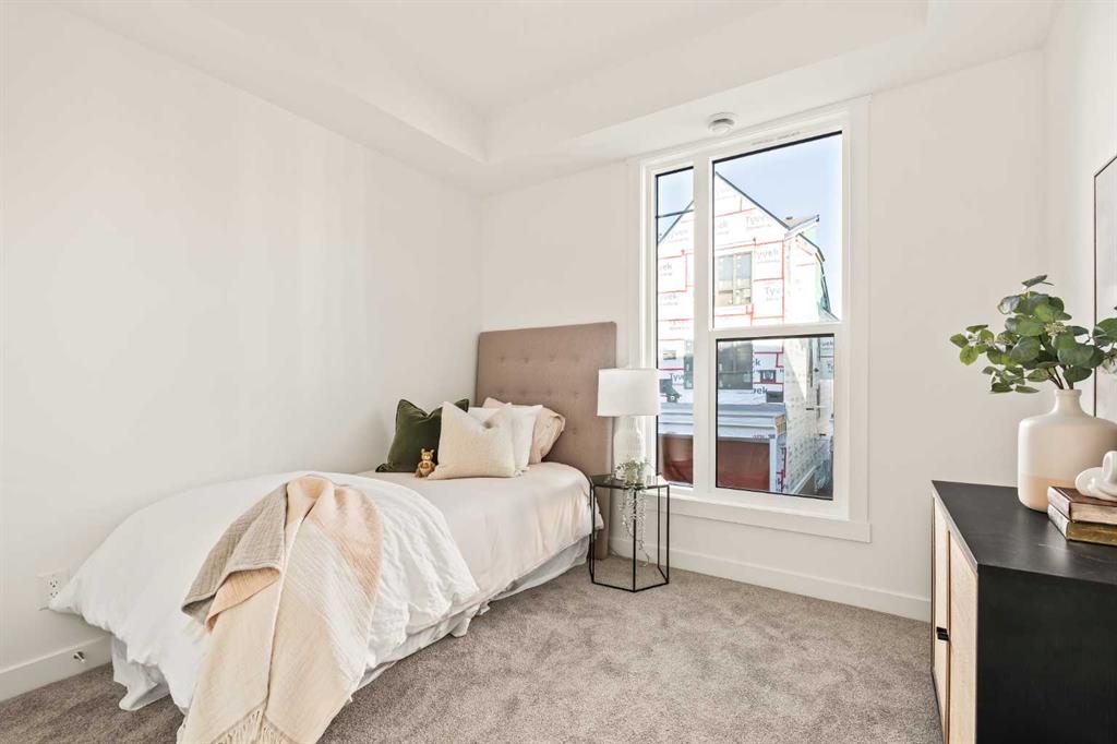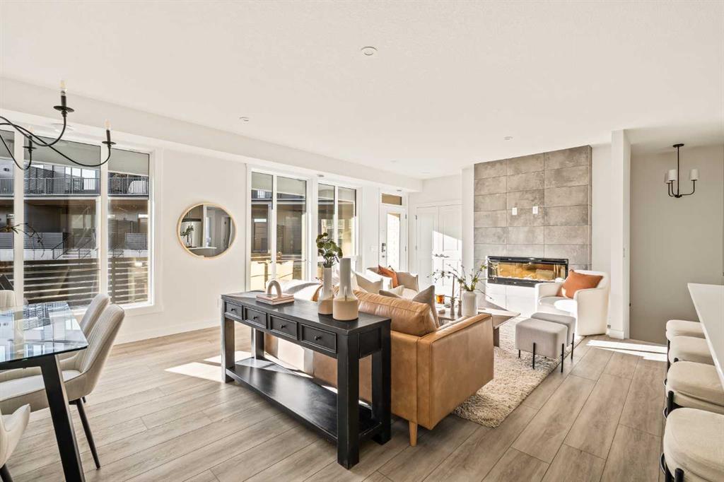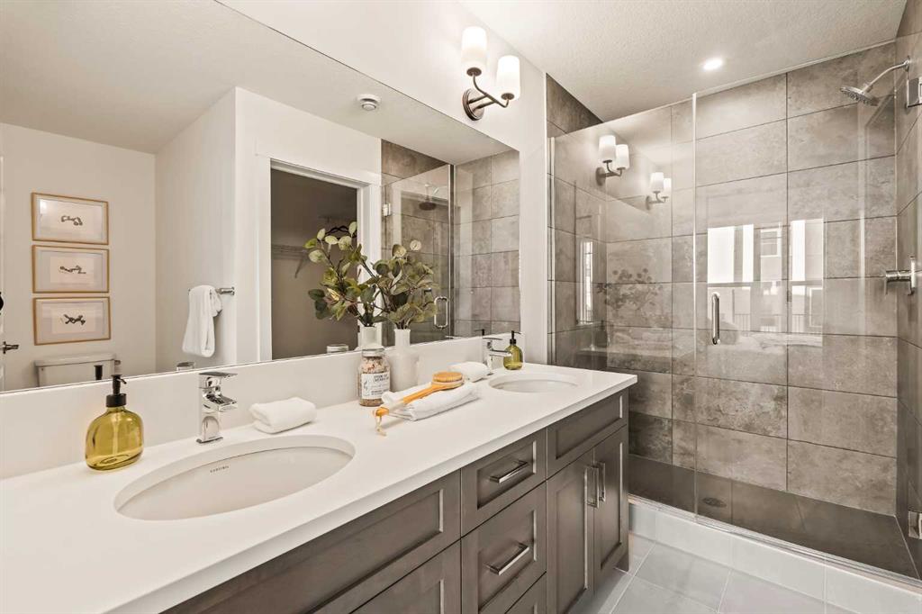 Welcome to the Regent at Crown Park, a beautifully crafted bungalow-style townhome offering true single-level living without compromise! This unique design combines the benefits of a bungalow lifestyle without compromising on storage or garage space, all while moving into a brand new beautiful home with full warranty! Thoughtfully designed with down-sizers in mind, this maintenance-free residence is perfect for those who travel or simply prefer a lock-and-leave lifestyle free from exterior upkeep, landscaping, or snow removal. This brand-new 3-bedroom, 2-bathroom home offers nearly 1,300 sq.ft. of well-planned living space on one level, plus a lower level featuring extensive storage and access to the oversized double garage. At the heart of the home, a stunning open-concept living area was created for effortless entertaining. The central kitchen seamlessly connects the living and dining spaces while a full wall of south-west facing windows floods the interior with natural light all year long. Timeless finishes include warm-tone natural wood shaker maple cabinetry, light quartz countertops, and a premium built-in appliance package featuring a gas cooktop, built-in oven, and chimney hood fan – ensuring the chef is always part of the conversation. A striking floor-to-ceiling tile fireplace anchors the great room, offering a warm focal point and comfortable seating for gatherings. The spacious dining area easily accommodates a full table and buffet, providing exceptional furnishing flexibility. Privately positioned at the rear of the home, the primary retreat features a generous walk-in closet and spa-inspired ensuite with dual vanities and a tiled walk-in shower with 10mm glass. A centrally located laundry room with upper cabinetry and folding counter enhances everyday convenience while naturally separating the primary suite from the secondary bedrooms. Two additional bedrooms and a full bathroom provide versatility for guests, a home office, media room, or creative space – while maintaining excellent resale appeal. The lower level offers a large storage room and an oversized utility room (approx. 17′ x 7′) ideal for hobbies or seasonal storage. A double closet and oversized double attached garage completes the interior features on the lower level. Step outside to your private covered southwest-facing patio spanning over 26 feet that overlooks the park and includes a gas line, hose bib, and A/C rough-in – the perfect setting for relaxed outdoor living and future upgrades in mind. Bungalow-style townhomes with double attached garages are exceptionally rare. Enjoy added peace of mind with comprehensive builder warranty coverage plus Alberta New Home Warranty. Located minutes from downtown and surrounded by established amenities, Crown Park offers the confidence of a mature community paired with the comfort of a brand-new home. This is one of the very last brand new opportunities remaining – a truly rare opportunity you won’t want to miss!