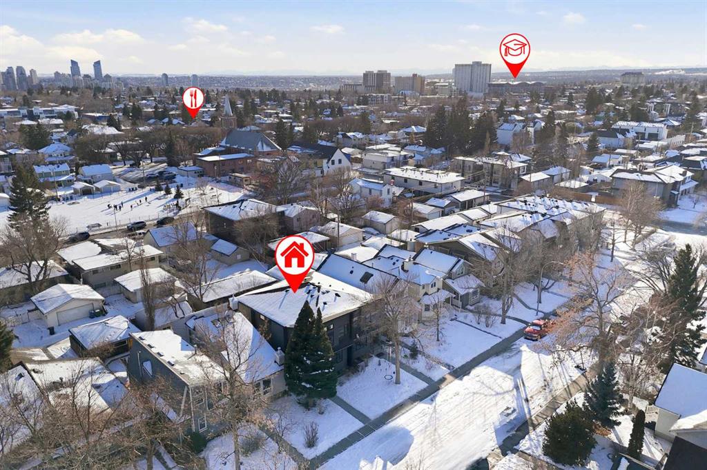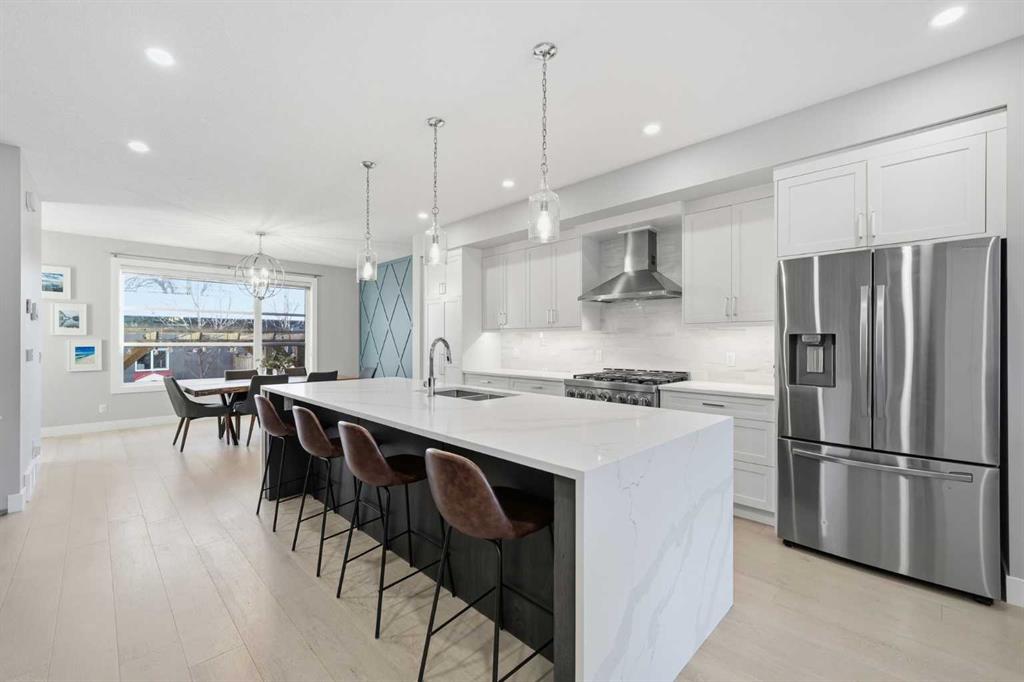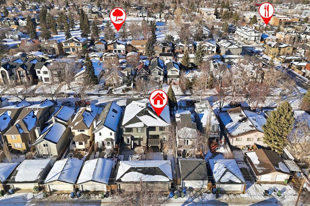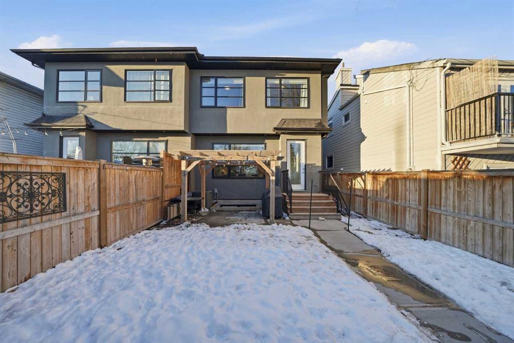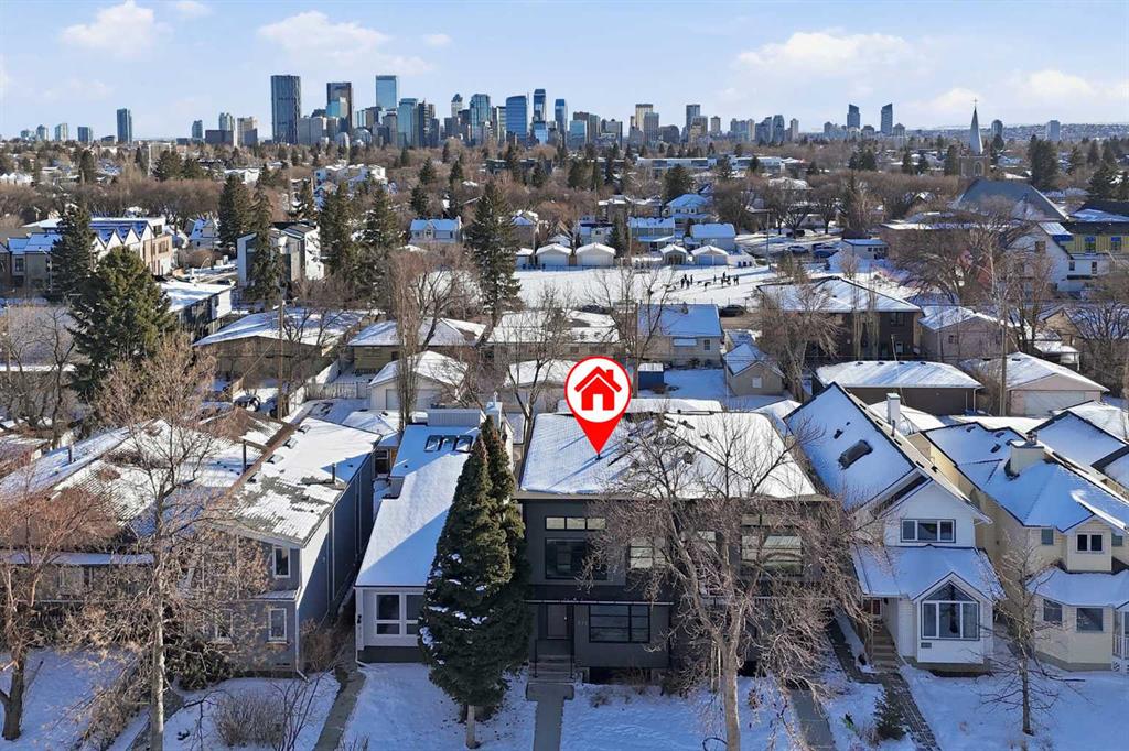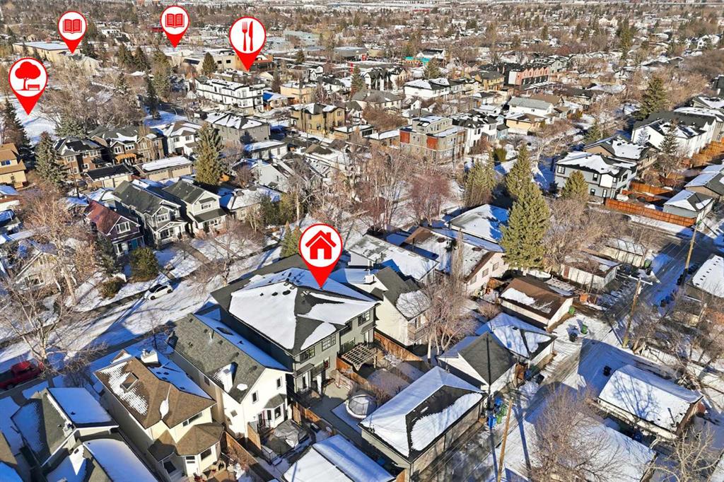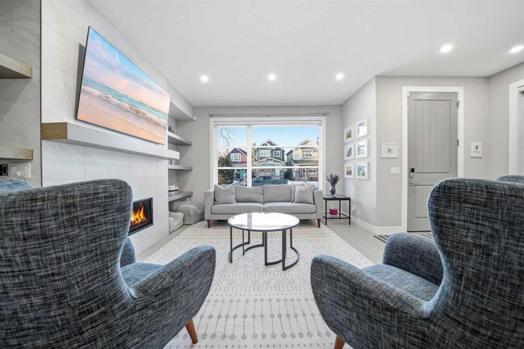 Tucked along one of Mount Pleasant’s most charming tree lined streets, this beautifully designed inner city home blends elevated style with everyday comfort, just moments from local restaurants, cafés, boutique shops, and with effortless access to 16 Ave NW and downtown. You are also minutes from the beloved Confederation Park, one of Calgary’s most cherished green spaces, perfect for year round walks, playgrounds, and scenic outdoor escapes. As you arrive, the rich cedar soffit overhang creates a warm architectural welcome before stepping inside to discover gorgeous wide plank Barcelona wood floors, soaring 9 ft ceilings, and elegant 8 ft interior doors that set the tone for the refined design throughout. The main floor offers an inviting open layout anchored by a casual yet sophisticated living area featuring a striking floor to ceiling custom tiled gas fireplace with built ins, creating the perfect focal point for relaxing evenings or entertaining. The kitchen is the heart of the home, thoughtfully designed with a massive island ideal for gathering, towering white shaker cabinetry, quartz counters, SS appliances, and a 6 burner gas range, all complemented by an abundance of cabinetry and storage. Expansive oversized windows draw warm southern sunlight into the space, while automated blinds throughout provide effortless light control and privacy. Upstairs, three spacious bedrooms create a functional family layout highlighted by a stunning primary retreat. Large windows fill the room with natural light, while modern finishes create a peaceful, elevated atmosphere. The spa inspired ensuite offers a luxurious escape with a freestanding tub beneath a picturesque window, dual vanities, and a large glass enclosed shower. Two additional bedrooms share a beautifully finished main bath, while a spacious upper level laundry room offers room to sort, fold, and store with ease. The fully developed basement expands the living space with a fourth bedroom and full bath, ideal for guests, teens, or extended family. A sleek wet bar makes entertaining effortless, while the large rec area easily accommodates a media space, home gym, or play area. Large closets and thoughtful storage are found throughout the home. Outside, the sunny backyard offers a peaceful retreat complete with a charming gazebo, perfect for summer evenings or quiet mornings. The double insulated detached garage completes the home! Numerous security measures and home safety features add peace of mind. Located just blocks from the Mount Pleasant community pool, neighbourhood favourites Fourth Spot Kitchen & Bar and Our House Restaurant, and only one block from an off leash dog park. Families will appreciate nearby schools including Mount Pleasant School, King George School, and St. Joseph School, along with additional options in surrounding communities. Refined, functional, and perfectly located, this is inner city living at its finest. Plus a bonus for AMAZING neighbours!