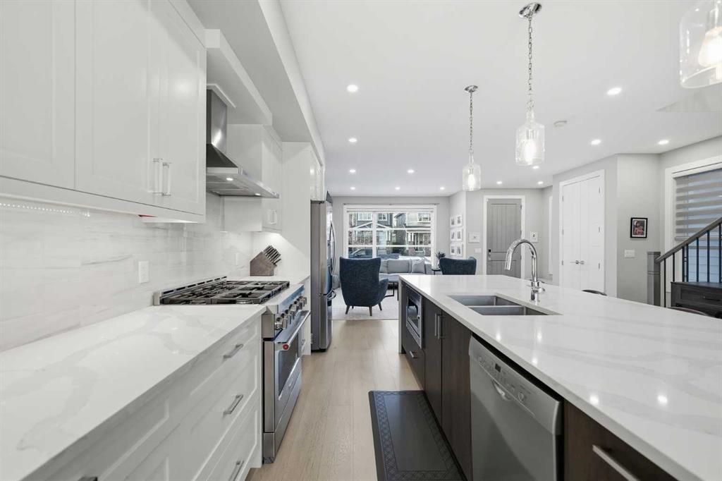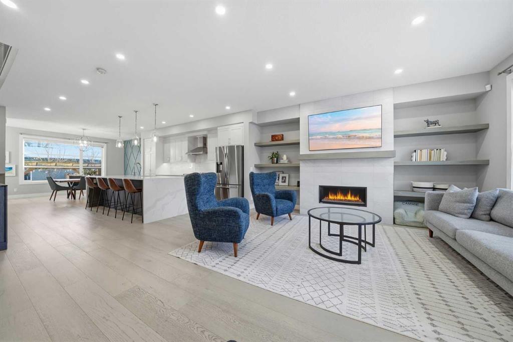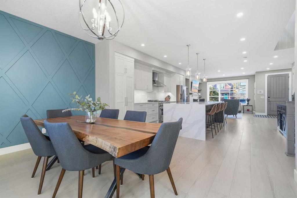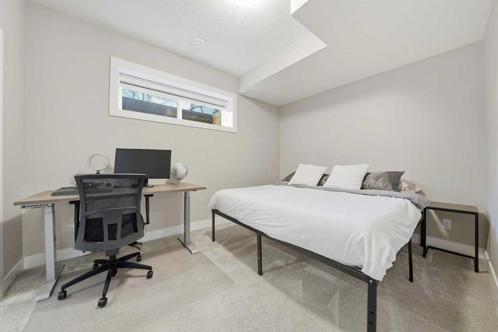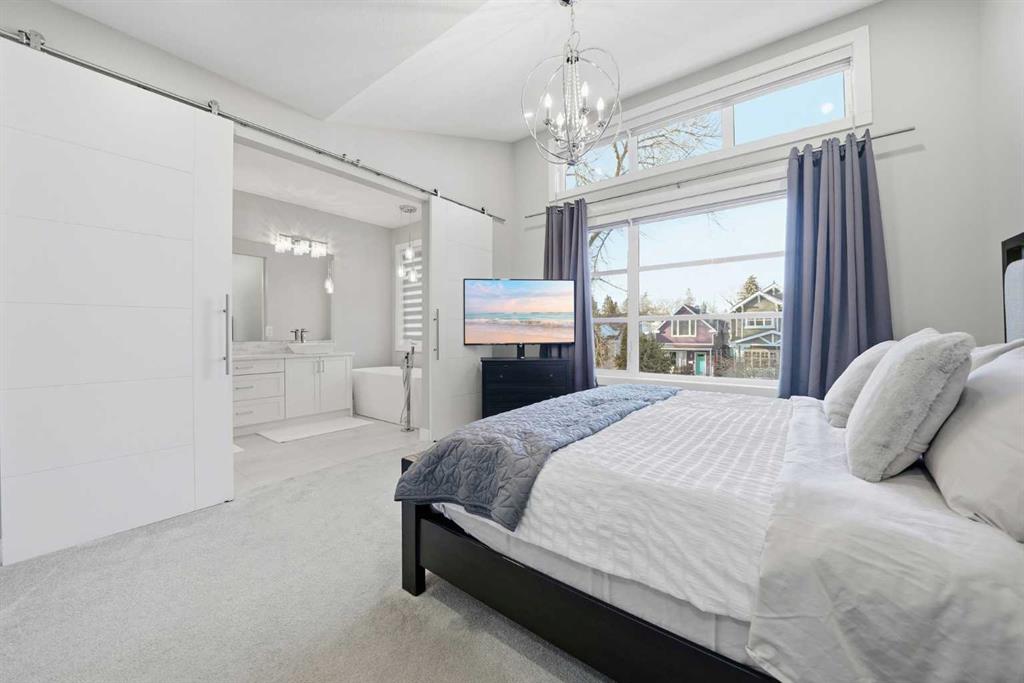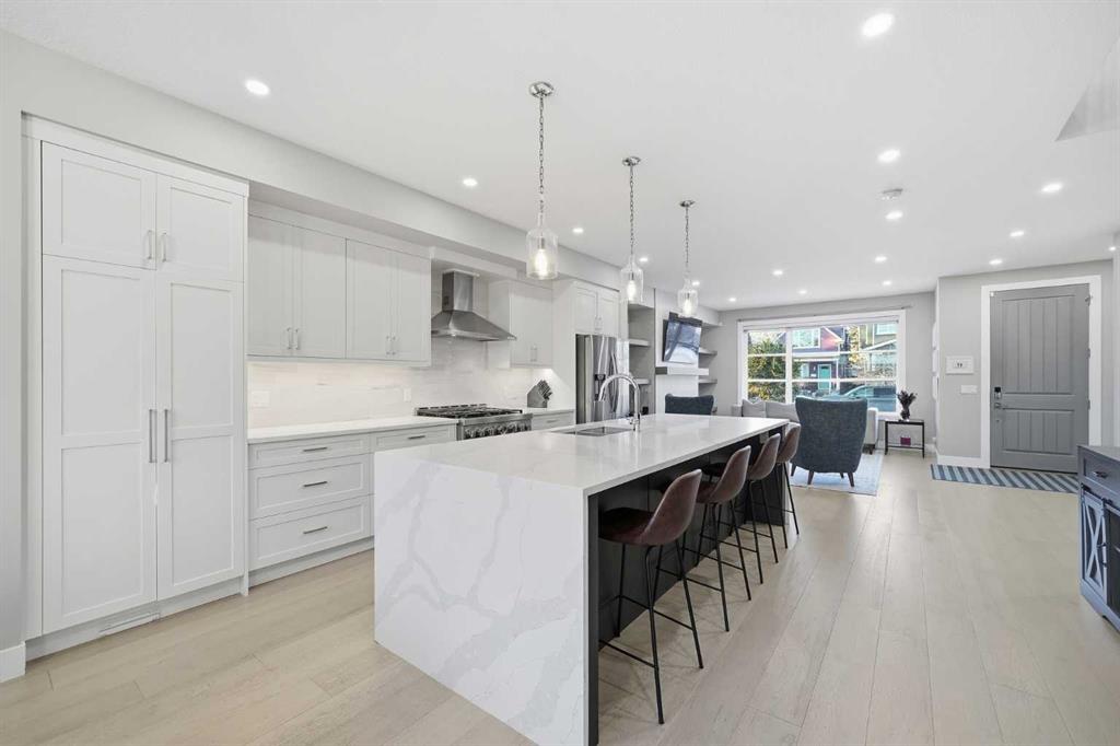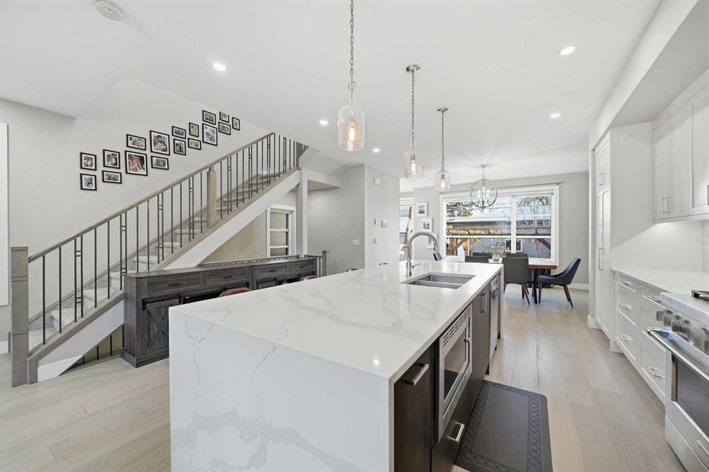 Tucked along one of Mount Pleasant’s most charming tree lined streets, this beautifully designed inner city home blends elevated style with everyday comfort, just moments from local restaurants, cafés, boutique shops, and with effortless access to 16 Ave NW and downtown. You are also minutes from the beloved Confederation Park, one of Calgary’s most cherished green spaces, perfect for year round walks, playgrounds, and scenic outdoor escapes. As you arrive, the rich cedar soffit overhang creates a warm architectural welcome before stepping inside to discover gorgeous wide plank Barcelona wood floors, soaring 9 ft ceilings, and elegant 8 ft interior doors that set the tone for the refined design throughout. The main floor offers an inviting open layout anchored by a casual yet sophisticated living area featuring a striking floor to ceiling custom tiled gas fireplace with built ins, creating the perfect focal point for relaxing evenings or entertaining. The kitchen is the heart of the home, thoughtfully designed with a massive island ideal for gathering, towering white shaker cabinetry, quartz counters, SS appliances, and a 6 burner gas range, all complemented by an abundance of cabinetry and storage. Expansive oversized windows draw warm southern sunlight into the space, while automated blinds throughout provide effortless light control and privacy. Upstairs, three spacious bedrooms create a functional family layout highlighted by a stunning primary retreat. Large windows fill the room with natural light, while modern finishes create a peaceful, elevated atmosphere. The spa inspired ensuite offers a luxurious escape with a freestanding tub beneath a picturesque window, dual vanities, and a large glass enclosed shower. Two additional bedrooms share a beautifully finished main bath, while a spacious upper level laundry room offers room to sort, fold, and store with ease. The fully developed basement expands the living space with a fourth bedroom and full bath, ideal for guests, teens, or extended family. A sleek wet bar makes entertaining effortless, while the large rec area easily accommodates a media space, home gym, or play area. Large closets and thoughtful storage are found throughout the home. Outside, the sunny backyard offers a peaceful retreat complete with a charming gazebo, perfect for summer evenings or quiet mornings. The double insulated detached garage completes the home! Numerous security measures and home safety features add peace of mind. Located just blocks from the Mount Pleasant community pool, neighbourhood favourites Fourth Spot Kitchen & Bar and Our House Restaurant, and only one block from an off leash dog park. Families will appreciate nearby schools including Mount Pleasant School, King George School, and St. Joseph School, along with additional options in surrounding communities. Refined, functional, and perfectly located, this is inner city living at its finest. Plus a bonus for AMAZING neighbours!