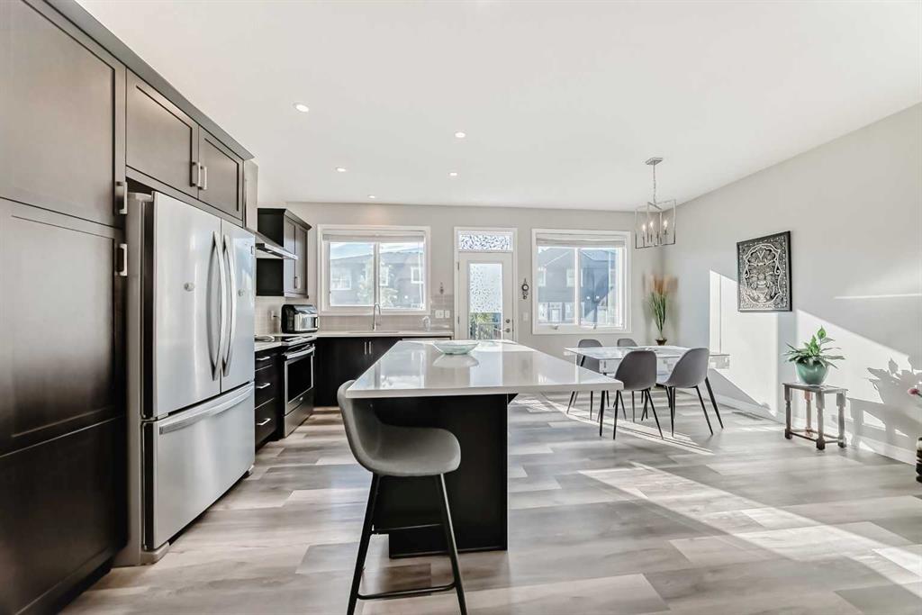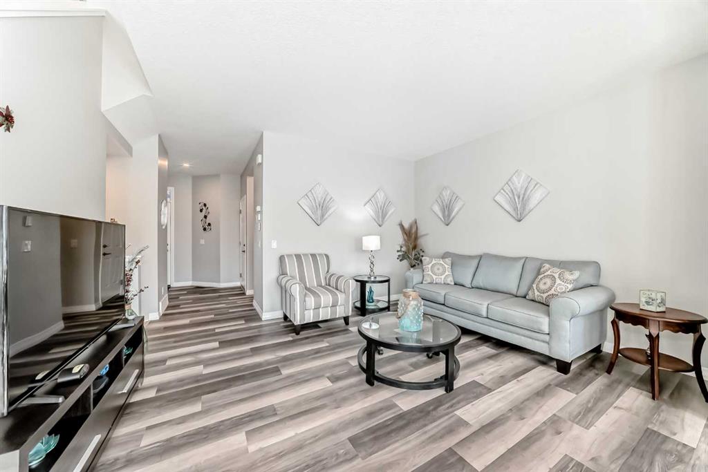 Beautifully maintained semi-detached home in the desirable community of Kings Heights, offering the perfect blend of style, comfort and convenience. Featuring an OPEN-CONCEPT MAIN FLOOR with a bright living room, spacious dining area, and stylish kitchen complete with quartz countertops, breakfast bar, espresso cabinetry and laminate flooring throughout. The dining area opens onto a LARGE WEST-FACING DECK, perfect for summer barbeques and evening sunsets. Upstairs you’ll find 3 generously sized bedrooms, including a private primary retreat with a 3-piece ensuite. A versatile bonus room adds space for movie nights or a home office, while the UPPER-LEVEL LAUNDRY and additional 4-piece bathroom make everyday living a breeze. The undeveloped basement awaits your personal touch. The backyard is your own private oasis. Enjoy a FULLY-FENCED, LANDSCAPED, LOW MAINTENANCE BACKYARD surrounded by trees. Additional features of the home include CUSTOM BLINDS THROUGHOUT, SOLAR PANELS, WATER SOFTENER, lots of windows and a SINGLE-ATTACHED GARAGE. King’s Heights is a vibrant, family-oriented neighborhood offering endless conveniences. The community offers pathways, playgrounds, dog parks and tranquil ponds. The recently completed 40 Avenue overpass provides direct access to Deerfoot Trail, making commuting easier than ever. Amenities like shopping, dining, and services in Airdrie as well as Cross Iron Mills & Costco are in close proximity. Walking distance to schools. Don’t miss this opportunity to get into a move-in ready home. Book your viewing appointment today!