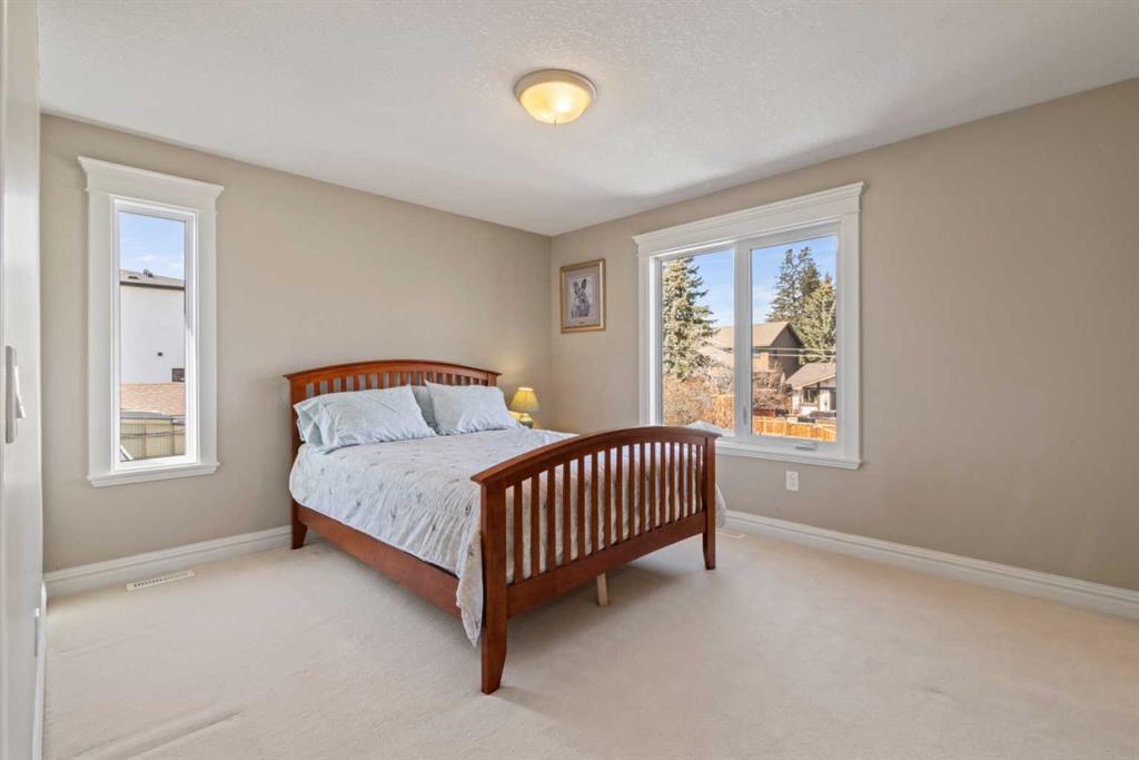 Welcome to 616 52 Avenue SW! Ideally located in popular Windsor Park, this 1700 Sq Ft SXS duplex will impress. Directly across from parks, playing fields and tennis courts. This home is in immaculate condition and shows pride of ownership. The main floor living room and dining area feature 9′ ceilings with crown moldings and hardwood flooring. The spacious kitchen has white knotty pine cabinetry, glass tile back splash, granite countertops, stainless steel appliances, gas stove and an island for family gatherings. There is also a eating area with a sunny bay window overlooking the backyard. The 2 piece powder room and laundry area round out this floor. Up stairs is the massive primary bedroom that features a vaulted ceiling and windows on two walls that allows for plenty of light. The walk-in closet is absolutely huge and leads into the 5 piece ensuite with jetted tub and separate shower. The second bedroom also has a convenient 4 piece ensuite. Down stairs has two additional bedrooms, a storage room and 3 piece bath. The front and back yard have low maintenance landscaping with a double detached garage. book your showing today!