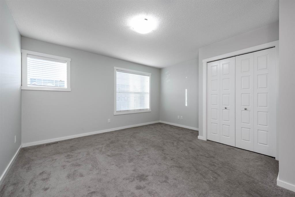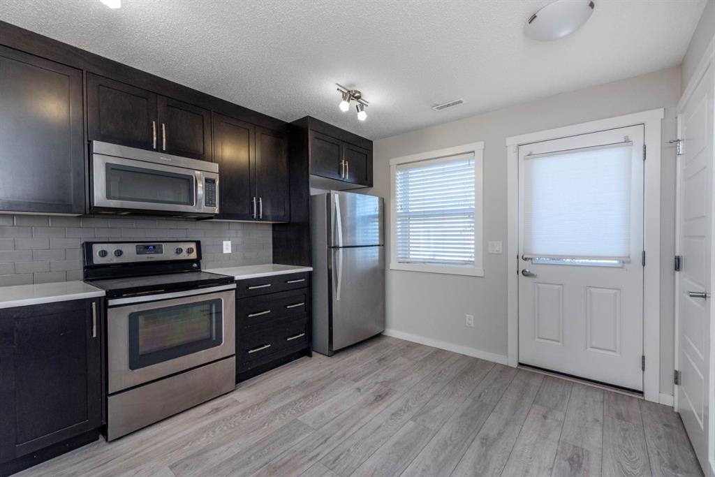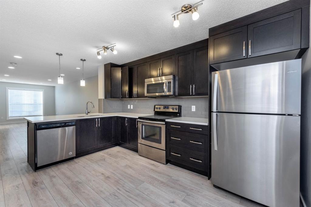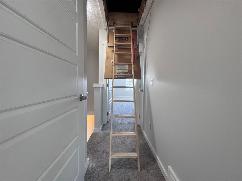 Located in the heart of Cranston, this beautifully maintained townhome offers a smart layout, thoughtful upgrades, and everyday convenience just minutes from schools, shopping, medical amenities, and major roadways including Deerfoot Trail and Stoney Trail. Freshly painted! The main floor, where a well designed kitchen with stainless steel appliances anchors the open living space. A generous dining area creates separation between the kitchen and living room, while a bathroom adds practicality and convenience for guests. The upper level is designed with privacy in mind, featuring double master bedrooms, each complete with its own full ensuite. Laundry is also located upstairs—keeping daily routines efficient and convenient. An added bonus is the builder-designed attic storage area, accessed by concealed stairs and offering a large, dedicated storage room rarely found in townhomes. Outside, the fully enclosed backyard provides a secured space for children and pets. Assigned parking is located directly in front of the home, with additional parking available along the quiet lane behind the property. Finished with durable Hardie Board siding and well cared for by its owners, this Cranston townhome delivers functionality, comfort, and location in one well-rounded package.