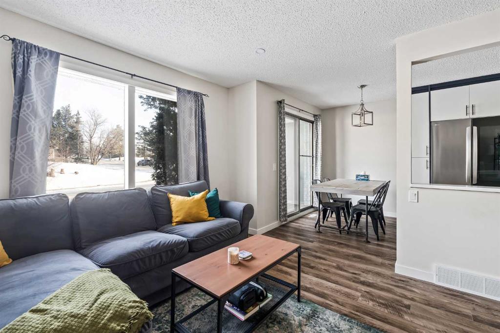 An excellent opportunity to own a freehold home with NO CONDO FEES in the heart of Airdrie Meadows, offering outstanding value at under $375,000, located in the vibrant and walkable community of Airdrie Meadows, just steps from countless amenities. Offering nearly 1,500 sq. ft. of developed living space across two levels, this updated home strikes the ideal balance between functionality, comfort, and location. The main level features durable laminate plank flooring throughout, with large windows in the living and dining areas that flood the home with natural light throughout the day. The kitchen overlooks both spaces and is enhanced by a pass-through opening, creating a more open and connected layout. The living room is positioned at the front of the home, while the dining area provides access to a private balcony. The spacious kitchen has been recently updated with new cabinetry and a full suite of new stainless-steel appliances, including a French-door refrigerator, dishwasher, electric range, and range hood (2023). Two well-sized bedrooms, a 4-piece bathroom, and a linen closet complete the main level. The lower level offers a large recreation room, ideal for a media area and children’s play space. A generously sized additional bedroom at the rear of the basement (bedroom window does not meet current egress requirements) provides excellent flexibility for guests or a secondary living area. This level is completed by a spacious laundry room with a newer washer and dryer and a utility room with additional storage. Outside, the property offers ample green space with a large backyard, perfect for families. A side patio creates an inviting area for summer barbecues and entertaining. Additional features include a rear parking pad and a large storage shed. The home is fully move-in ready, featuring newer appliances, a new water heater (2023), and a new furnace (2025), providing added peace of mind. Ideally located within walking distance to the public library, shopping, restaurants, cafes, schools, playgrounds, and more, this home also offers easy commuting with nearby transit access and quick connections to Main Street and Deerfoot Trail. Don’t miss this opportunity to own a fantastic property in one of Airdrie’s most walkable and convenient communities.