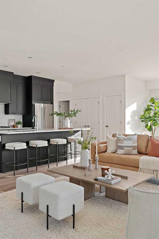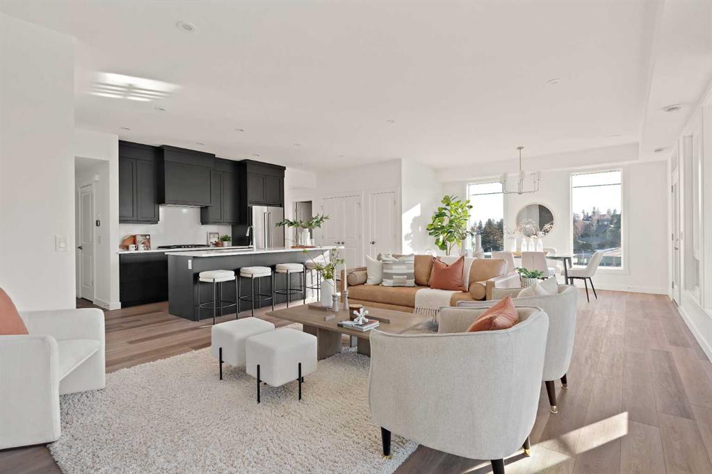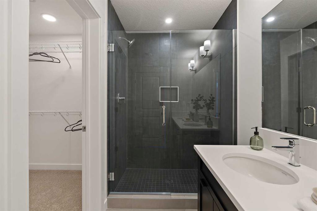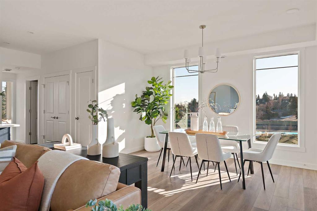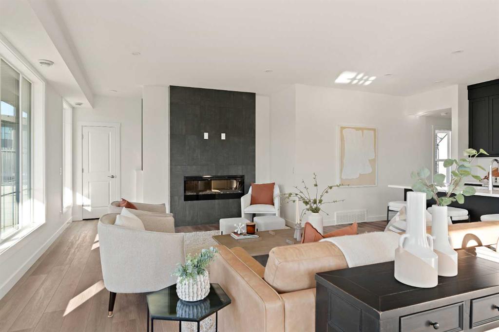 The Hyde at Crown Park is the perfect townhouse for those wanting single-level living without compromise. Featuring 3 bedrooms, 2 bathrooms, and over nearly 1,400 ft2 of living space on one level with a private double attached and endless storage space, this home is perfect for those looking to downsize without compromise. Located in the heart of Crown Park overlooking a central park and just minutes from downtown Calgary, this brand new end-unit townhome perfectly combines maintenance-free living within a central urban setting. The beautifully designed main living area has the perfect open-concept design, making it ideal for entertaining and hosting. The kitchen anchors the main living space and opens perfectly to the living and dining areas with a wall of southwest-facing windows flooding the space with natural light. The timeless kitchen is complete with shaker cabinets, quartz countertops, and a suite of built-in appliances including a gas cooktop. The expansive living area has a central fireplace and ample space for 6+ people, making entertaining a breeze. The large dining area can easily accommodate a table with seating for eight people and includes additional windows for added natural light. The primary suite is located at one end of the property, with laundry providing added privacy between the owner’s suite and secondary bedrooms. A luxurious 4 pc ensuite with dual sinks and a walk-in shower as well as a large walk-in closet complete the primary suite. Two additional bedrooms provide added flexibility, providing space for a guest bedroom + home office space or media room, and have their own full bathroom. The main living area is complete with a large laundry room with additional cabinets for storage and a countertop for added convenience. A ~26’x8′ balcony provides the perfect outdoor living space – complete with a gas line, hose bib, and overlooking the park with optimal southwest exposure ensuring you’re maximizing your sun and natural light all year long. The lower level of the property provides access to the oversized private double attached garage and two expansive storage spaces provide the space you’ve been looking for! Located at Calgary’s newest inner-city development, this brand new home provides a lock-and-leave lifestyle without compromise and includes full builder warranty + Alberta New Home Warranty. These rare designs don’t come available often – this is your opportunity to get the bungalow-style home you were looking for that offers single-level living with a private garage and low fees that provide you with a maintenance-free lifestyle.