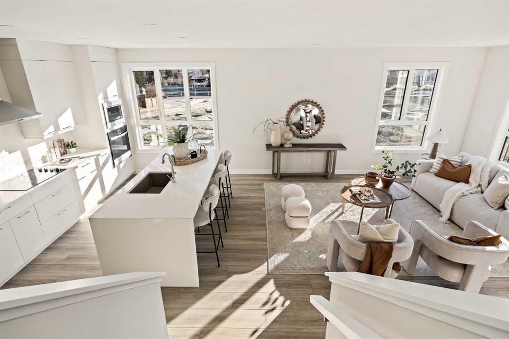 **Open House this Sunday, January 25th from 1:00-3:00 PM** Welcome to the Torrey at Crown Park – an exceptional opportunity offering a brand new move-in ready townhouse that features 3 bedrooms, 2.5 bathrooms and a private double attached garage. Featuring nearly 1,700 ft2 of living space, this end-unit townhome is perfectly situated with optimal southwest exposure providing a bright living space that is flooded with natural light. The bright and open main living area features a stunning kitchen with endless upgrades including built-in appliances, a waterfall quartz island and timeless white cabinetry. The kitchen has been designed for entertaining, located directly off of the expansive main living area. Walls of windows surround the entire main level, providing you with a naturally lit living space all year long. The ~17’x16′ great room has ample space for virtually any furniture configuration and opens to the large dining area – creating a seamless flow between spaces. The main level is complete with a 2 pc powder room and direct access to the sprawling 26′ balcony that spans the width of the home. The outdoor living space is equipped with a BBQ gas line and hose bib, adding to everyday convenience. The upper level has been thoughtfully designed with the primary suite spanning the width of the home and the secondary rooms and bathroom on the opposite end. The ~12’x12′ primary bedroom has ample space for a king bedroom suite and includes a walk-in closet and a private 4 pc ensuite with dual sinks and a walk-in tiled shower. The upper level is finished by two additional bedrooms, a full bathroom and laundry – ensuring everyday convenience. The flexibility of three bedrooms makes this the perfect family home or guest bedroom with a home office space – providing exceptional long term value. The entry level of the home provides access to the private double attached garage, which has additional space for storage, as well as a large storage room – keeping all of your valuables safe and secure all year round. Located in one of Calgary’s last inner-city developments, just minutes to downtown Calgary with endless transportation routes at your fingertips, this brand new home offers exceptional value and is perfect for first time buyers, investors, or those wanting a lock-and-leave lifestyle with maintenance-free living. Backed by a comprehensive builder warranty + Alberta New Home Warranty, this brand new home allows you to purchase with peace of mind!
