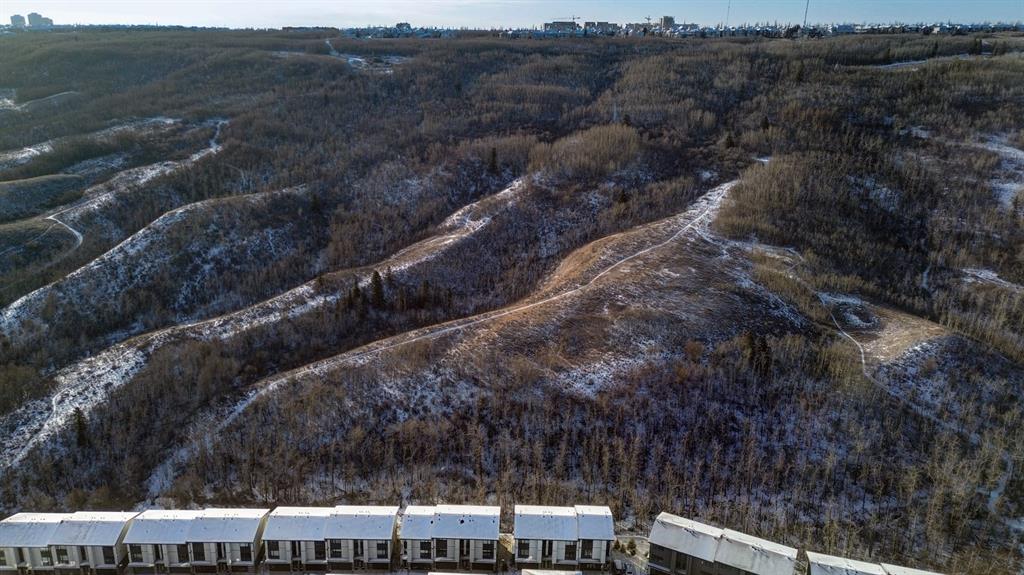 ***Please check out the Virtual Tour!***. Welcome to the community of Medicine Hill and the Village at Trinity Hills. One of Calgary’s most elegant and sophisticated urban dwellings. This end unit town home comes with 1988 square feet of finished living space. The open floor plan flows seamlessly from the gorgeous living room with incredible vistas to the large dining room and gourmet kitchen. The kitchen has a large island, upgraded stainless steel appliances and granite countertops. The kitchen flows perfectly into the dining and living rooms which is fabulous for entertaining family and friends. Upstairs, you will find three bedrooms and 2 4pc bathrooms with one bathroom being the primary bedroom ensuite. In the basement you will find a spacious 2 car double attached garage and recreation room which leads outside to a beautiful patio. Back on the main second floor you will love the outdoor patio to cook, eat and relax all the while enjoying beautiful vistas of forest reserve behind you. This home comes with over $35,000 of additional upgrades which include upgraded appliances, California closets, high end window coverings and upgraded drawers. The Village at Trinity Hills is a revolutionary and modern community for the Calgary area; integrates upscale family living within the parameters of commercial and professional buildings and services. This home allows you to walk out your front door and within minutes be at the grocery store, pharmacy, pet shop, medical building and so much more. Within minutes from Calgary Olympic Park this home provides quick access to downtown and just over an hour to Banff National Park. Please contact me for showing information and come see what modern living in the heart of Calgary looks like in 2026.