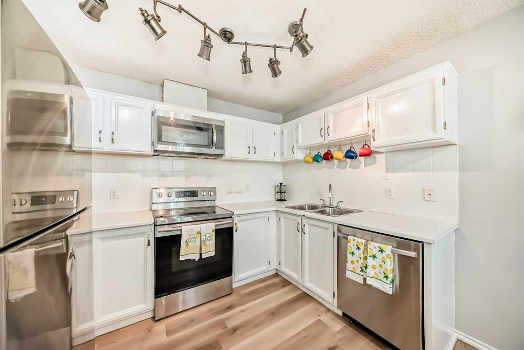 Beautifully maintained townhouse offers an open-concept main level perfect for modern living. Relax in the cozy living room featuring a corner gas fireplace, with patio doors leading to your private fenced backyard. The kitchen is a chef’s dream with sleek white cabinetry, stainless-steel appliances, and an adjacent dining nook for family meals. Upstairs, find three spacious bedrooms with laminate flooring, including a large master retreat complete with a walk-in closet and completed with a 4pcs main bath.