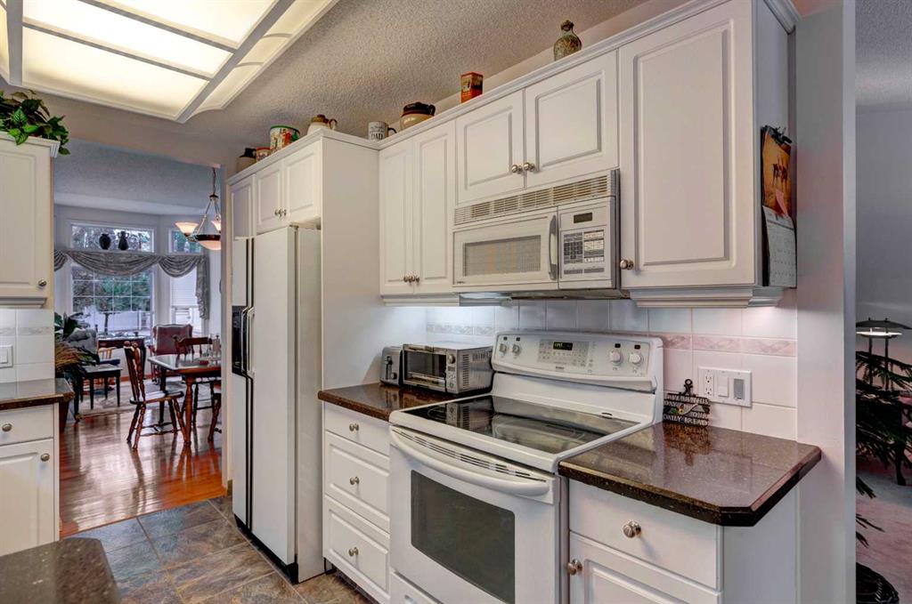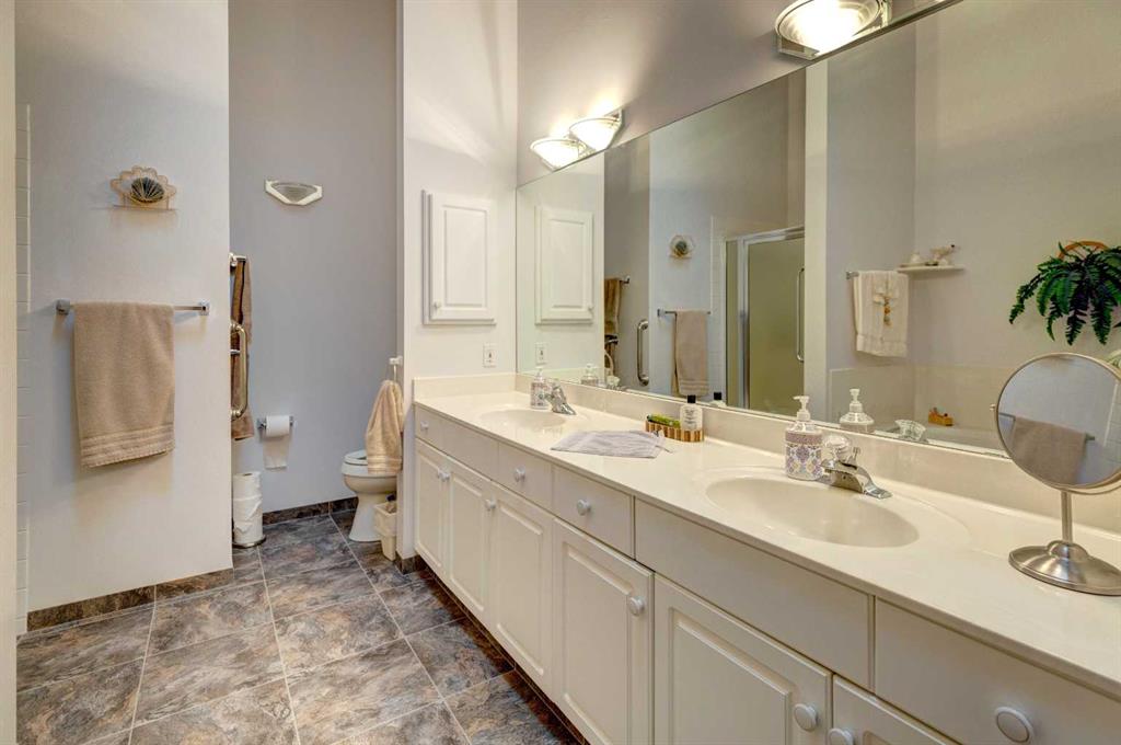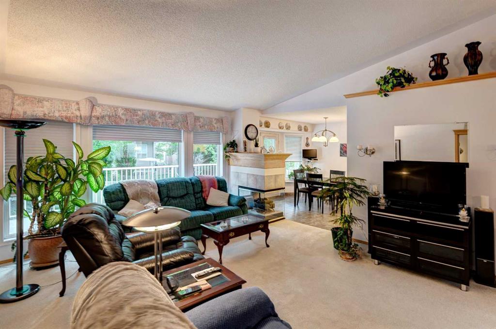 Villas in this quiet cul-de-sac rarely come to market! This lovely one owner walkout bungalow offers over 3,100 sq ft of developed living space. Vaulted ceilings create an immediate sense of grandeur, enhanced by a bayed living room with hardwood floors that flows seamlessly into the dining area, a layout ideal for entertaining. A large family room anchored by a 3-sided fireplace invites relaxed evenings, while its warm glow extends into the breakfast nook where meals feel especially warm and cozy. Patio doors open to a full-width deck, setting the stage for summer barbecues, morning coffees or quiet moments surrounded by treed views. Bright white cabinetry in the kitchen is paired with ample counter space and a window above the sink for natural light. French doors introduce the vaulted primary retreat, a sanctuary with oversized bay windows, generous dimensions suited for king-sized furniture, a walk-in closet and a private ensuite complete with dual sinks, a jetted tub and separate shower. The second bedroom offers excellent versatility as a guest room or home office and is complemented by a nearby 3-piece bath. Downstairs, more than 1,500 sq ft of finished walkout space is designed for connection and comfort. A massive recreation room with its own fireplace offers endless options to create media, games, hobby and fitness zones with ease. Walkout access leads to a covered patio where you can enjoy the outdoors without the burden of maintenance. This level also includes a third bedroom, a full bathroom and abundant storage. Secure parking is found in the double attached garage, adding extra convenience. A professionally managed complex ensures a lock-and-go lifestyle with lawn care and snow removal handled for you. Pet-friendly (upon board approval), this is a community where peace of mind meets connection. Year-round activities are available in McKenzie Lake, from swimming and boating in the summer to skating in the winter. Fish Creek Park and its extensive pathway system are steps away and McKenzie Meadows Golf Club, shopping, restaurants, South Health Campus and major roadways are all close by. This villa combines the ease of maintenance-free living with the space and comfort of a full family home, all in a beautifully established location near parks, pathways and the Bow River.
