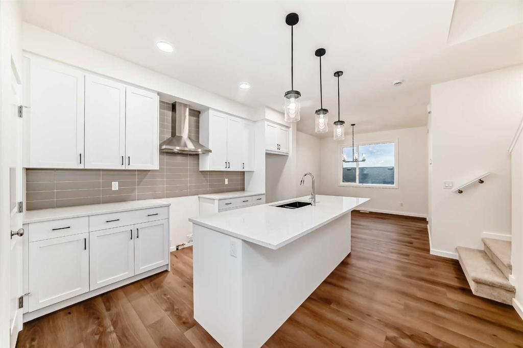 20’ x 20 DOUBLE GARAGE? COMPLETED. BACK DECK? DONE. SID ENTRY? INCLUDED. Backing directly onto the GREENSPACE and pond in THE NEW COMMUNITY OF STARLING? YES. This brand new construction 1,409 sq.ft. semi-detached home is ready to call home as soon as you are. The main floor opens to 9’ ceilings, luxury vinyl plank flooring, and clean sightlines run from the kitchen straight through to the back of the home. The kitchen pulls its weight with QUARTZ COUNTERS, 42″ UPPER CABINETRY, a CHIMNEY HOOD FAN, BUILT-IN MICROWAVE, and an electric range with a GAS LINE ROUGHED IN—ready if you want to upgrade later. Out back, your private yard and already-built deck step in when the weather cooperates – Hello Spring! Upstairs, three well-sized bedrooms and two full baths keep mornings moving, laundry is right where it should be—on the upper level—and the BRIGHT AND OPEN FRONT FACING PRIMARY BEDROOM is set apart from the hallway traffic, complete with its own ensuite and walk-in closet. It’s a layout that’s easy to live in, easy to furnish, and easy to keep up with. The SUNSHINE BASEMENT adds flexibility without feeling like an afterthought. Bigger windows bring in natural light, while a SEPARATE SIDE ENTRY, 200-AMP service, and bathroom rough-in give you options down the road—whether that’s a gym, media space, or a spot for guests or teenagers who want a little independence. And the practical pieces are already done. A 20’ x 20’ DOUBLE DETACHED GARAGE is built and ready, the rear deck is in place, and there’s a BBQ gas line roughed in so you’re not starting from scratch. Starling is designed for people who actually use their surroundings. Pathways wind around the pond, connect to parks and greenspace, and extend into an environmental reserve, with future gathering spaces and play areas planned throughout. With all the amenities you need already in place just down the street including groceries, gas, restaurants and public transit. Quick access to 14 St NW and Stoney Trail keeps everything else within reach—book a showing with your favorite realtor today.