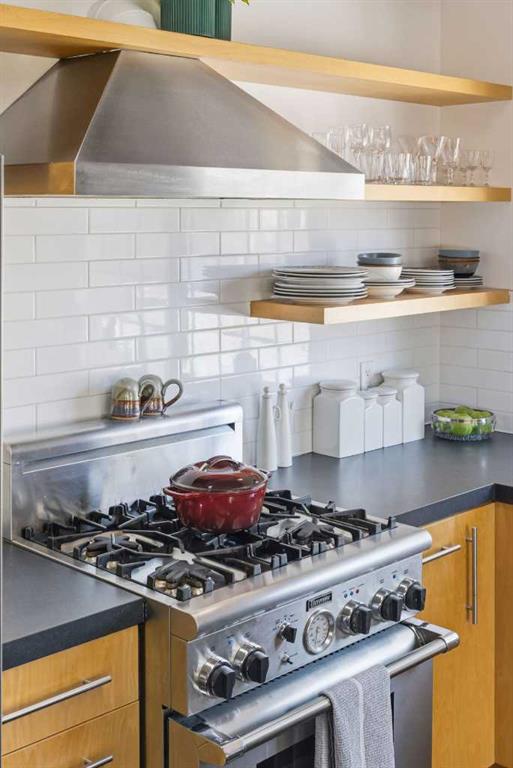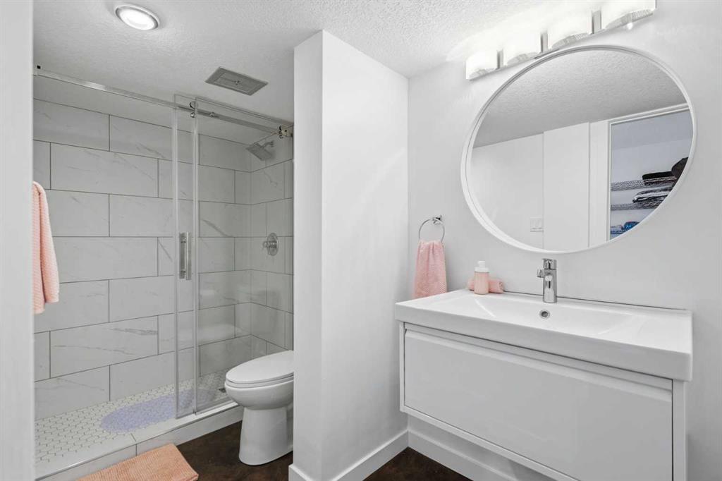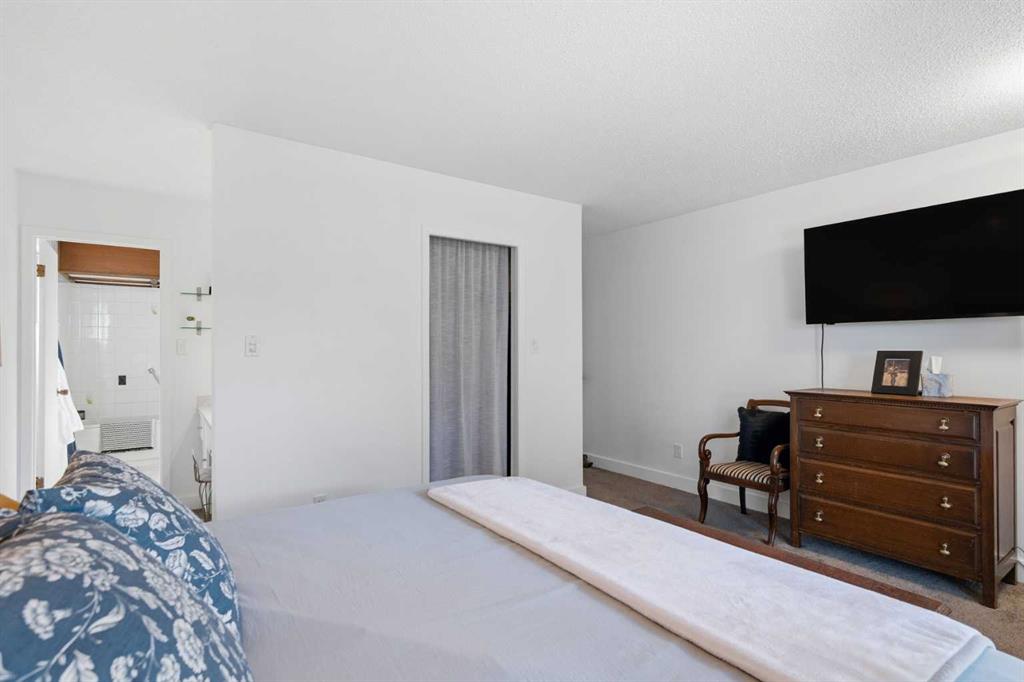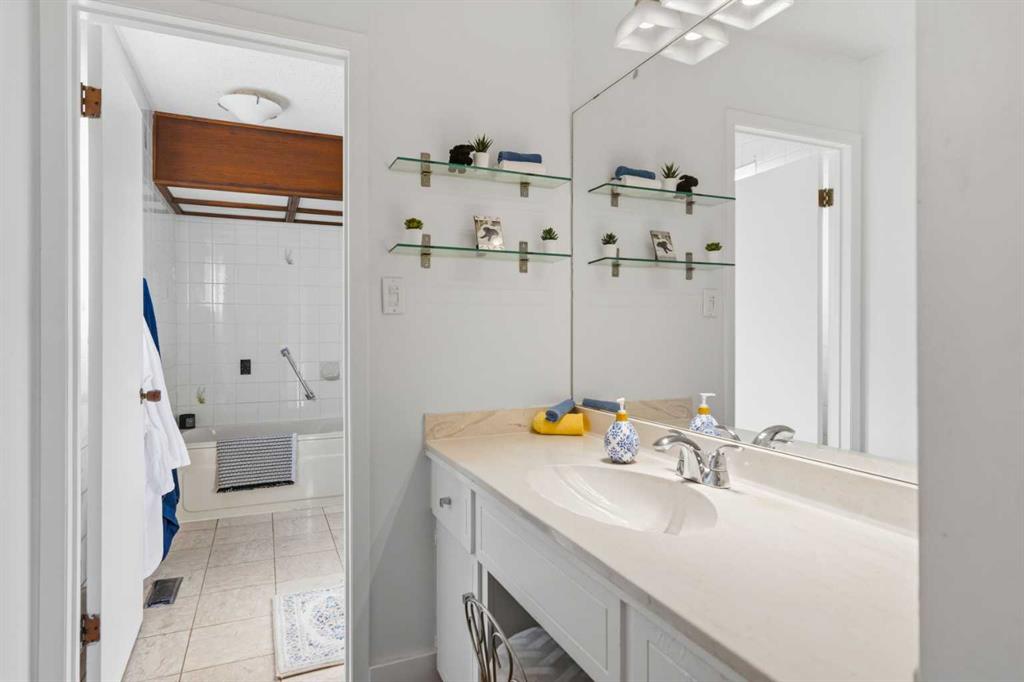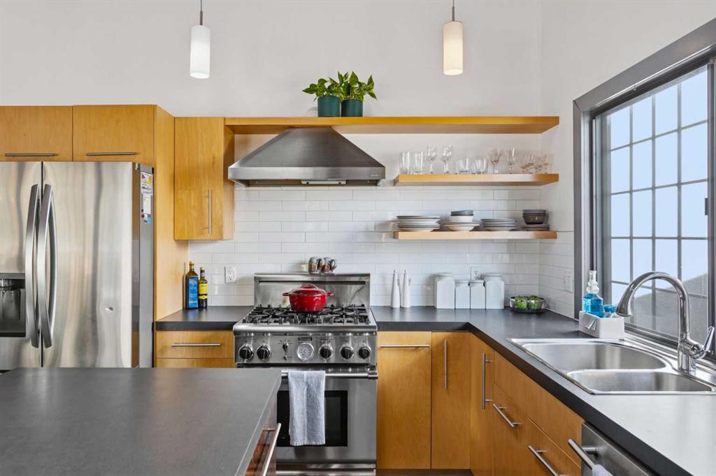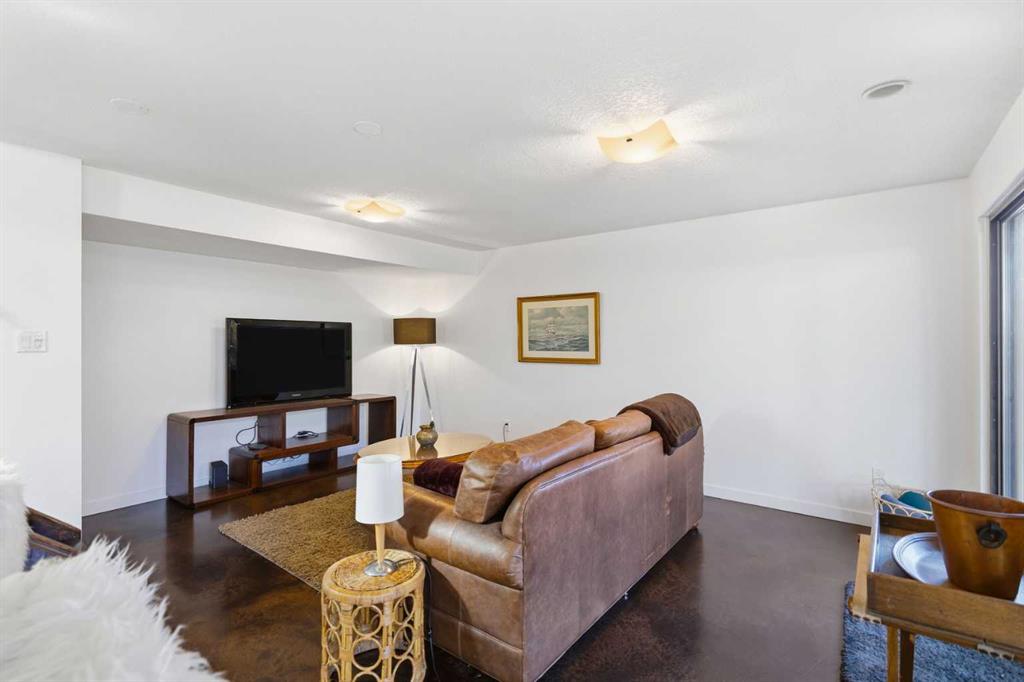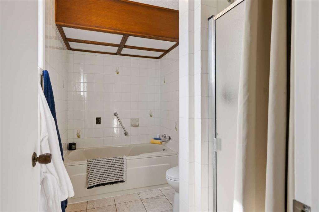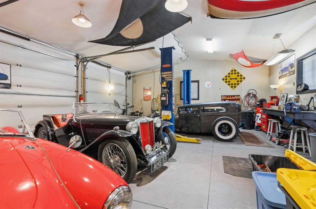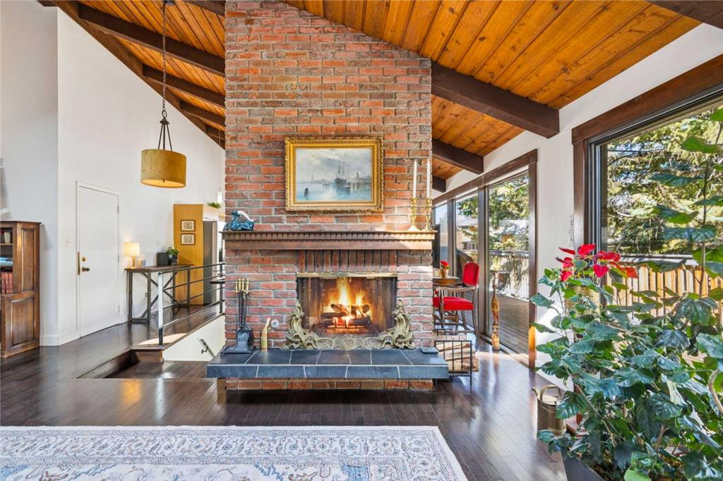 Welcome to the elegant neighbourhood of Elbow Park. This charming Post Modern home offers over 3200 square feet of living space. Tucked away on a one way street and facing forested reserve space your privacy and tranquility is ensured. The Interior features a vaulted wood beamed ceiling with skylights affording sun drenched days. Imagine yourself in a beautiful chalet in the heart of the city. The open floor plan creates a bright and airy living environment. The Cornerstone feature of this home is the raised hearth dual sided bi-level fireplace that can be enjoyed from the living area, dining room, secondary living area and office/den. The upper level feature 3 generous bedrooms. The Primary with En suite and another 4 piece bath for the additional 2 upstairs bedrooms. The sliding patio doors off the kitchen and primary bedroom allow access to the generous deck surrounded by mature trees. In the lower level we have another full wall of windows creating a feeling of outdoor access and allowing ample light. This area offers an additional living space again with full access to the feature fireplace. The office/den area can be whatever you envision. Art studio, playroom – choose your own adventure. The lower level features another generous bedroom as well as ample storage rooms and a large recreation space. A newly renovated 3pc bath makes this the perfect guest space. The ample laundry space has a separate entrance for ease of access. The back yard is fully fenced with a gas firepit that’s perfect for roasting hotdogs and smores or enjoying get-togethers. The detached 3 car garage includes a hydraulic lift as well as shop space. This is a generous green space with mature trees and blooming front garden. An attached double car garage allows ample parking space for family and guests. Situated just a block away from the Elbow River with easy access to top rated schools, The Glencoe, Stanley Park and Shopping. This lovely home presents a rare opportunity to own a special parcel of property in the heart of the city