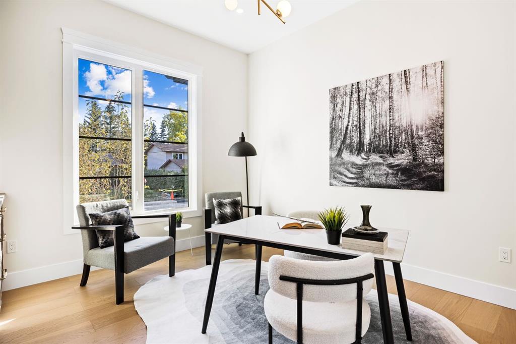 Welcome to this extraordinary, brand-new custom estate home, perfectly positioned in the highly sought-after community of Varsity Estates. Backing directly onto the golf course, this residence offers breathtaking views of the fairways from nearly every principal space, including the kitchen, dining room, master suite, guest bedroom, family room, bonus room, and the beautifully landscaped backyard. From the moment you enter, you’re greeted by soaring open-to-above ceilings, modern glass railings, and designer chandeliers that create an immediate sense of elegance and grandeur. The thoughtfully designed floor plan offers both formal and casual living spaces, featuring a sophisticated living room and a warm family room, each highlighted by its own fireplace. At the heart of the home is a gourmet kitchen equipped with premium JennAir appliances, a convenient coffee bar, and an expansive island perfect for entertaining. Seamlessly connected dining and living areas provide an ideal setting for gatherings, while expansive windows frame stunning golf course vistas. This residence features 4 generously sized bedrooms and 5.5 bathrooms, including a luxurious master suite with panoramic views, a spa-inspired ensuite with heated floors, steamer in shower and a custom walk-in closet. Additional highlights include an executive office, home gym, theatre room, and a wet bar designed for elevated entertaining. Luxury is in every detail—heated washroom floors, central air conditioning, and high-end lighting throughout. Practicality meets modern convenience with 200-amp electrical service, EV charger readiness, and a triple heated garage with epoxy flooring. Blending contemporary architecture with timeless finishes, this Varsity Estates masterpiece offers more than just a home—it delivers an unrivaled lifestyle in one of Calgary’s most prestigious communities. Book your Private Tour now.
