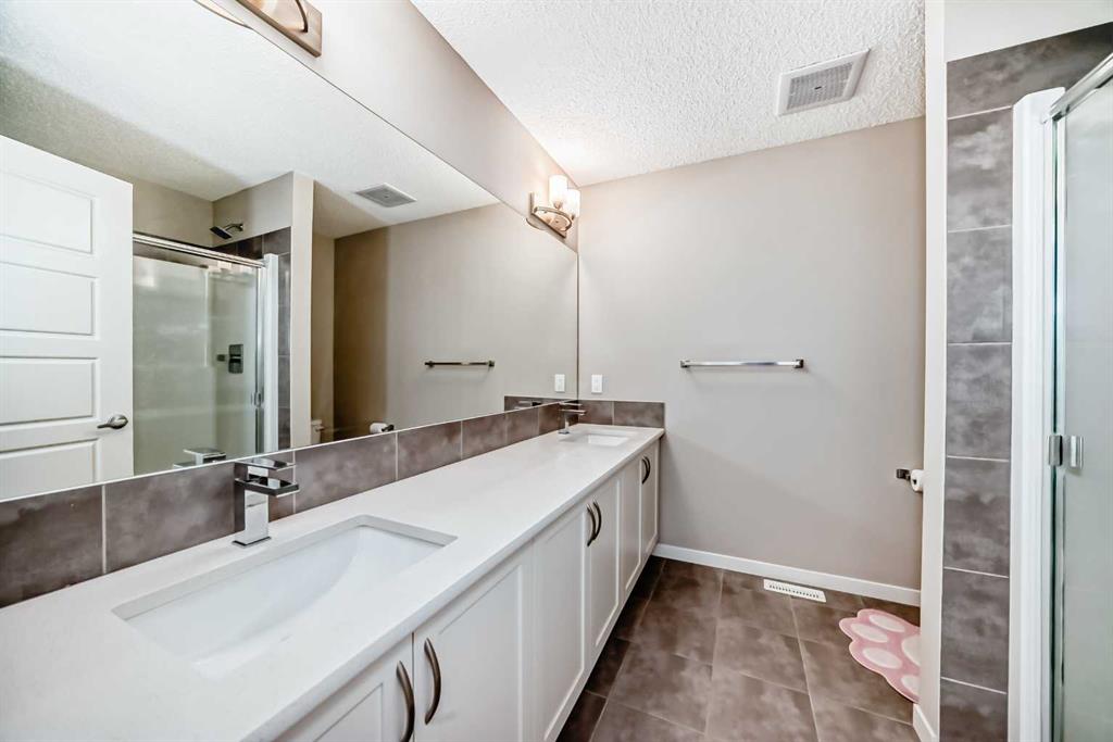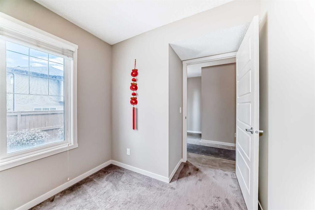 On the upper floor, you’ll find two well-sized bedrooms with ample closet space—ideal for a growing family—as well as a conveniently located laundry area. The luxurious primary suite features large windows with custom window treatments, a massive walk-in closet with built-in shelving, and a spa-like ensuite with double sinks, quartz countertops, a separate toilet area, and a spacious 5-foot walk-in shower. An additional four-piece bathroom serves the secondary bedrooms. Please book your showing as soon as possible.