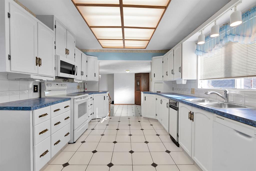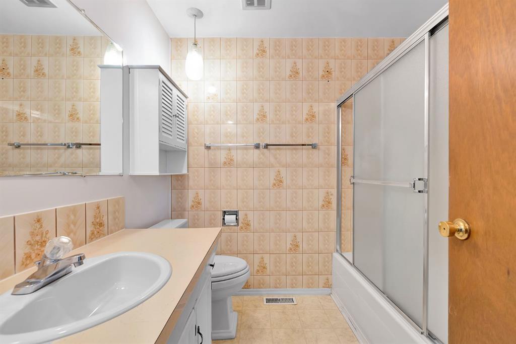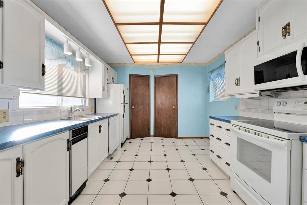 Welcome to this well-cared-for bi-level home, ideally located on a generous 50′ x 120′ lot in a quiet cul-de-sac in the heart of Ogden. Enjoy exceptional privacy with no neighbours in front or to one side—just peaceful green space and open views. Plus, the future Green Line LRT will conveniently pass through Ogden, adding even more accessibility and value to this fantastic location. The main floor features a bright and spacious family room complete with a cozy fireplace, perfect for relaxing evenings. Adjacent is a large dining room featuring a beautiful built-in china cabinet, offering plenty of additional cabinet and display space, along with a charming built-in phone desk ideal for added storage or a compact workspace. The kitchen is functional and well laid out, with the laundry area conveniently located just off the kitchen for everyday ease. Two bedrooms on the main floor include a comfortable primary suite with a 2-piece ensuite, along with a full 4-piece main bathroom. The fully developed lower level offers even more living space, including a third bedroom, a 3-piece bathroom, a spacious recreation room with a second fireplace, and a bright sunroom. This level also provides direct access to the double attached garage, offering plenty of room for vehicles, storage, or workshop needs.