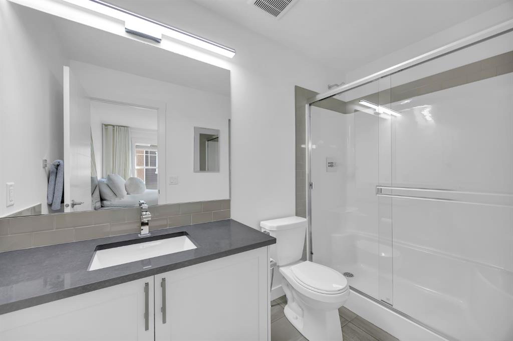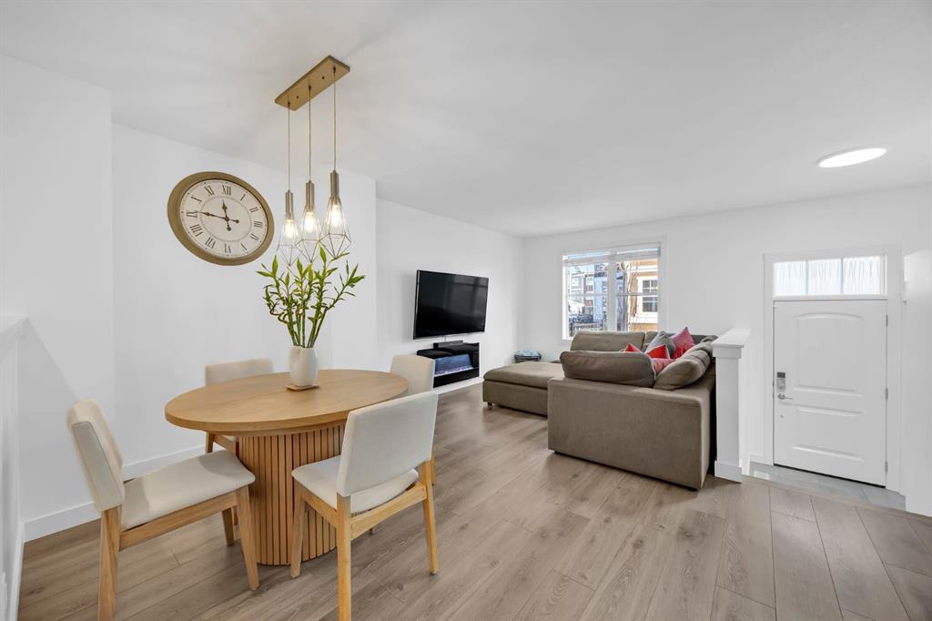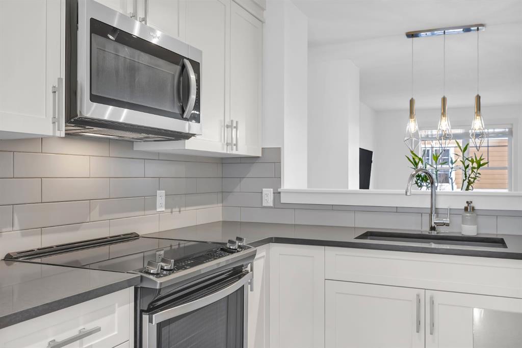 Welcome to this like-new, beautifully maintained townhome offering 2 bedrooms, 2.5 bathrooms, and over 1,200 sq. ft. of thoughtfully designed living space, complete with a private double attached garage. Located in a quiet building, this home is the perfect blend of comfort, function, and stylish upgrades. The bright, open main level features a spacious living room with a cozy fireplace, ideal for relaxing evenings. The kitchen is both timeless and practical with bright cabinetry, quartz countertops, a subway tile backsplash, stainless steel appliances (including a slide-in range), and a large island with seating, perfect for entertaining. You’ll also love the smart storage throughout, including pull-out drawers in the kitchen cabinetry and under-stair storage with added shelving/built-ins. Step outside to enjoy your outdoor space with a BBQ gas line, making summer evenings effortless. Upstairs, you’ll find two spacious primary bedrooms, each complete with a walk-in closet and its own ensuite. The stacked upper-floor laundry makes day-to-day living convenient. Added touches like closet organizers, upgraded lighting throughout, and thoughtful bathroom updates (including updated towel bars and toilet paper holders) elevate the home’s feel. The basement offers additional flexible space and storage, perfect for keeping everything organized. Additional upgrades include central A/C, and a fully finished garage featuring an epoxy floor, finished and painted walls, and a garage heater, a standout feature for Calgary winters. This home is ideally located close to the Bow River with extensive pathways and beautiful scenery. Everyday amenities are also close, with quick access to major roads for an easy commute. This townhome is an incredible opportunity to own a well-cared-for, move-in-ready property.