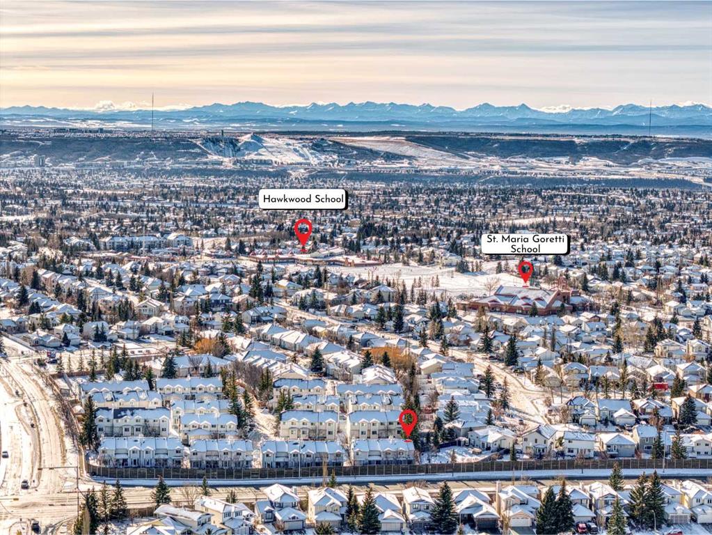 ***Open House Sunday, Feb 1, 2pm to 4pm**** Freshly painted and exceptionally well maintained, this corner end-unit townhome in Hawkstone Manor delivers over 1844 sq ft of finished living space (including basement) and outstanding value—fully move-in ready. The main and upper levels feature newly cleaned carpets in excellent condition, bamboo flooring in the living room, and tile in high-traffic areas. The well-lit kitchen is efficiently designed for everyday use, and the main floor includes a convenient half bath and a gas fireplace. Upstairs offers three bedrooms, including a spacious primary suite with a large walk-in closet and ensuite, plus two additional bedrooms and a full bathroom. The basement adds a fourth bedroom or flexible space for guests, work, or recreation. Mechanical updates include a furnace (2017) and hot water tank (2019). Additional features include an insulated single attached garage, concrete patio with no neighbours behind, and meticulous care throughout. Hawkstone Manor residents enjoy access to a clubhouse, tennis courts, and ample visitor parking. Conveniently located close to schools, shopping, public transit, the LRT, Nose Hill Park, and major routes including John Laurie Blvd, Sarcee Trail, Country Hills Blvd, and Stoney Trail.