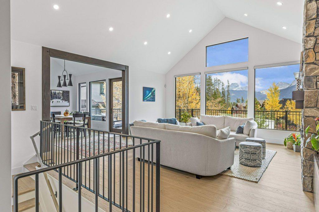 One of the Highest Elevated Homes in Canmore! Perched in the heart of the prestigious Silvertip community, this remarkable 4 bed 4 bath home redefines contemporary mountain living. Boasting an expansive 13,119 SF Lot, this property is only 6 yrs old. Prepare to be captivated by the unparalleled panoramic views from literally every window from this 3,418 SF all above grade home. The stunning 3 Sisters becomes an integral part of your daily life, visible from your kitchen, great room, primary bed & SW deck. Prefer to look over the 13th Green and fairway of the golf course…it’s visible from the kitchen, the primary bed, super sunny bfast nook, guest beds and the NE facing deck! Step inside, and you’ll be greeted by an open plan that blends sophistication with the slightly more modern feel in the the Rockies including a European inspired kitchen w/ Wolf Induction, Steam and Wall Oven and Sub Zero fridge.