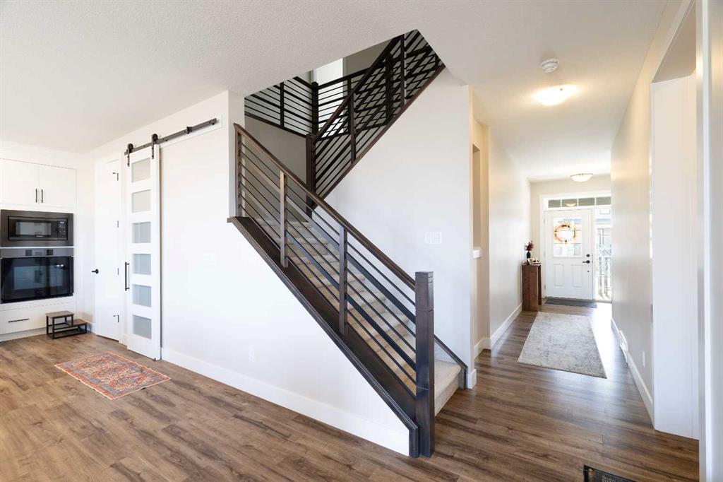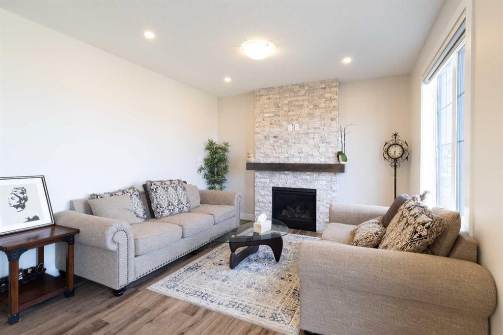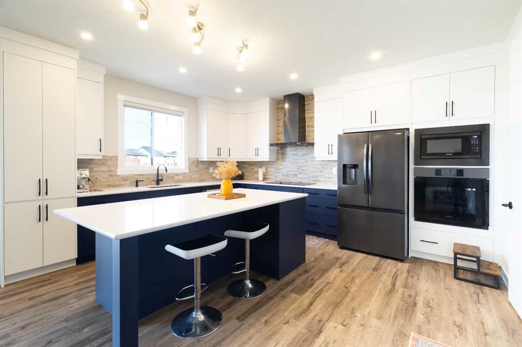 Welcome to your dream home in Southwinds, Airdrie! This brand-new 5-bedroom, 3.5-bathroom home sits on an oversized pie-shaped lot that backs directly onto a walking path and playground—an unbeatable location for families and outdoor enthusiasts. With over $115,000 worth of upgrades inside, you’ll love the open-concept layout with luxury vinyl plank flooring, a main-floor bedroom with full bath, and a modern kitchen featuring high-end stainless steel appliances, sleek cabinetry, and a large island with breakfast bar. The spacious dining area flows seamlessly into the living space—perfect for hosting and everyday living. Upstairs offers a versatile bonus room, a luxurious primary suite with walk-in closet and spa-inspired ensuite, plus three additional bedrooms and another full bath—ideal for large or multi-generational families. The unfinished basement with a separate entrance awaits your personal touch—create the perfect rec room, home gym, or additional living space tailored to your needs, including 9 feet ceilings on each floor. Enjoy direct access to green space from your expansive backyard—ideal for kids, pets, and peaceful evening strolls. This home offers the perfect blend of style, space, and location in one of Airdrie’s most desirable communities. Don’t miss this rare opportunity—book your showing today!